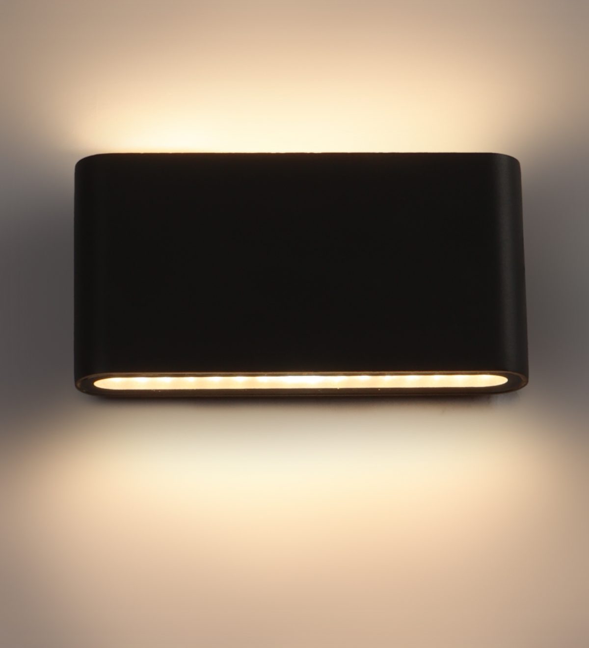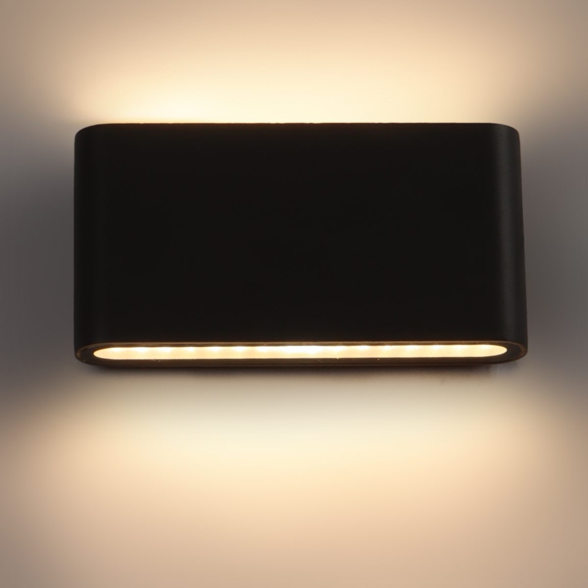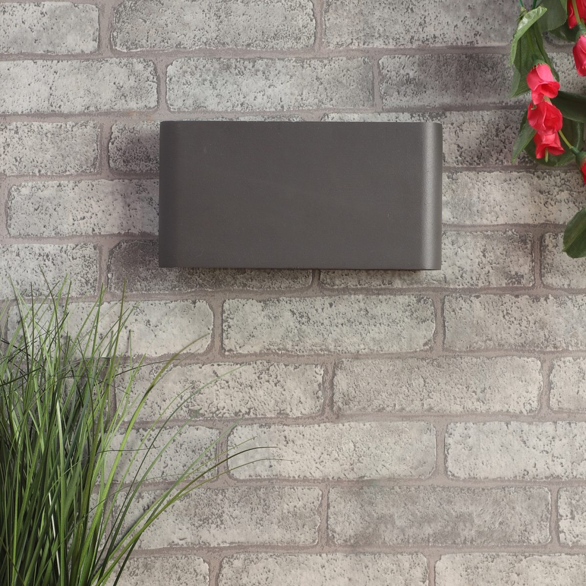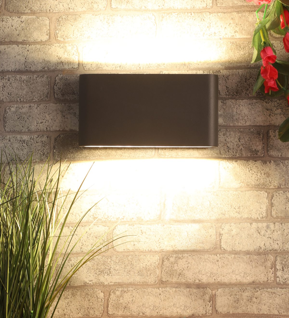 Vertical, rectangular, up and down, two way aluminum die cast outdoor wall light in gray finish using high quality LED and driver with high success rate having less than 0.5% replacement. This is one of the best selling product. It is a two way light providing light in two directions. It can be used in both indoor and outdoor applications such as stair case walls, terrace walls, outdoor walls, boundary walls, open parking, stilt parking, basement parking, passage walls. IP54 rated. Protection against splashed water can be customized as per requirement for bulk quantities. Lesser wattage with less light and less width option is available (Code – WL2255).