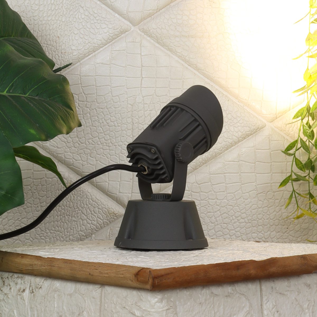 Heavy duty aluminium die cast 7 watt outdoor spot light using high quality LED and driver with high success rate having less than 0.5% replacement. IP 54 rated, providing protection from sprayed water in any direction and making this light perfect for use outdoors. Can be used to highlight plants, name plates or any other artefacts. Also available in 12 watts.