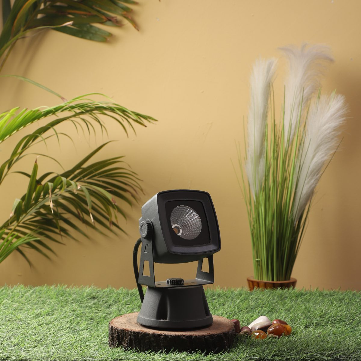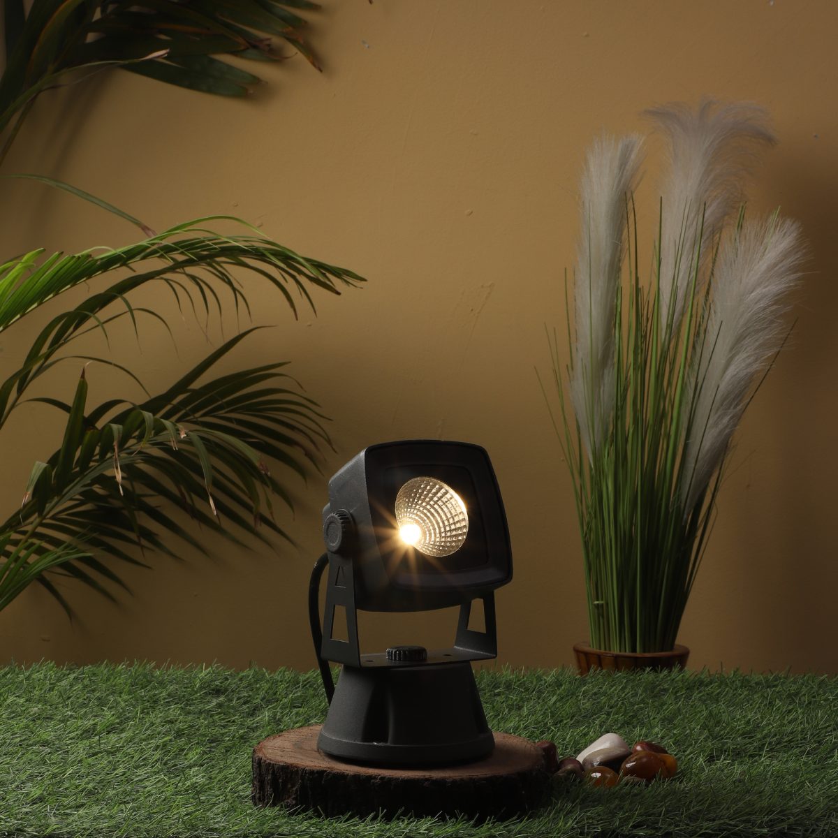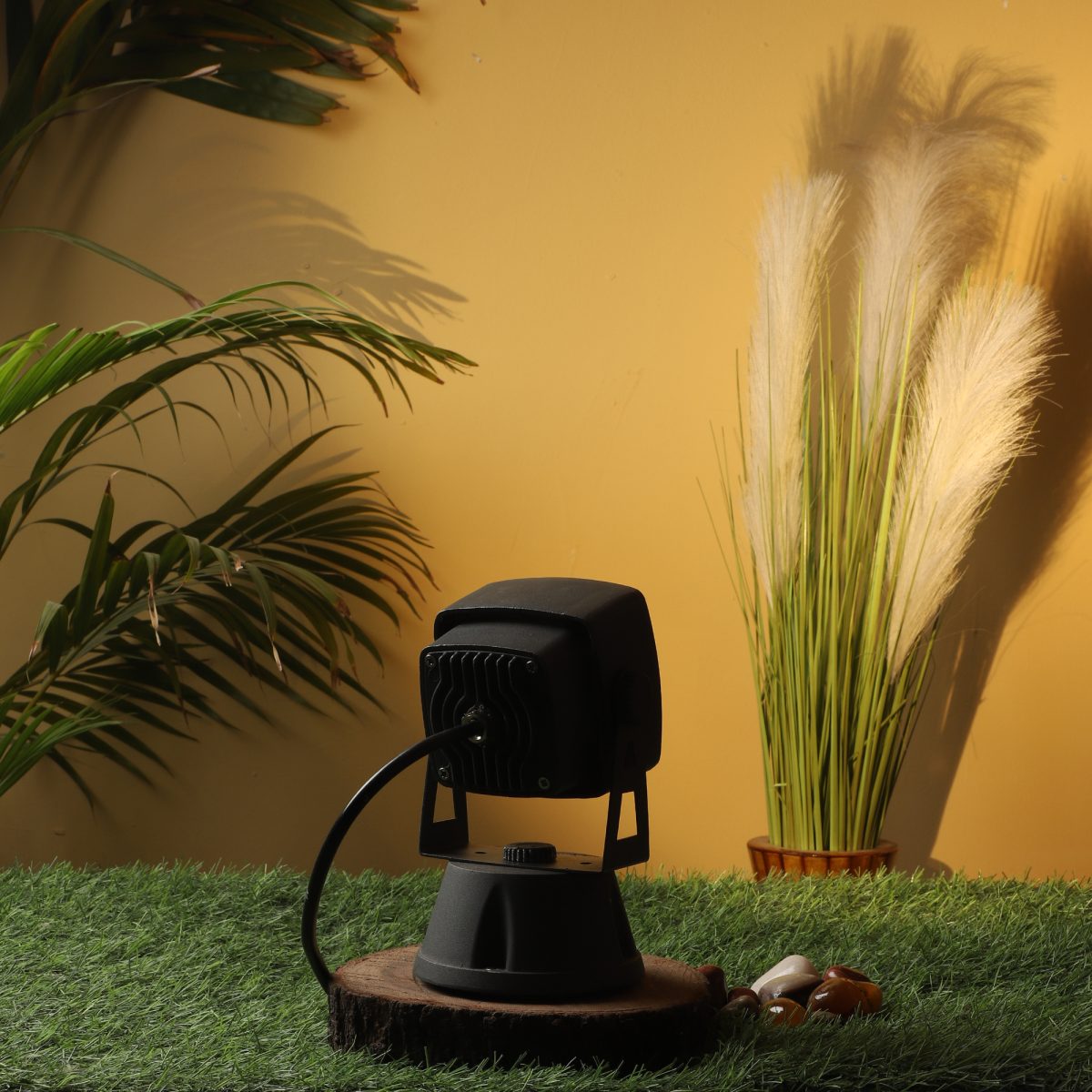 Heavy duty aluminium die cast 7 watt outdoor spot light using high quality LED and driver with high success rate having less than 0.5% replacement. IP 54 rated, providing protection from sprayed water in any direction and making this light perfect for use outdoors. Can be used to highlight plants, name plates or any other artefacts.