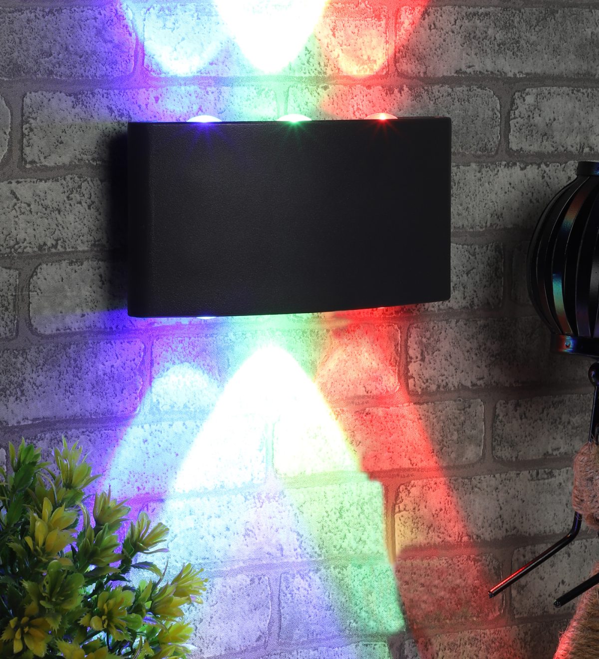 Multi coloured up and down aluminium die cast outdoor wall with high success rate having less than 0.5% replacement. It is a two way light with high light output creating a defined beam in red, blue and green colour in both the directions for a colourful visual effect. It can be used in both indoor and outdoor applications such as stair case walls, terrace walls, outdoor walls, boundary walls, open parking, stilt parking, basement parking, passage walls, entrance pillars. IP 54 rated. Protection against splashed water can be customized as per requirement for bulk quantities.
