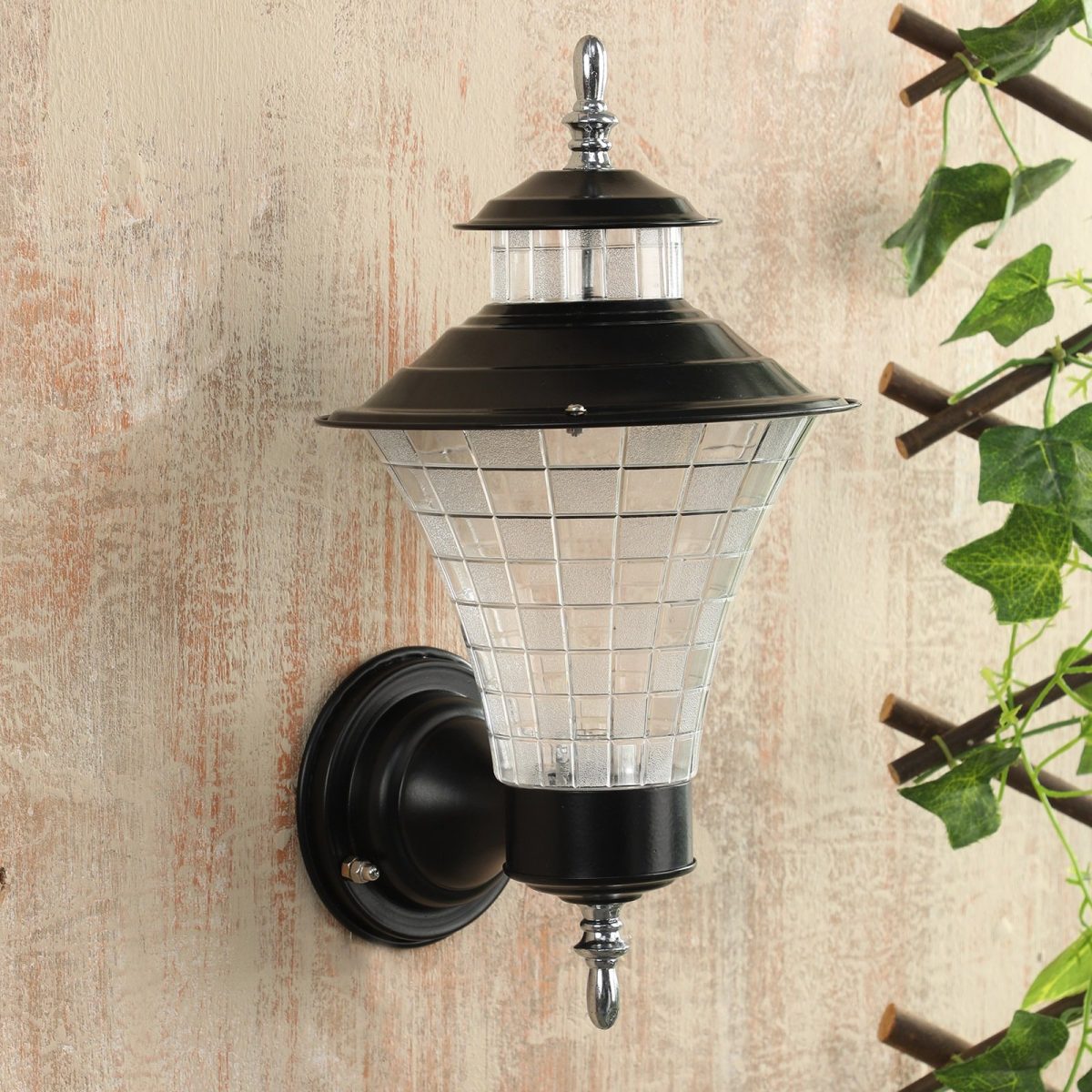 Economical, vertically mounted traditional outdoor wall light in black finish. It is maintenance free, comes with an B22 holder, only the change of lamp is required, which is available locally everywhere You can of course swap out the bulb for one that is dimmable, has a higher light output or a different color temperature. Application areas include Stair case walls, passage to staircase, terrace walls, terrace gardens, outdoor walls,, open parking, stilt parking, basement parking, balcony.