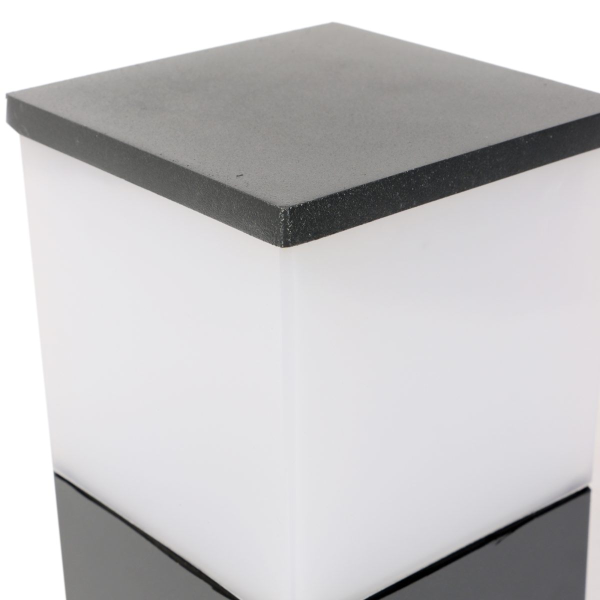 Modern compact aluminium die cast,export quality gate pillar post light in grey finish. It is maintenance free, comes with an E27 holder, only the change of lamp is required, which is available locally everywhere You can of course swap out the bulb for one that is dimmable, has a higher light output or a different color temperature. High quality acrylic is used to withstand tough weather conditions. IP 54 rated, providing protection from sprayed water in any direction and making this light perfect for use outdoors.Application areas include building entrance, on top of terrace walls, terrace gardens, boundary walls, open parking, stilt parking. Matching bollard code – K1015-S, K1015-M.