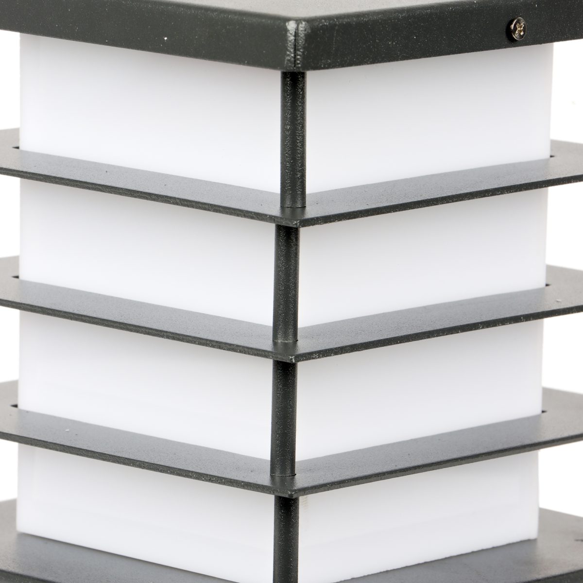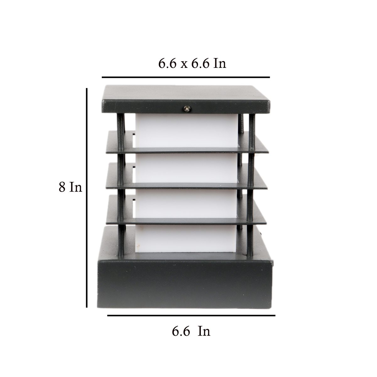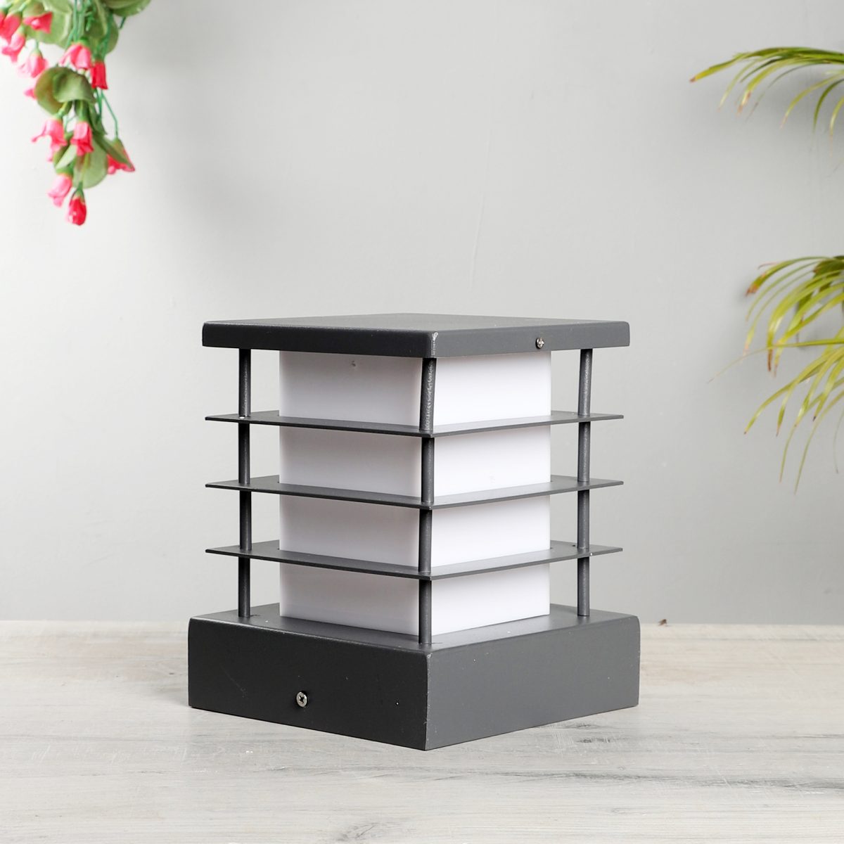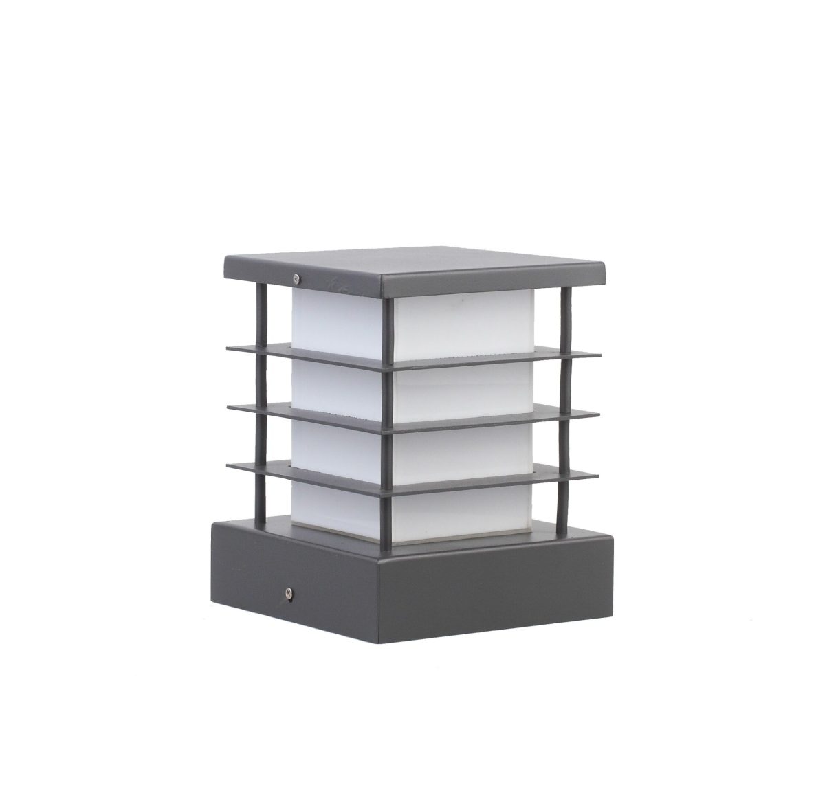 Modern aluminium die cast, premium export quality gate pillar post light in grey finish. It is maintenance free, comes with an B22 holder, only the change of lamp is required, which is available locally everywhere You can of course swap out the bulb for one that is dimmable, has a higher light output or a different color temperature. High quality acrylic is used to withstand tough weather conditions.IP 54 rated, providing protection from sprayed water in any direction and making this light perfect for use outdoors.Application areas include building entrance, on top of terrace walls, terrace gardens, boundary walls, open parking, stilt parking. Available in three sizes with codes GL4768, GL4769. MAtching bollard code K1065.