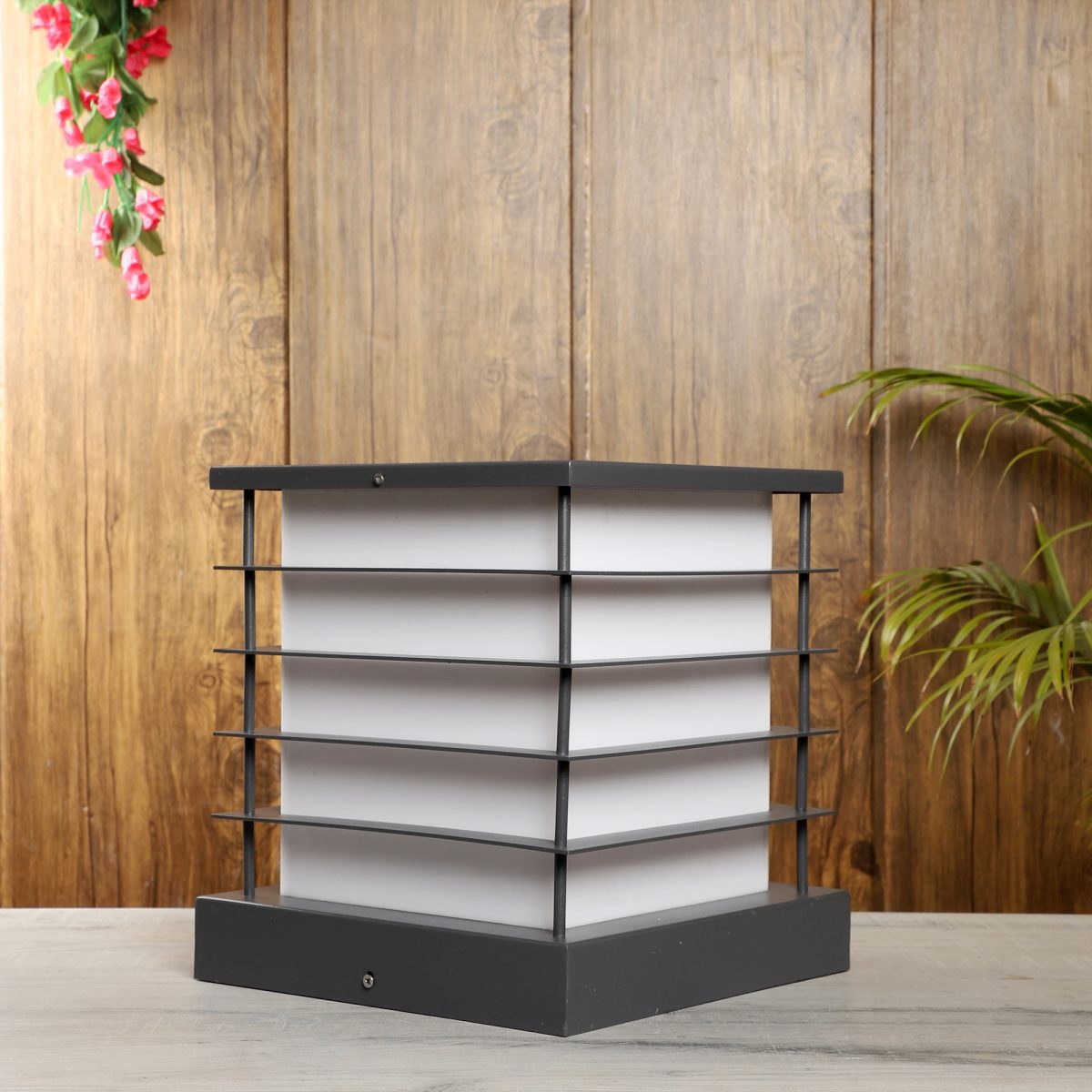 Modern aluminium die cast, premium export quality gate pillar post light in grey finish. It is maintenance free, comes with an B22 holder, only the change of lamp is required, which is available locally everywhere You can of course swap out the bulb for one that is dimmable, has a higher light output or a different color temperature. High quality acrylic is used to withstand tough weather conditions. IP 54 rated, providing protection from sprayed water in any direction and making this light perfect for use outdoors. Application areas include building entrance, on top of terrace walls, terrace gardens, boundary walls, open parking, stilt parking. Available in smaller sizes with codes GL4767, GL4768. Matching bollard code K1065. LAMP NOT INCLUDED.