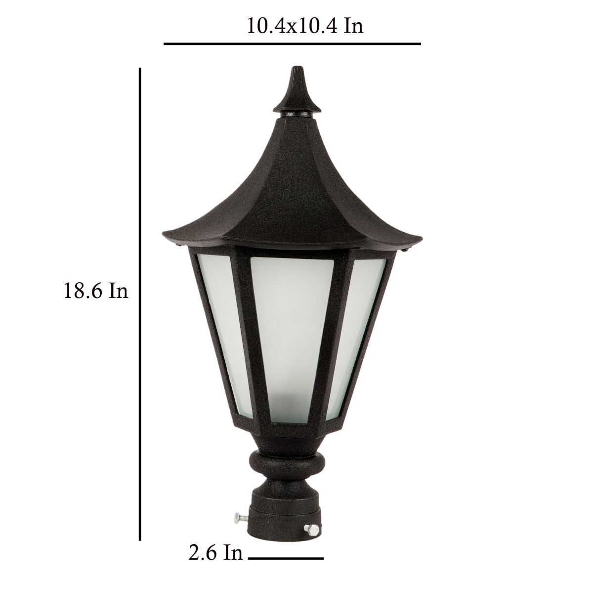 Traditional heavy duty,aluminium die cast, premium one of top selling export quality gate pillar post light in black finish. It is maintenance free, comes with an B22 holder, only the change of lamp is required, which is available locally everywhere You can of course swap out the bulb for one that is dimmable, has a higher light output or a different color temperature. IP54 rated, providing protection from sprayed water in any direction and making this light perfect for use outdoors.Application areas include building entrance, on top of terrace walls, terrace gardens, boundary walls, open parking, stilt parking. Available in three sizes with codes GL4593-S, GL4775-M, GL4593-L. Matching wall light – WL1830, WL1834, WL1202, WL2649. Matching pendant – HL3768, HL6060. Matching Bollard code – K1076. All options available in antique gold finish also. LAMPS NOT INCLUDED.
