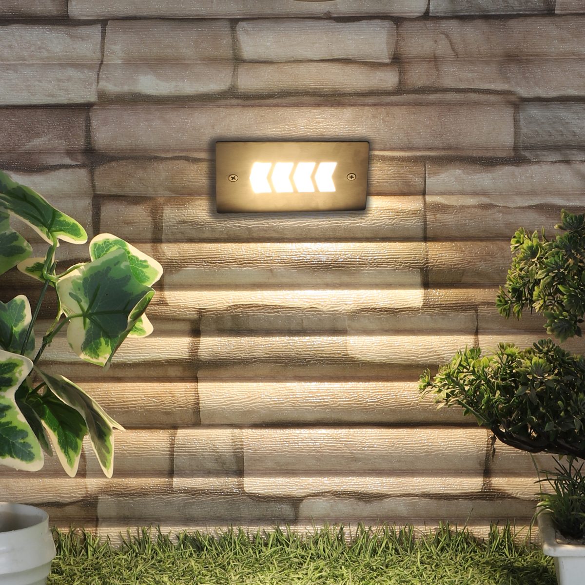 Compact, sleek aluminium die cast with steel plate direction indicating foot light using high quality LED and driver with high success rate having less than 0.5% replacement. Comes with a PVC casing, so that the light can easily be taken out from the wall without damaging it. It can be used for both indoor and outdoor applications.