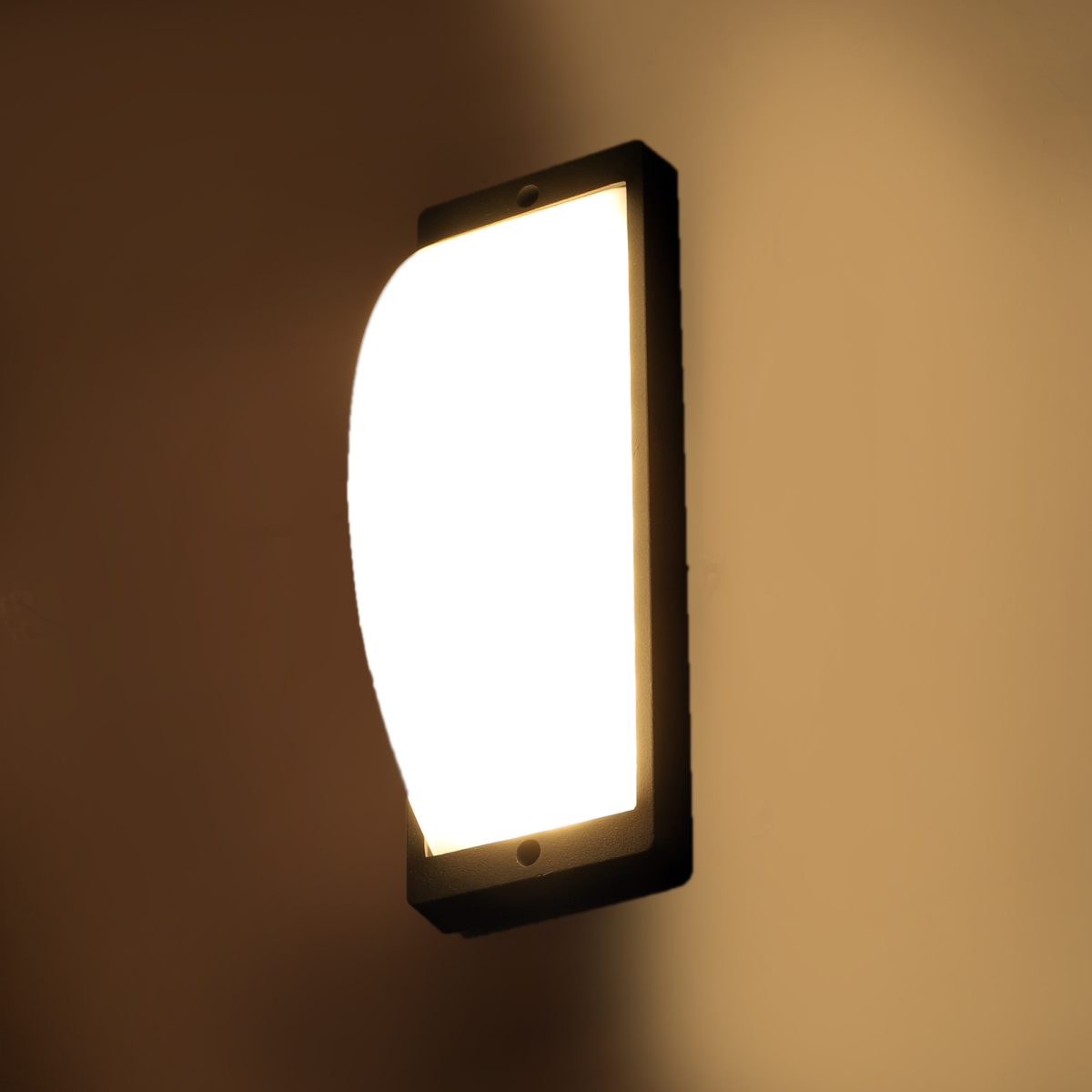 Modern aluminium die cast bulkhead light using high quality LED and driver with high success rate having less than 0.5% replacement, suitable for exterior lighting. IP44 rated, providing protection from sprayed water in any direction and making this light perfect for use outdoors can be installed in parking, balcony Stair case walls, drive way, terrace walls, outdoor walls, boundary walls, open parking, stilt parking, basement parking.