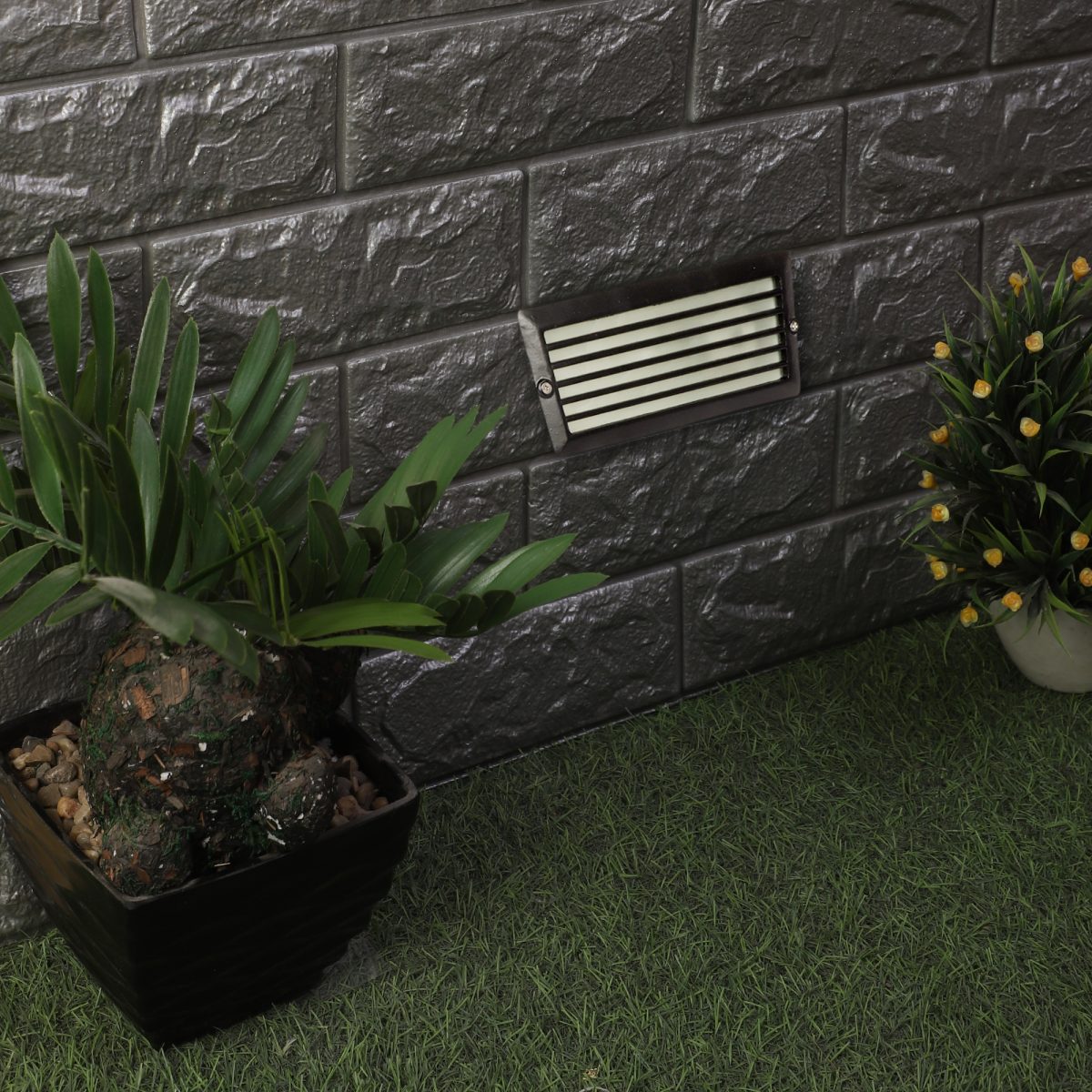 Solid, heavy, aluminium die cast foot light. It is maintenance free, one of the top selling export quality product, only the change of lamp is required, which is available locally everywhere. It can be used in both indoor and outdoor applications such as Stair case walls, steps, passage to staircase, path way, drive way, terrace walls, outdoor walls, boundary walls, open parking, stilt parking, basement parking. It is usually installed at 12 to 15 inches height from the floor.