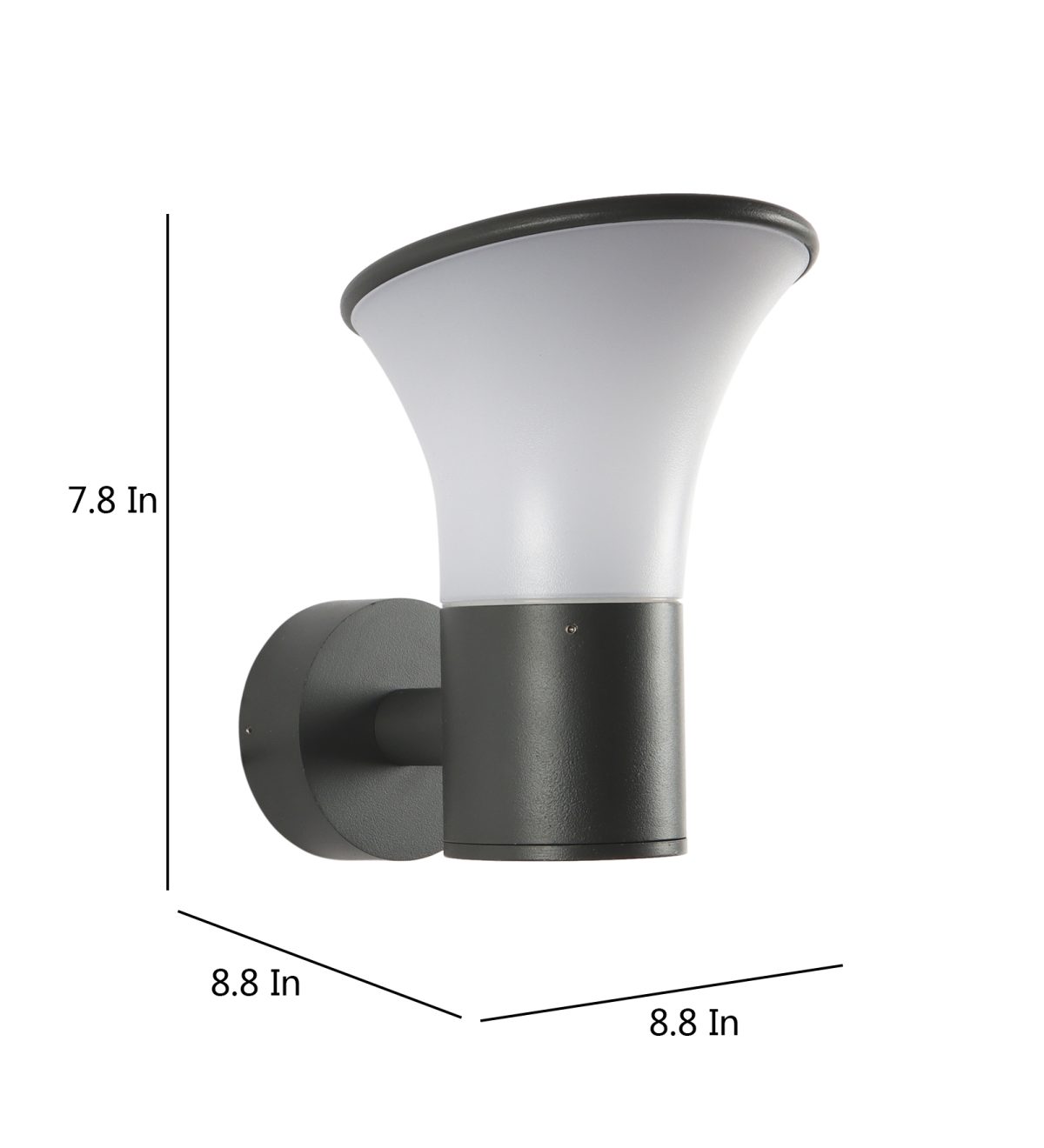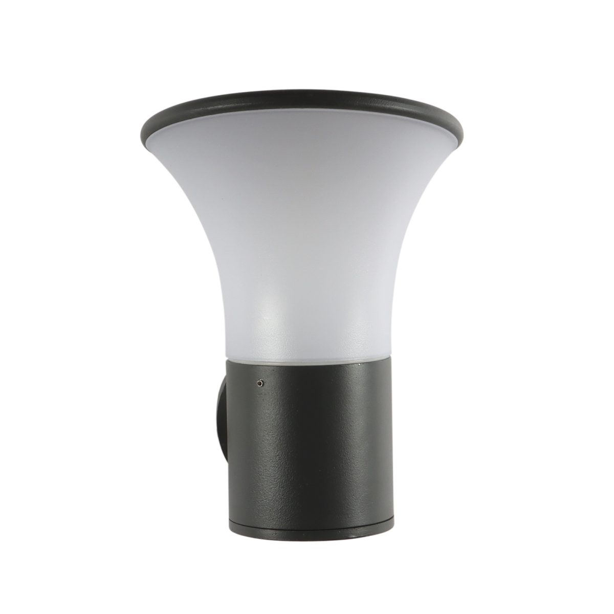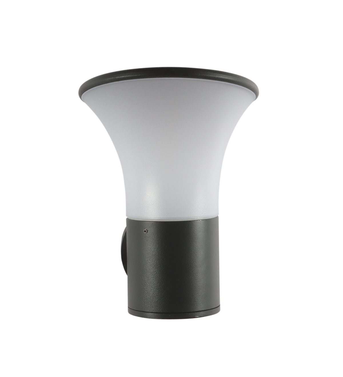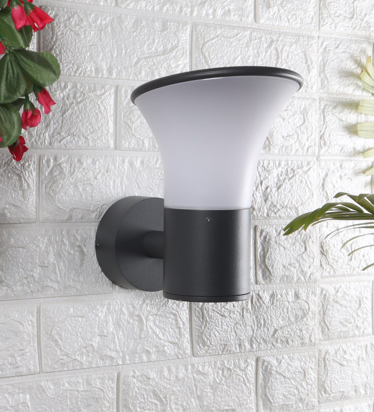 Compact, vertical aluminium die cast, one of top selling export quality mushroom shaped modern outdoor wall light in grey finish. It is maintenance free, comes with an E27 holder, only the change of lamp is required, which is available locally everywhere You can of course swap out the bulb for one that is dimmable, has a higher light output or a different color temperature. IP 54 rated, providing protection from sprayed water in any direction and making this light perfect for use outdoors. It can also be used in indoor applications. Application areas include Stair case walls, passage to staircase, terrace walls, terrace gardens outdoor walls, boundary walls, open parking, stilt parking, basement parking, balcony. It has a matching gate light (Gl4780), and bollard in two lengths (K1034-M, K1034-L) .