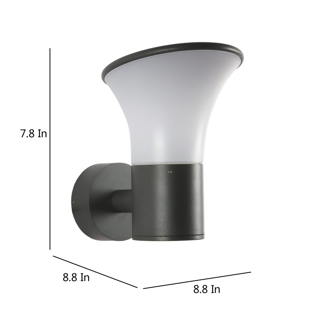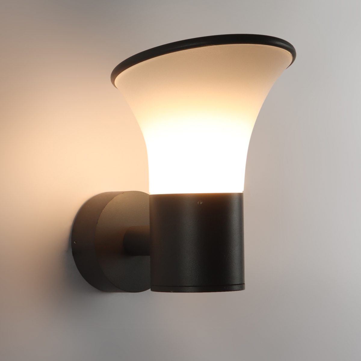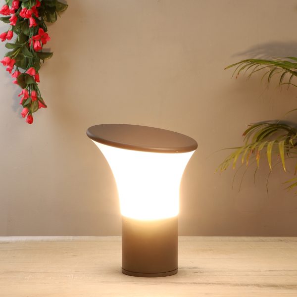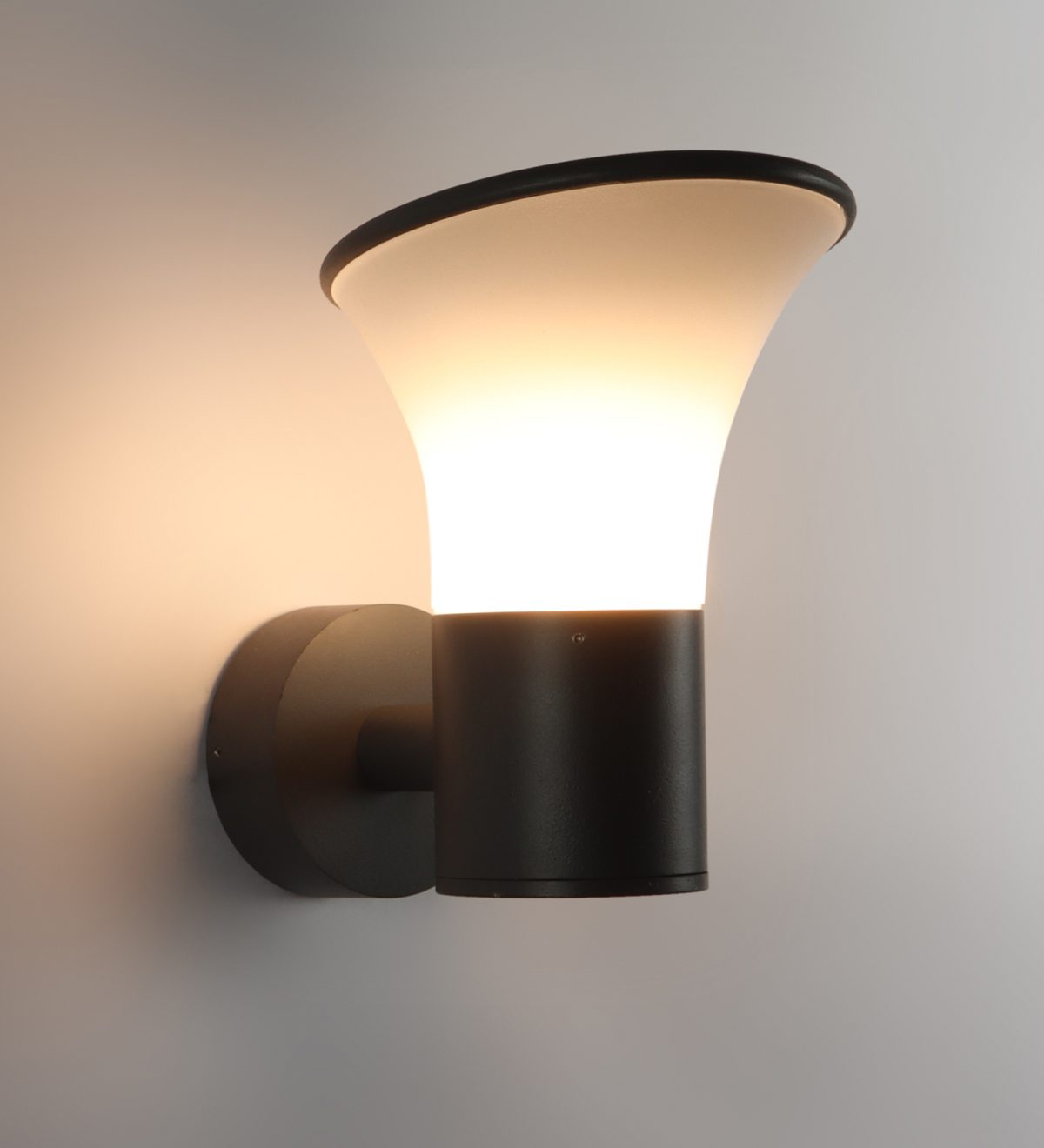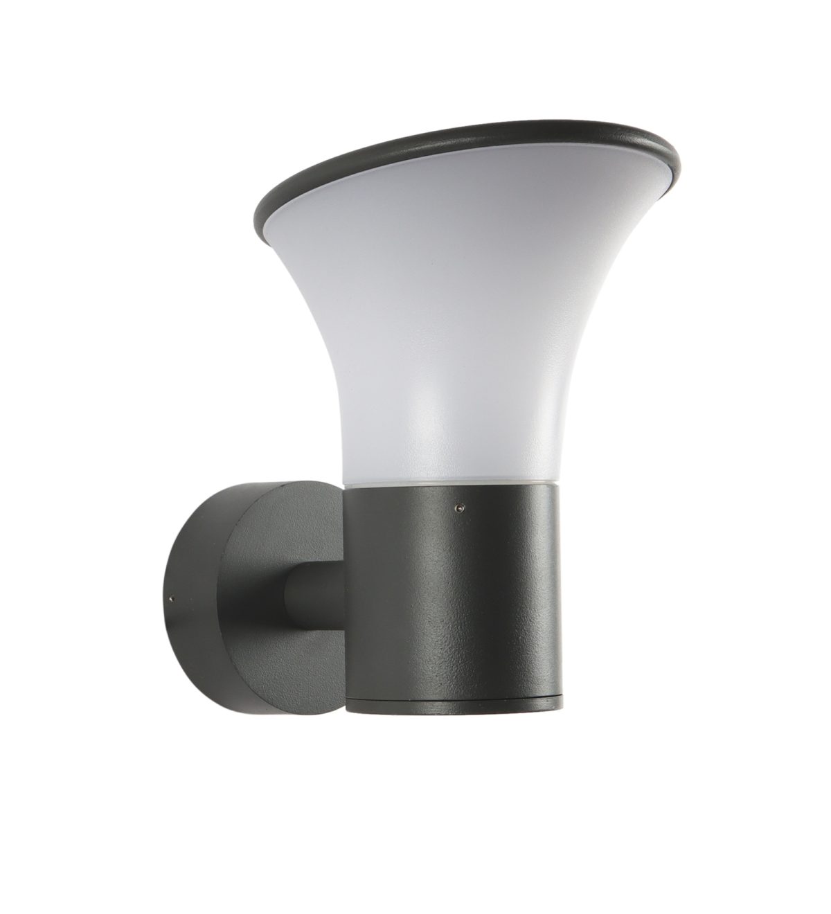 Compact, vertical aluminium die cast, one of top selling export quality mushroom shaped modern outdoor wall light in grey finish. It is maintenance free, comes with an E27 holder, only the change of lamp is required, which is available locally everywhere You can of course swap out the bulb for one that is dimmable, has a higher light output or a different color temperature. IP 54 rated, providing protection from sprayed water in any direction and making this light perfect for use outdoors. It can also be used in indoor applications. Application areas include Stair case walls, passage to staircase, terrace walls, terrace gardens outdoor walls, boundary walls, open parking, stilt parking, basement parking, balcony. It has a matching gate light (Gl4780), and bollard in two lengths (K1034-M, K1034-L) .