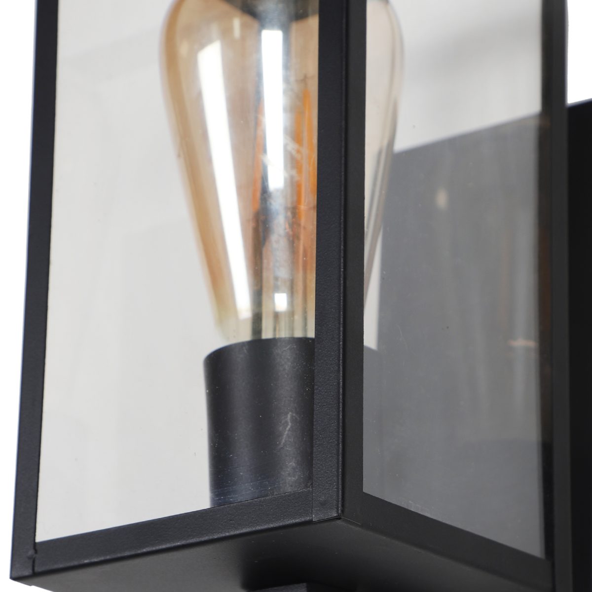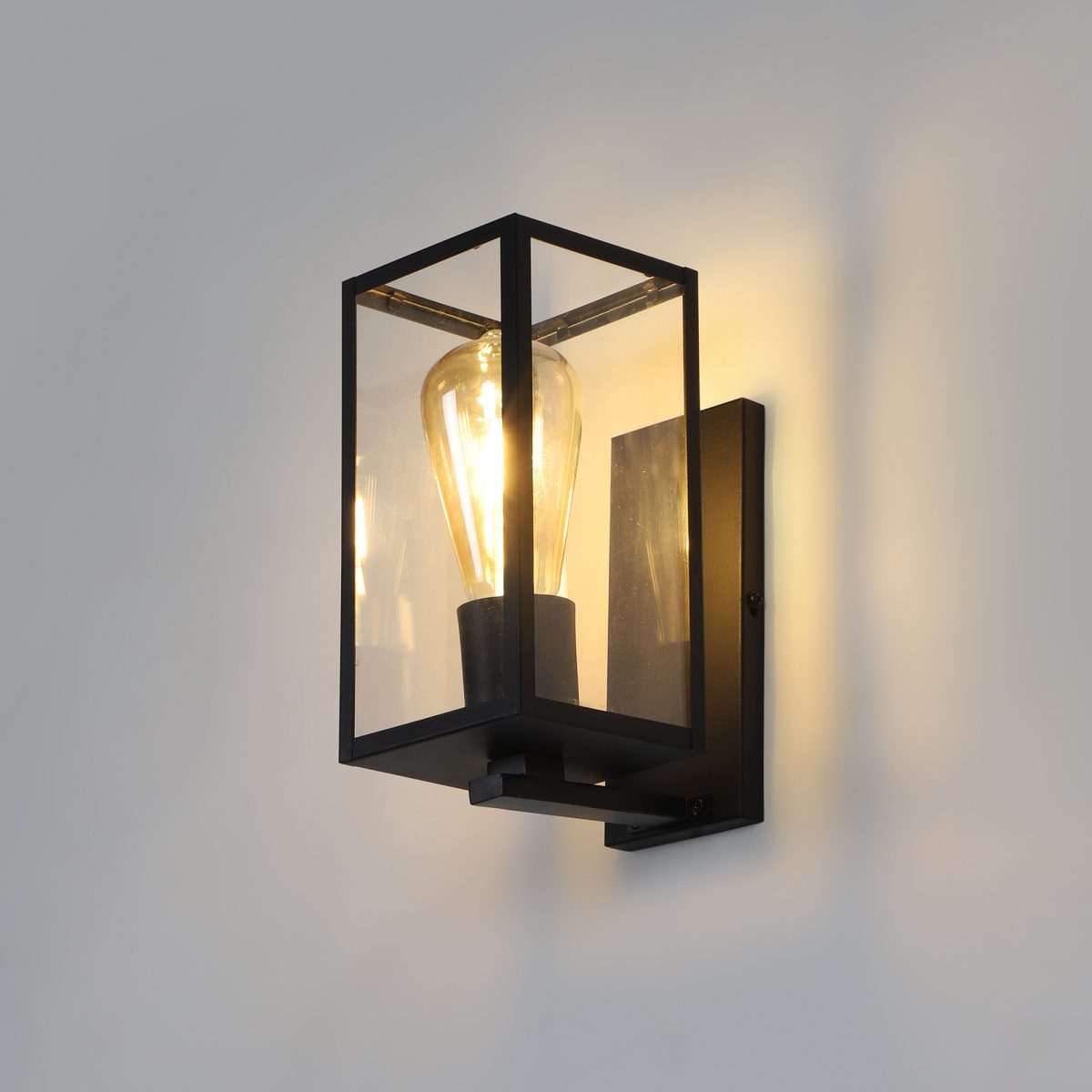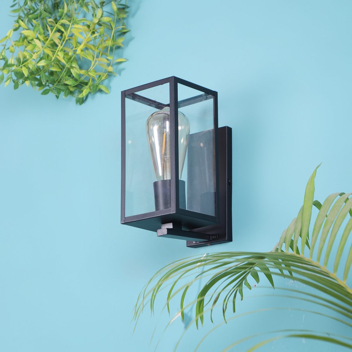 Vertical, mild steel modern outdoor wall light in black finish with clear acrylic sheet. It is maintenance free, comes with an E27 holder, only the change of lamp is required, which is available locally everywhere You can of course swap out the bulb for one that is dimmable, has a higher light output or a different color temperature. Application areas include Stair case walls, passage to staircase, terrace walls, terrace gardens, outdoor walls, boundary walls, open parking, stilt parking, basement parking, balcony , can also be installed inside, also suits theme restaurants and bars. Can be used indoors if goes with the color theme. Looks amazing with LED filament lamp.