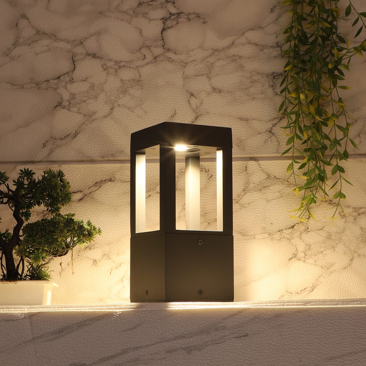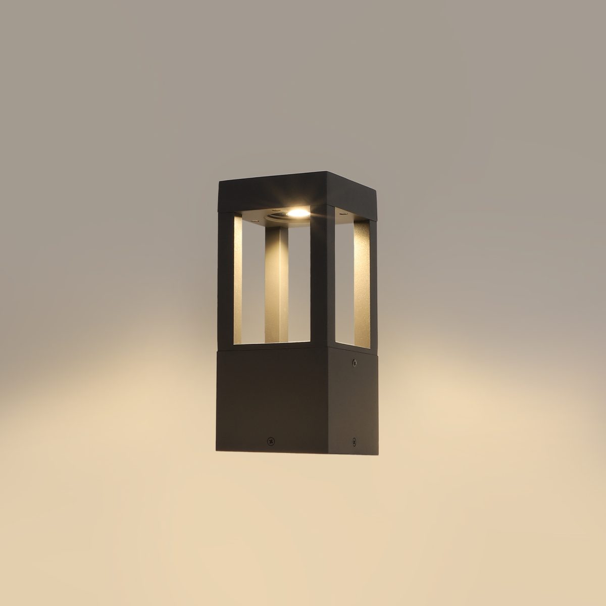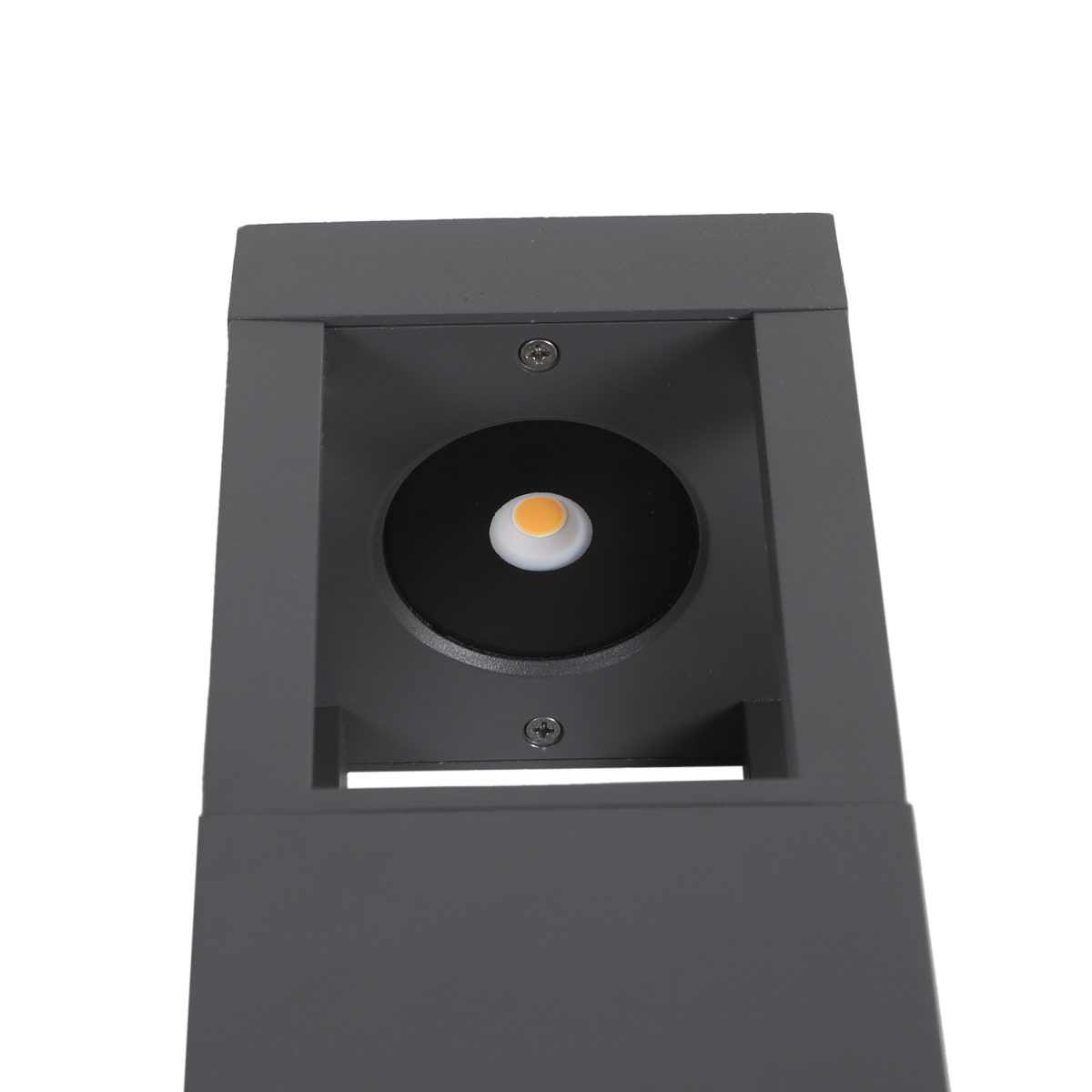 Modern sleek aluminium die cast gate pillar post light in grey finish having indirect lighting effect, using high quality LED and driver. IP 65 rated, providing protection from sprayed water in any direction and making this light perfect for use outdoors. Application areas include building entrance, on top of terrace walls, terrace gardens, boundary walls, open parking, stilt parking.