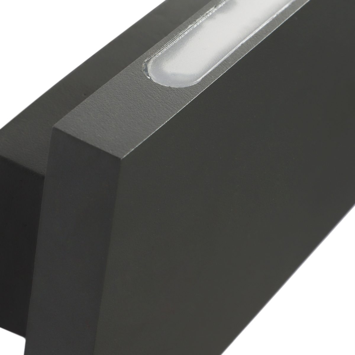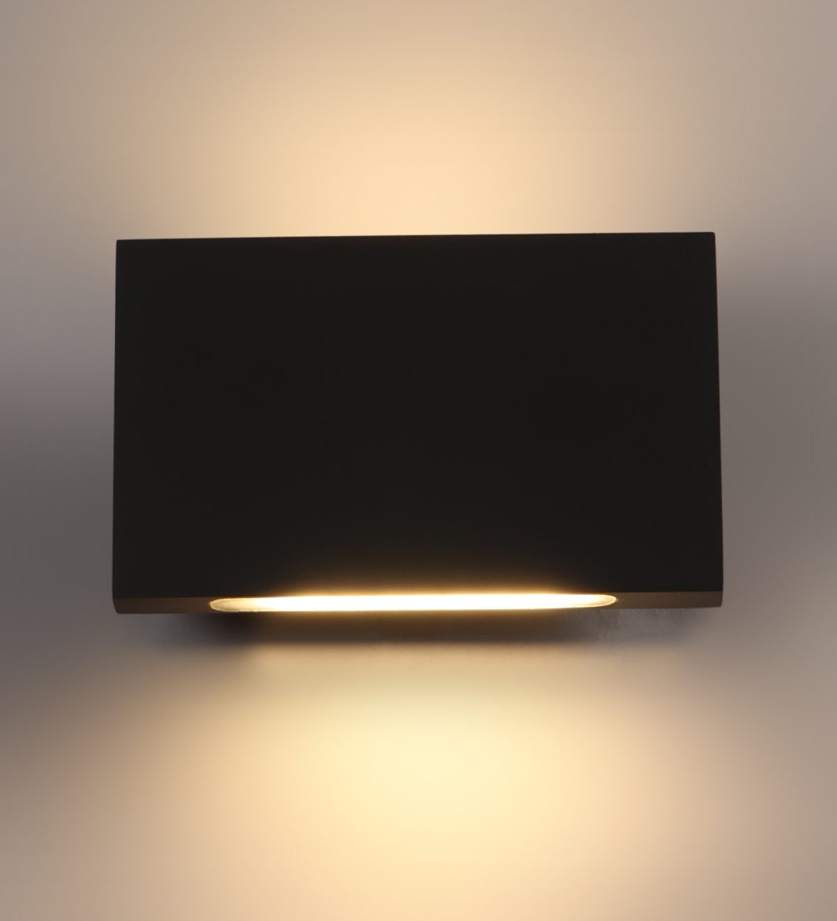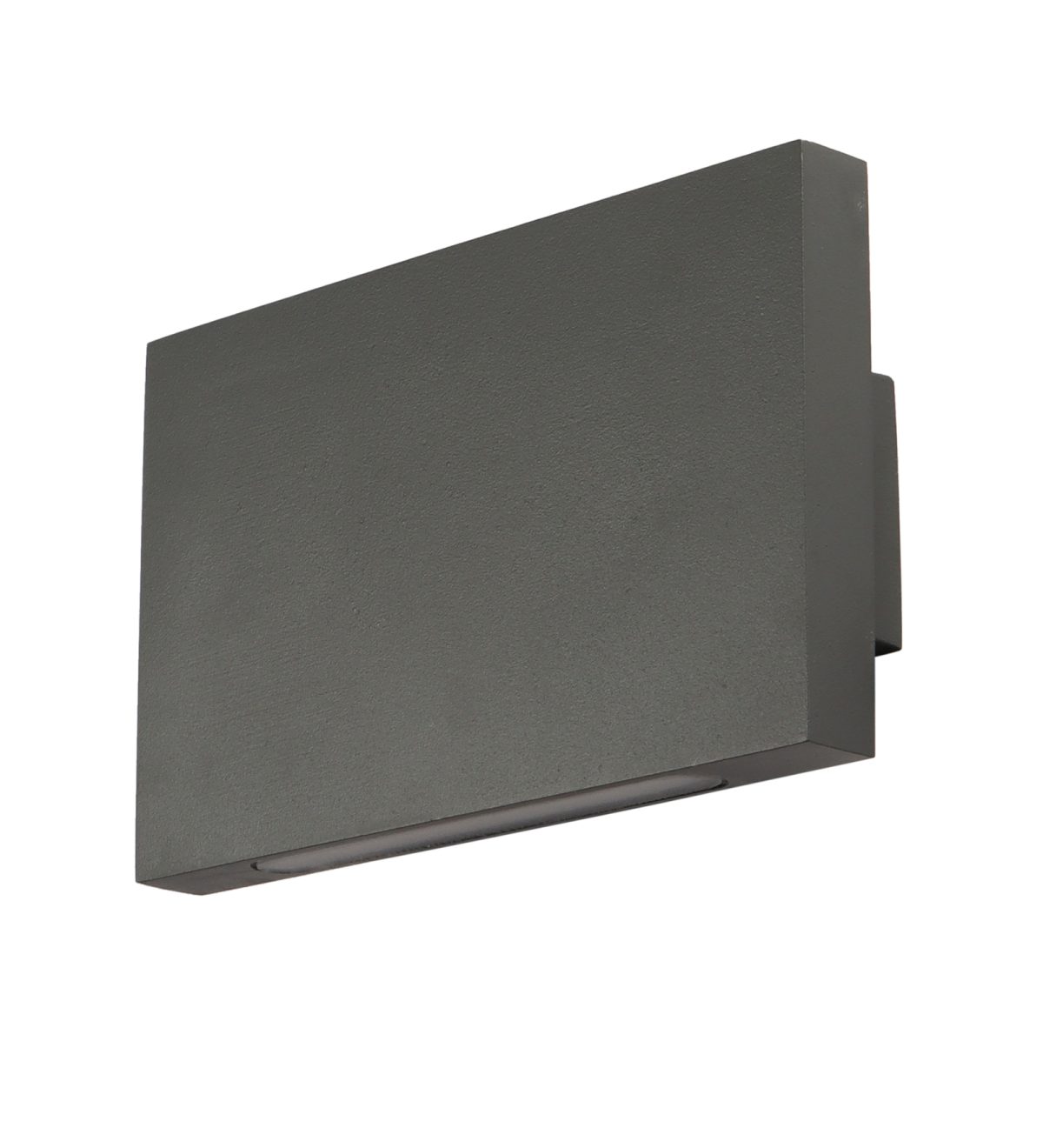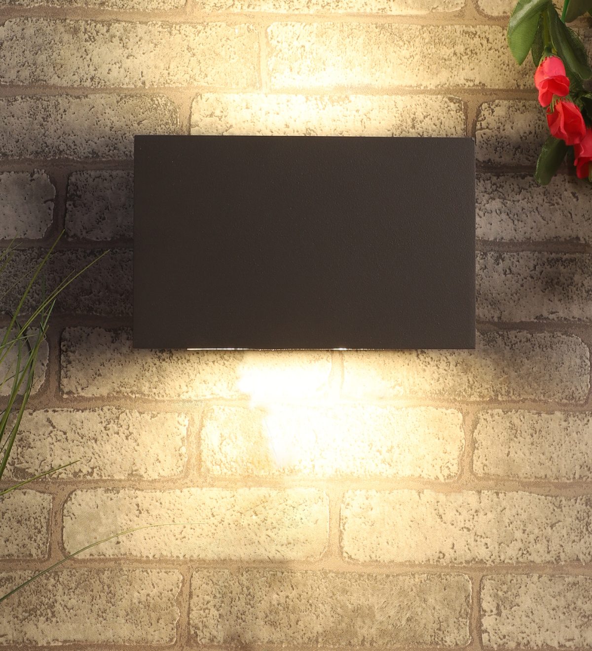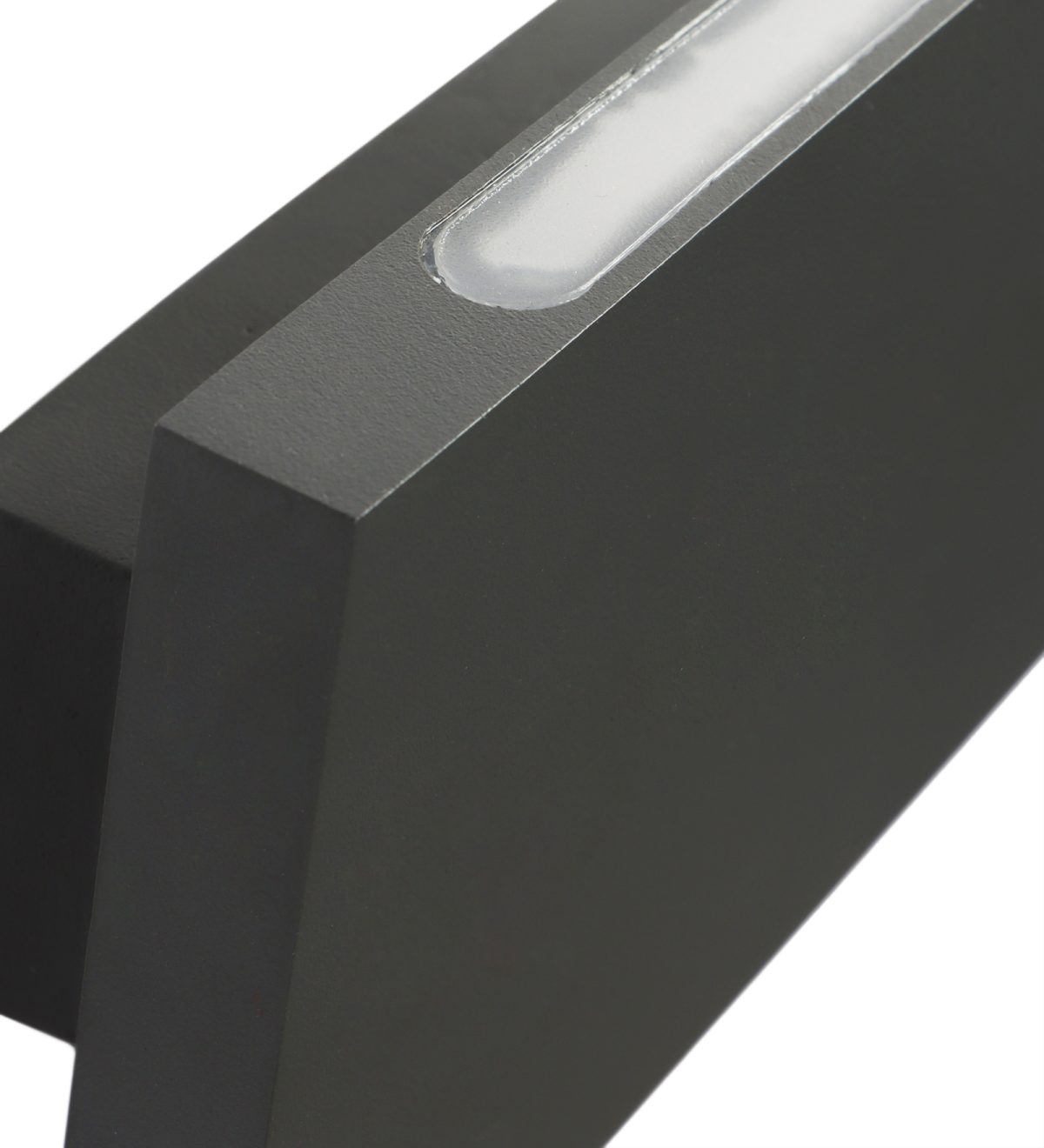Vertical, rectangular, up and down, two way aluminum die cast outdoor wall light in gray finish using high quality LED and driver with high success rate having less than 0.5% replacement. This is one of the highest selling product. It is a two way light providing light in two directions. It can be used in both indoor and outdoor applications such as stair case walls, terrace walls, outdoor walls, boundary walls, open parking, stilt parking, basement parking, passage walls. IP54 rated. Protection against splashed water can be customized as per requirement for bulk quantities.