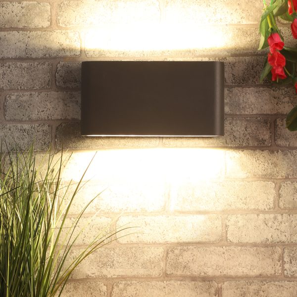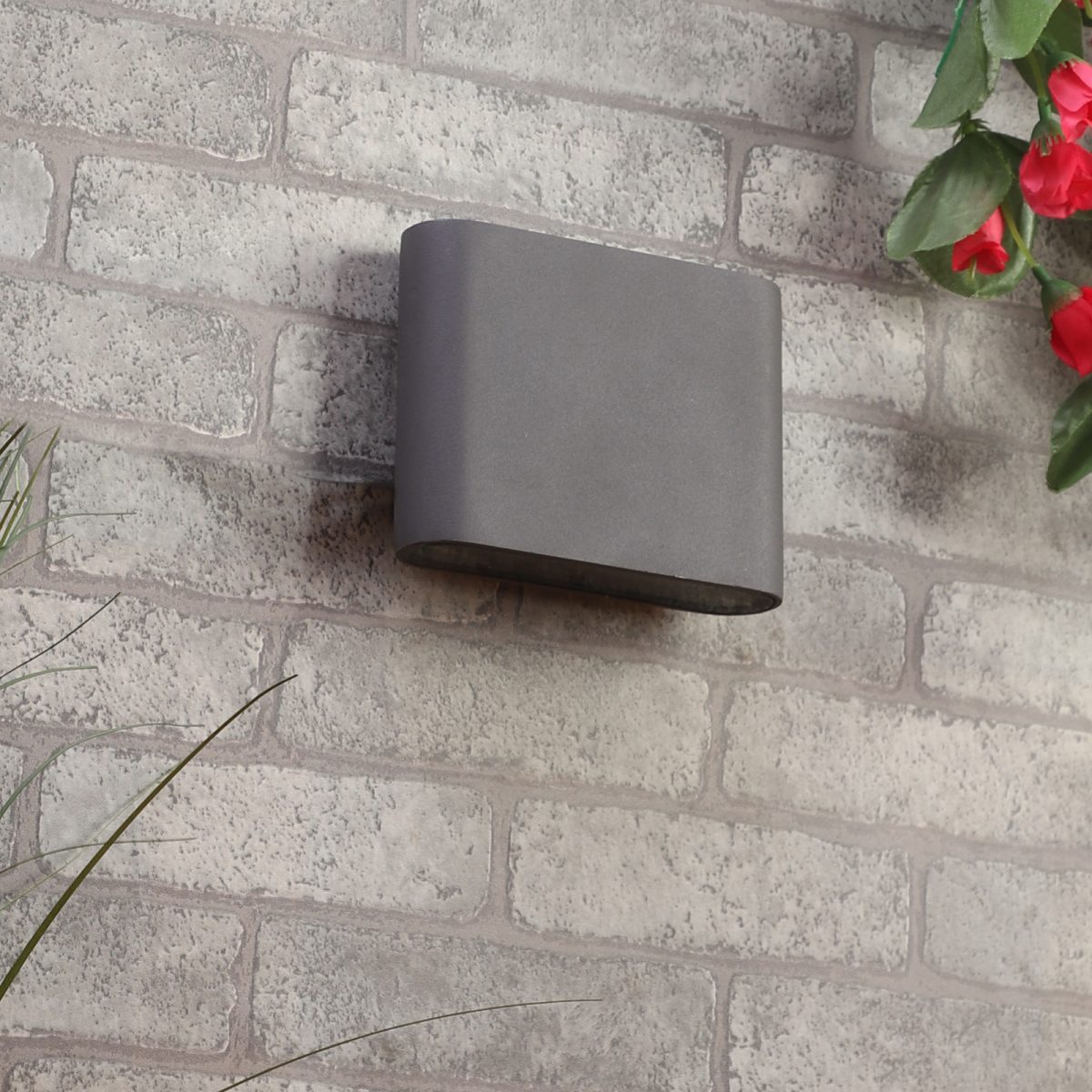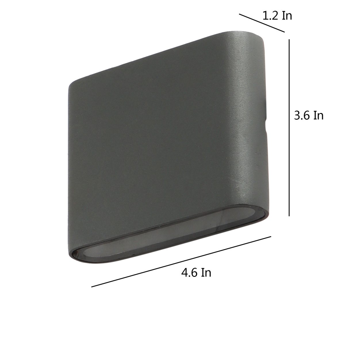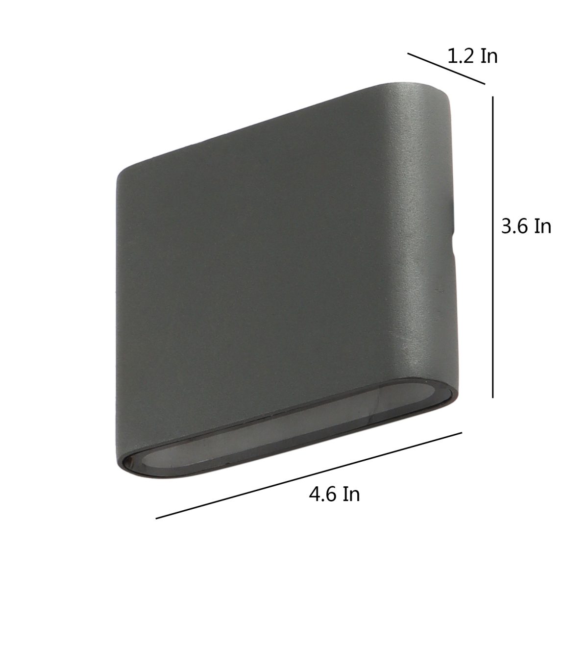 Vertical, rectangular, up and down, two way aluminum die cast outdoor wall light in gray finish using high quality LED and driver with high success rate having less than 0.5% replacement. This is one of the best selling product. It is a two way light providing light in two directions. It can be used in both indoor and outdoor applications such as stair case walls, terrace walls, outdoor walls, boundary walls, open parking, stilt parking, basement parking, passage walls. IP54 rated. Protection against splashed water can be customized as per requirement for bulk quantities. Higher wattage with more width and light output is available (Code – WL2284).