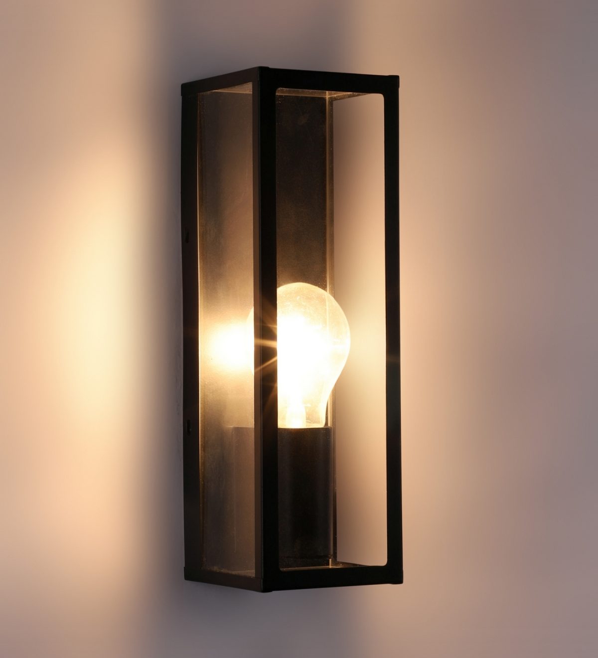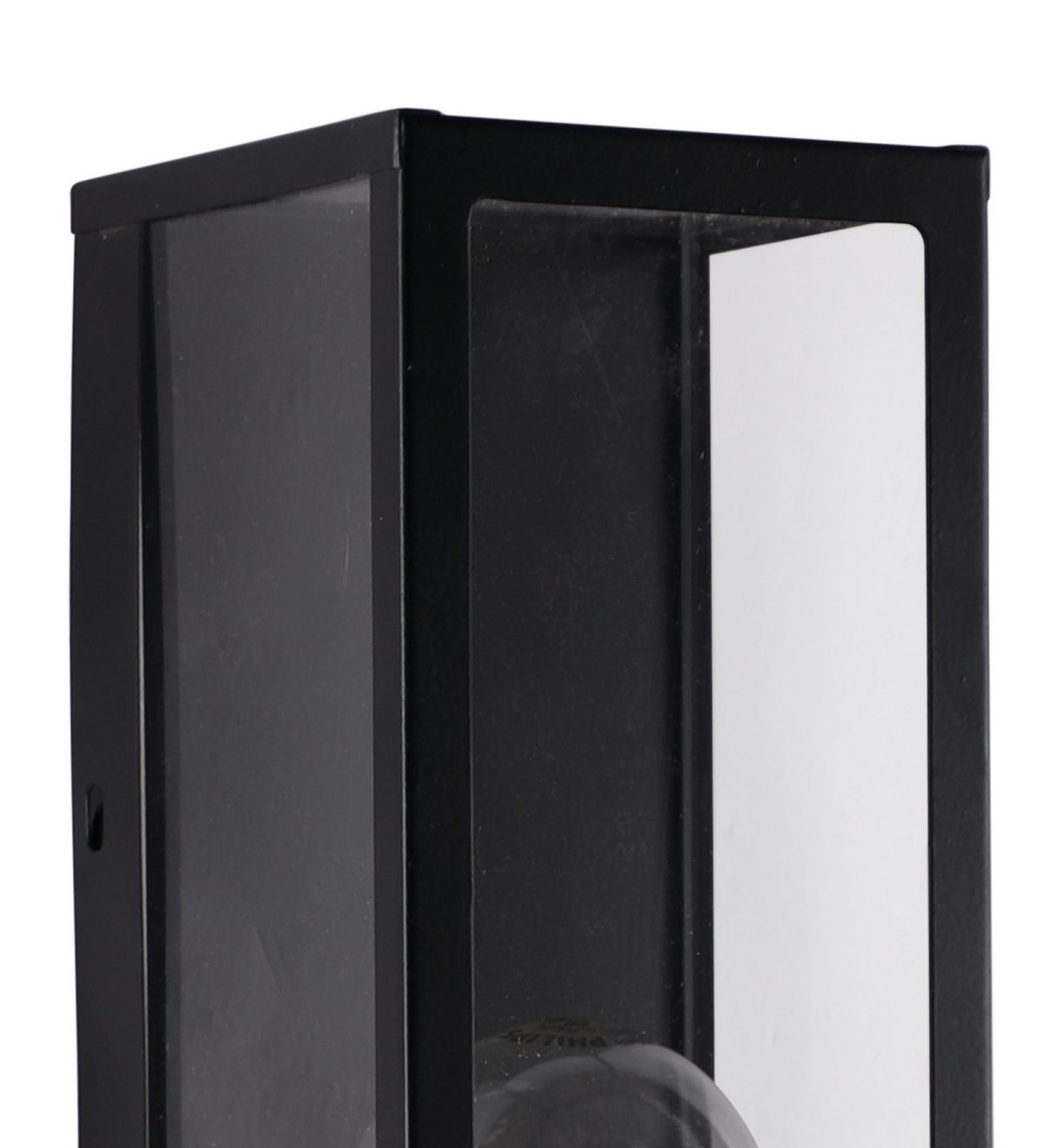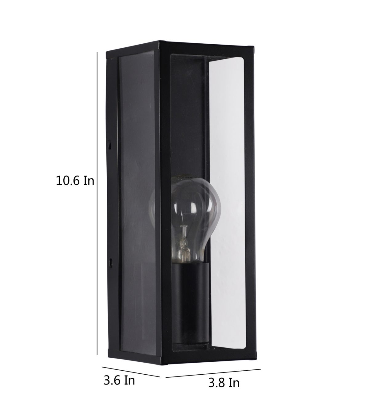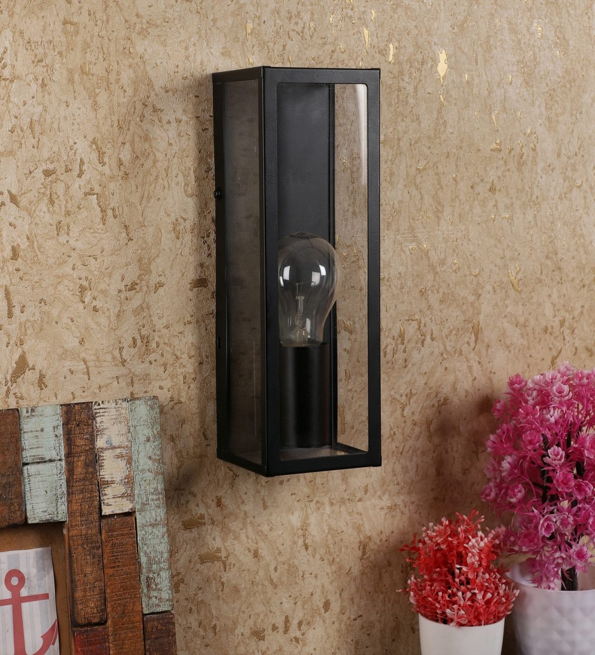 Vertical, mild steel modern outdoor wall light in black finish with clear acrylic sheet. It is maintenance free, comes with an E27 holder, only the change of lamp is required, which is available locally everywhere You can of course swap out the bulb for one that is dimmable, has a higher light output or a different color temperature. Application areas include Stair case walls, passage to staircase, terrace walls, terrace gardens, outdoor walls, boundary walls, open parking, stilt parking, basement parking, balcony , can also be installed inside, also suits theme restaurants and bars. Can be used indoors if goes with the color theme. Looks amazing with LED filament lamp. Matching double wall light code – WL2617. LAMP NOT INCLUDED. NOT RECOMMENDED IN AREAS EXPOSED TO DIRECT RAINFALL.