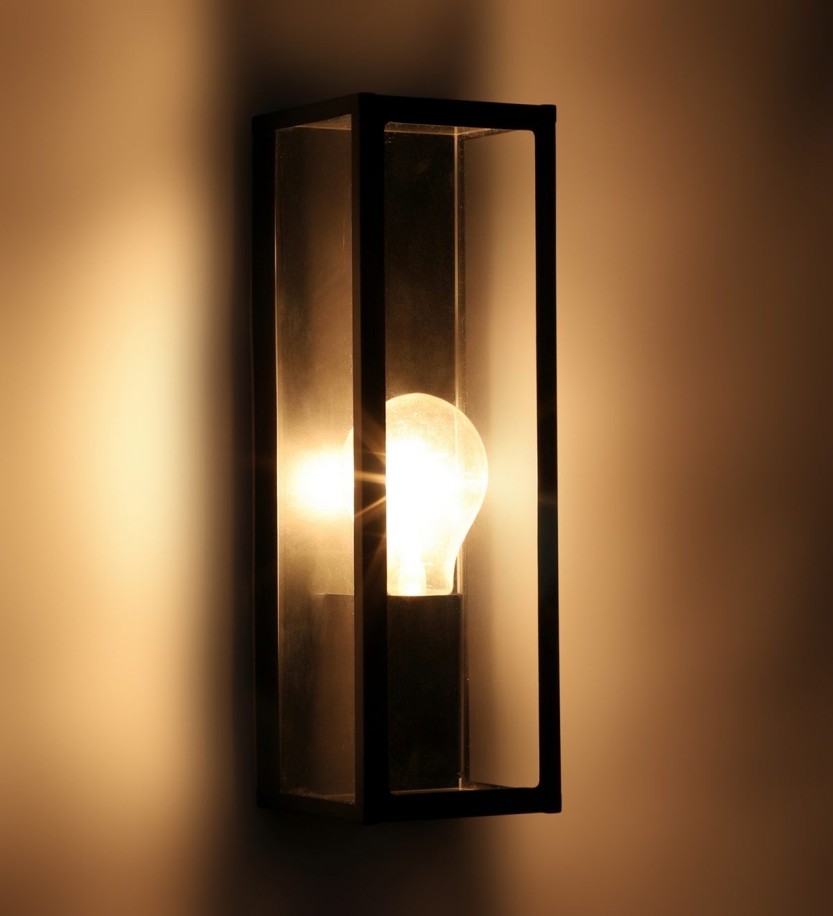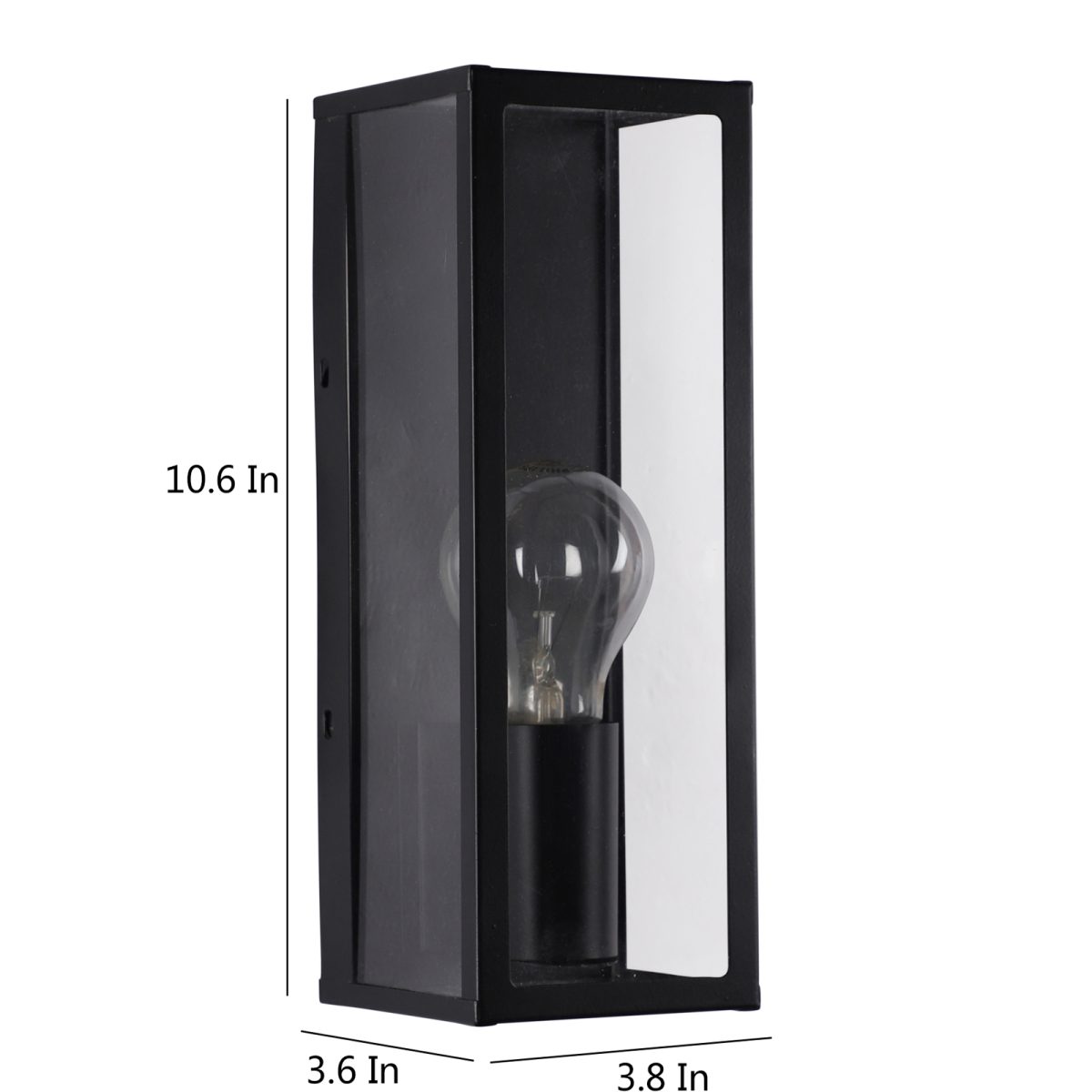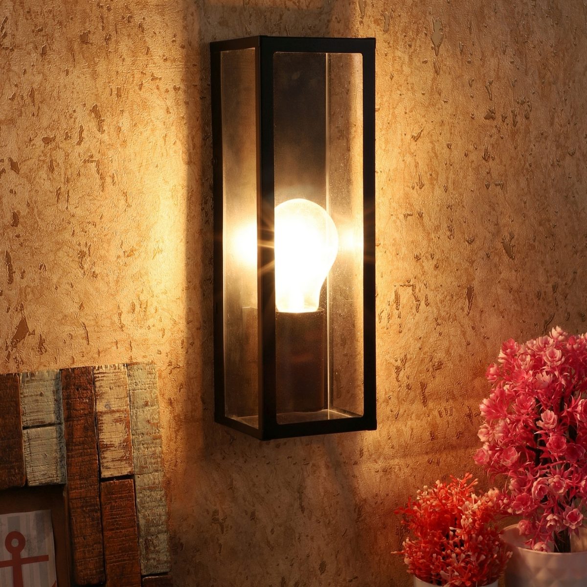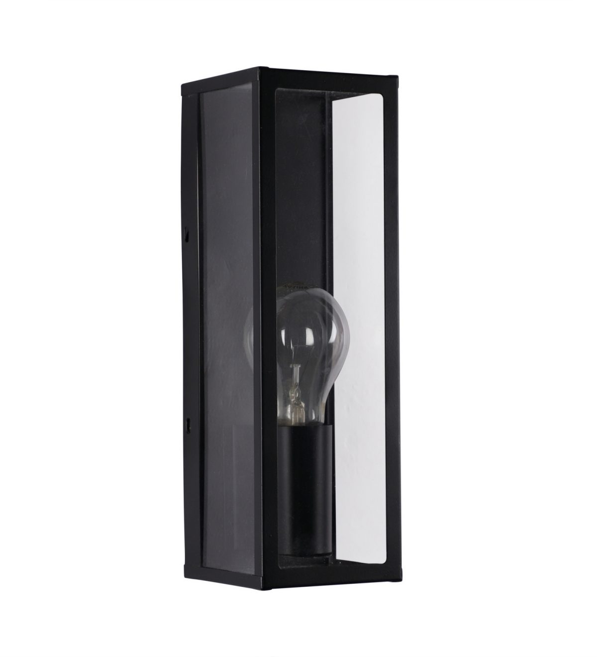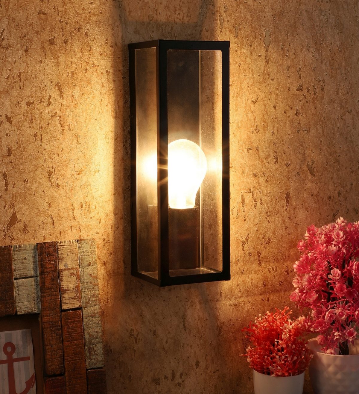 Vertical, mild steel modern outdoor wall light in black finish with clear acrylic sheet. It is maintenance free, comes with an E27 holder, only the change of lamp is required, which is available locally everywhere You can of course swap out the bulb for one that is dimmable, has a higher light output or a different color temperature. Application areas include Stair case walls, passage to staircase, terrace walls, terrace gardens, outdoor walls, boundary walls, open parking, stilt parking, basement parking, balcony , can also be installed inside, also suits theme restaurants and bars. Can be used indoors if goes with the color theme. Looks amazing with LED filament lamp. Matching double wall light code – WL2617. LAMP NOT INCLUDED. NOT RECOMMENDED IN AREAS EXPOSED TO DIRECT RAINFALL.