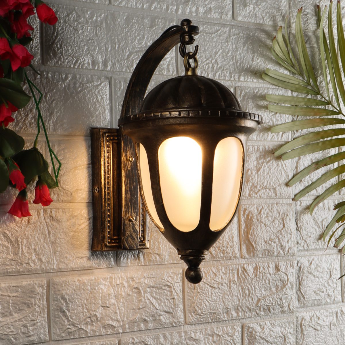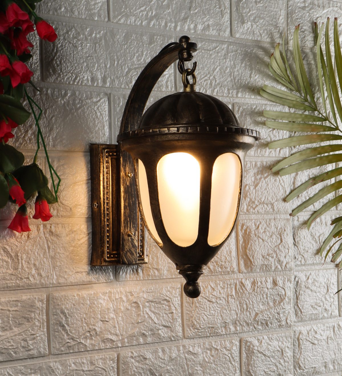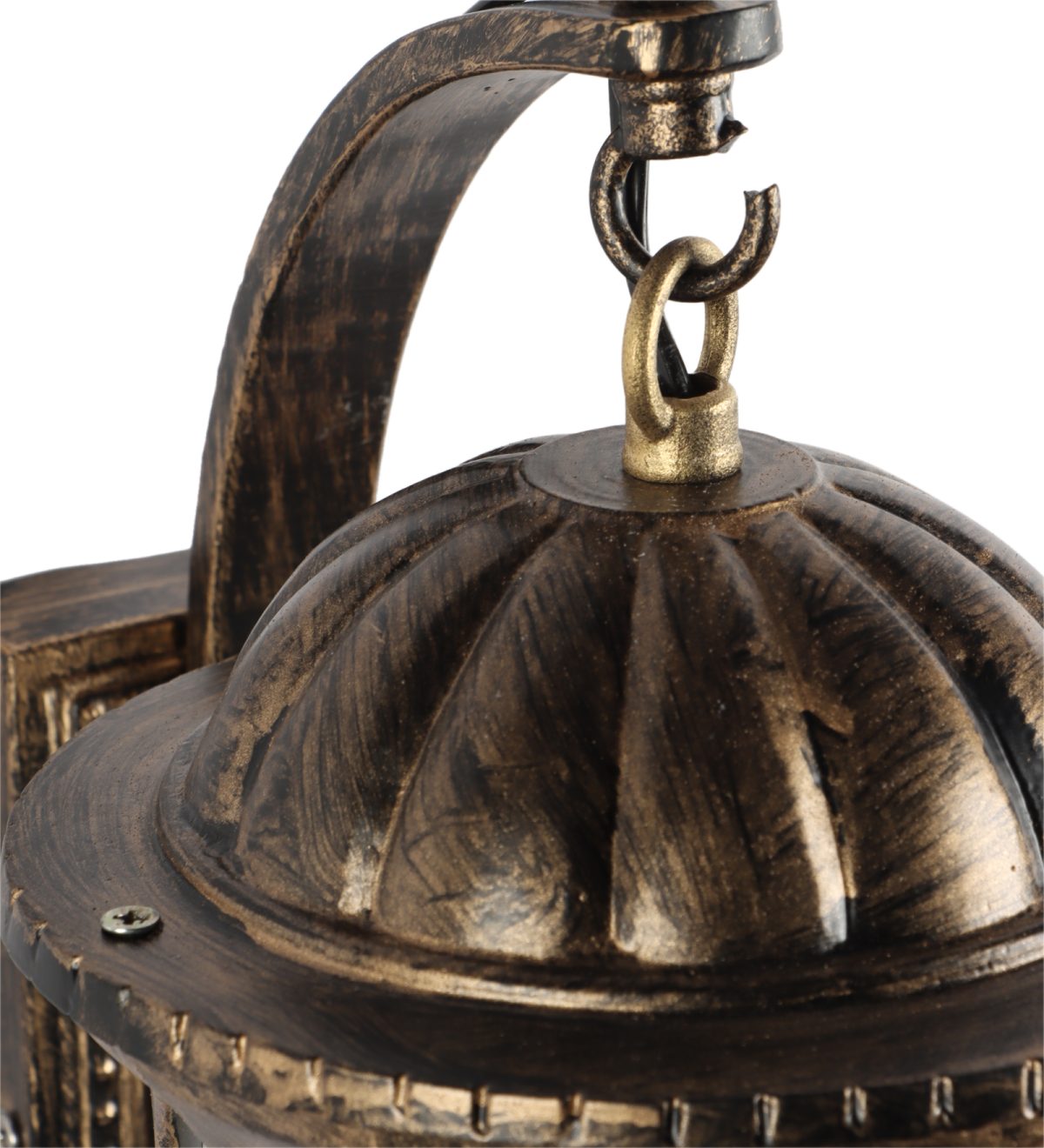 Solid, heavy, aluminium die cast, traditional outdoor wall light is available in antique gold finish. It is maintenance free, comes with an B22 holder, only the change of lamp is required, which is available locally everywhere You can of course swap out the bulb for one that is dimmable, has a higher light output or a different color temperature. Application areas include Stair case walls, passage to staircase, terrace walls, terrace gardens outdoor walls, boundary walls, open parking, stilt parking, basement parking, balcony, theme restaurants and bars,premium farm houses and party venue. IP54 rated providing protection from sprayed water in any direction and making this light perfect for use outdoors, can also be installed indoors it goes with the color theme. Matching Pendant – HL4081.
