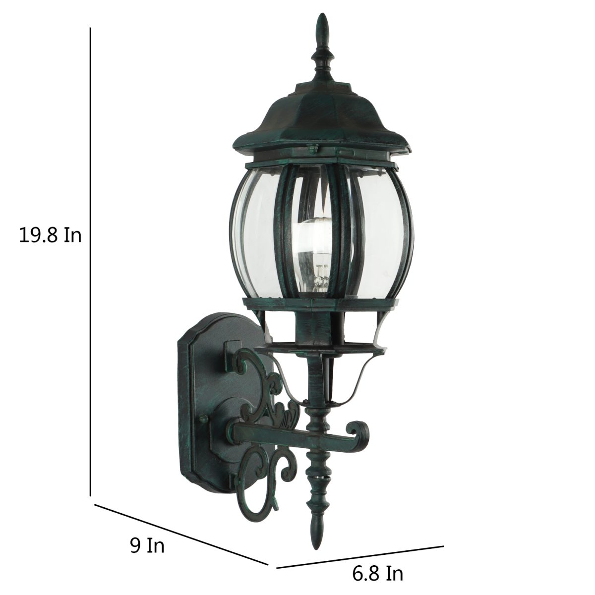 Vertical, aluminium die cast traditional outdoor wall light in green finish. It is maintenance free, comes with an E27 holder, only the change of lamp is required, which is available locally everywhere You can of course swap out the bulb for one that is dimmable, has a higher light output or a different color temperature. IP54 rated providing protection from sprayed water in any direction and making this light perfect for use outdoors.Application areas include Stair case walls, passage to staircase, terrace walls, terrace gardens, outdoor walls, boundary walls, open parking, stilt parking, basement parking, balcony , can also be installed inside, also suits theme restaurants and bars.Matching Gate Light – GL4783, GL4784.