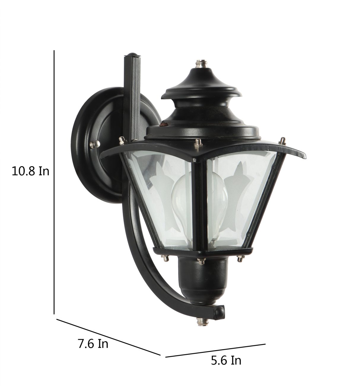 Vertical, aluminium sheet, export quality traditional outdoor wall light in black finish. It is maintenance free, comes with an B22 holder, only the change of lamp is required, which is available locally everywhere You can of course swap out the bulb for one that is dimmable, has a higher light output or a different color temperature. IP54 rated providing protection from sprayed water in any direction and making this light perfect for use outdoors.Application areas include Stair case walls, passage to staircase, terrace walls, terrace gardens, outdoor walls, boundary walls, open parking, stilt parking, basement parking, balcony , can also be installed inside, also suits theme restaurants and bars.