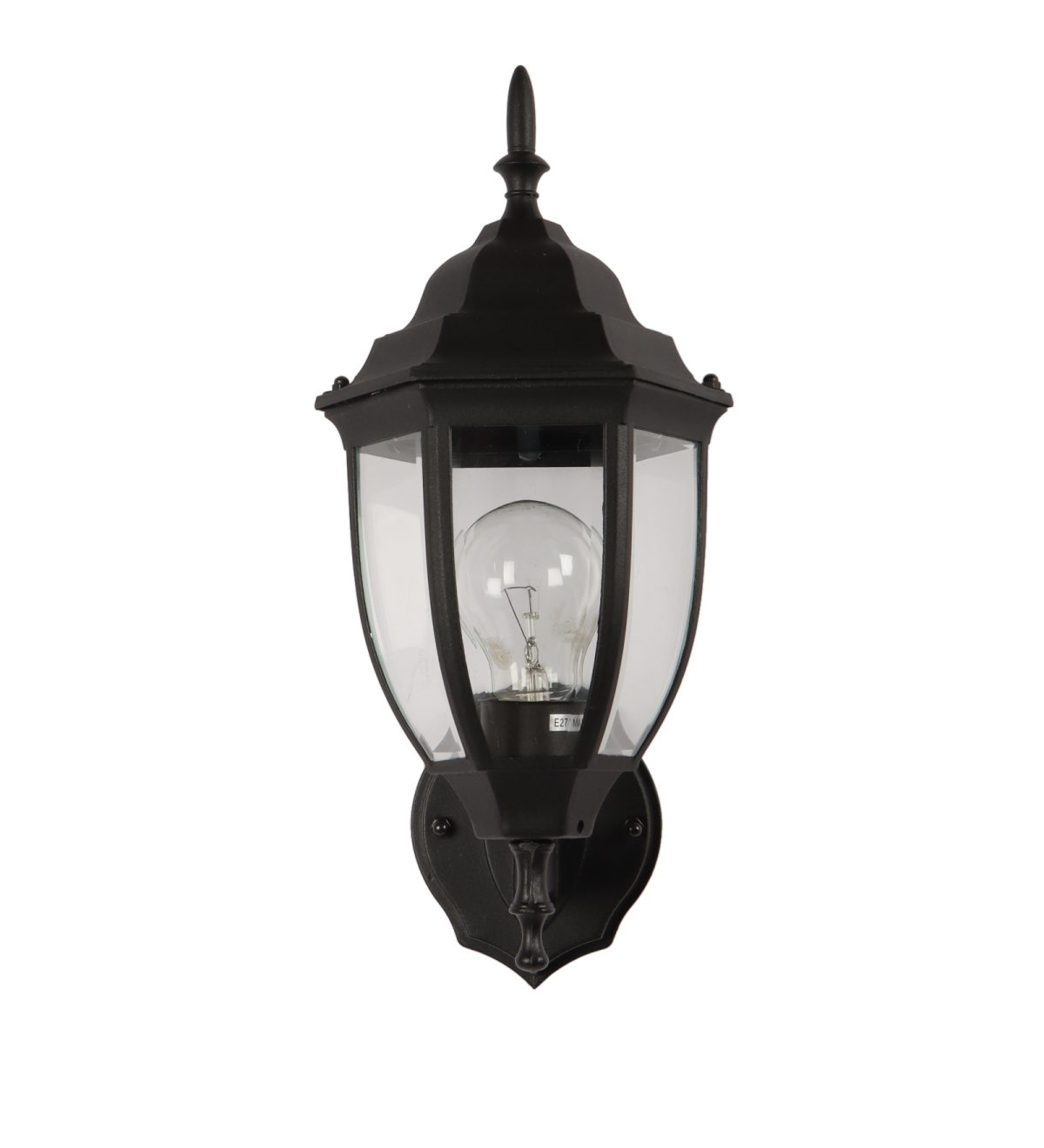 Vertical, aluminium die cast,traditional outdoor wall light in black finish with clear glass. It is maintenance free, comes with an E27 holder, only the change of lamp is required, which is available locally everywhere You can of course swap out the bulb for one that is dimmable, has a higher light output or a different color temperature. Application areas include Stair case walls, passage to staircase, terrace walls, terrace gardens, outdoor walls, boundary walls, open parking, stilt parking, basement parking, balcony , can also be installed inside, also suits theme restaurants and bars. Can be used indoors if goes with the colour theme. LAMP NOT INCLUDED.