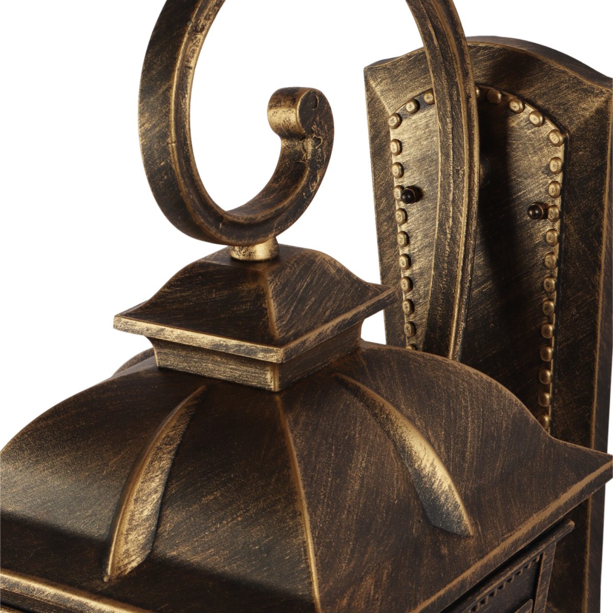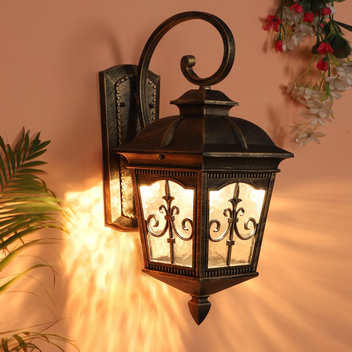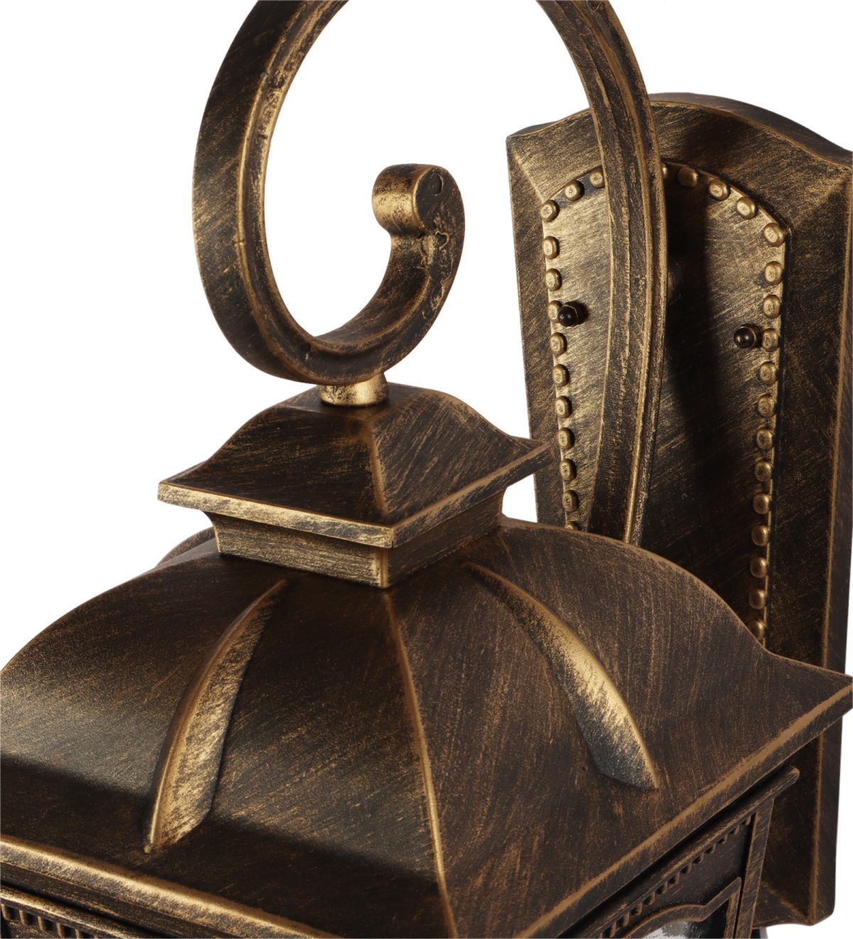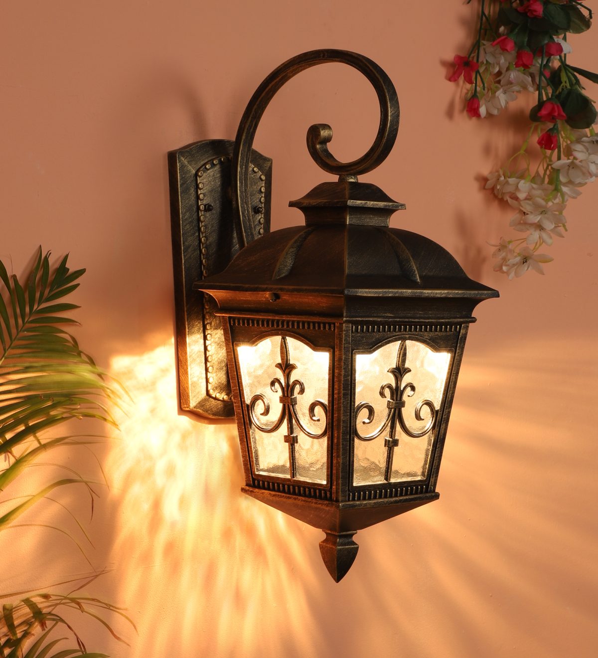 Vertical, heavy, premium, aluminium die cast, export quality traditional down facing outdoor wall light in antique gold finish. It is maintenance free, comes with an E27 holder, only the change of lamp is required, which is available locally everywhere You can of course swap out the bulb for one that is dimmable, has a higher light output or a different color temperature. IP54 rated providing protection from sprayed water in any direction and making this light perfect for use outdoors, Application areas include Stair case walls, passage to staircase, terrace walls, terrace gardens, outdoor walls, boundary walls, open parking, stilt parking, basement parking, balcony , can also be installed indoors, also suits theme restaurants and bars, premium farm houses and party venues. Also availabl in small size with code WL2647. Matching Gate Light code – GL4847-S, GL4847-L. LAMP NOT INCLUDED.