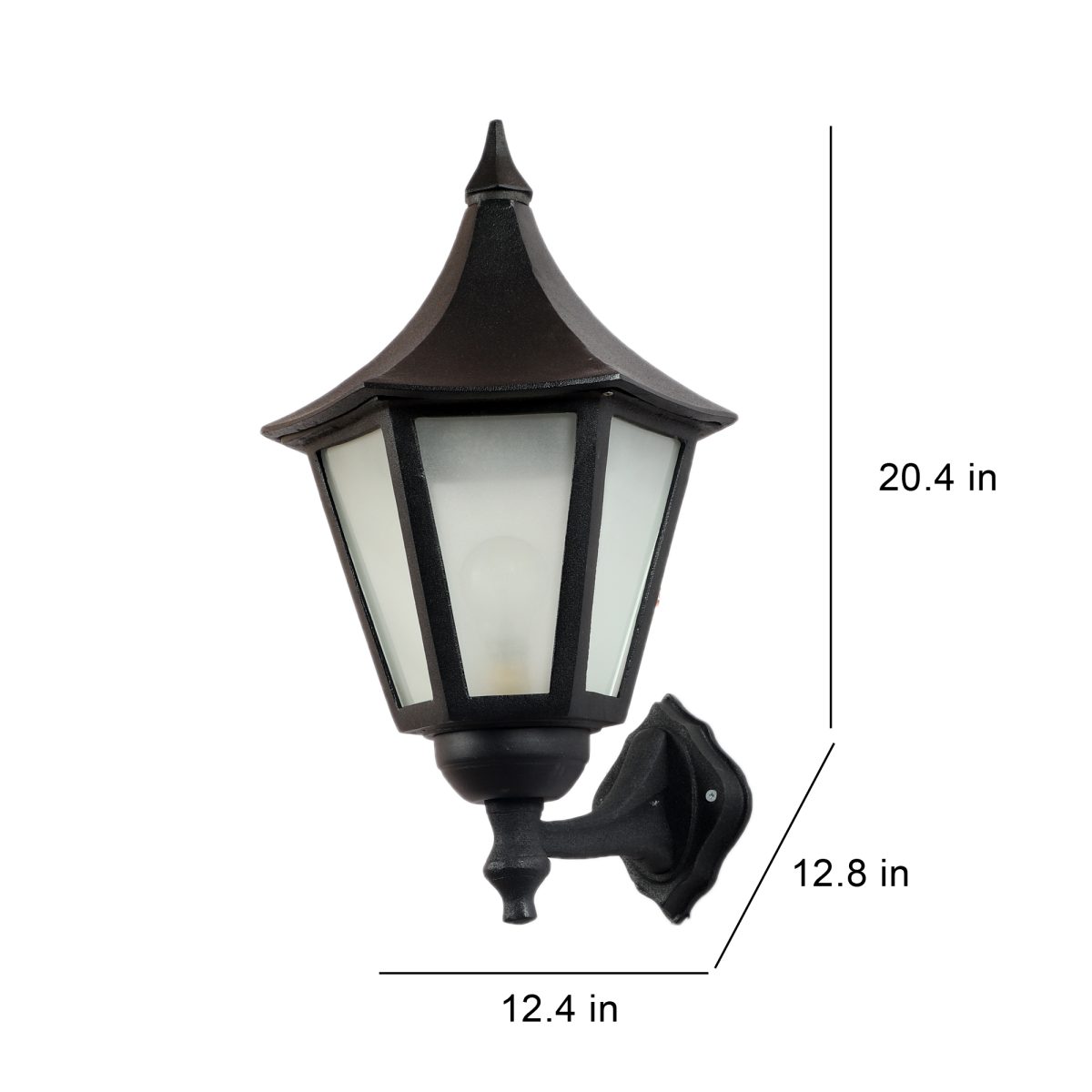 Solid, heavy, aluminium die cast, premium, traditional outdoor wall light is available in black finish. It is maintenance free, comes with an B22 holder, only the change of lamp is required, which is available locally everywhere You can of course swap out the bulb for one that is dimmable, has a higher light output or a different color temperature. IP54 rated providing protection from sprayed water in any direction and making this light perfect for use outdoors. Application areas include Stair case walls, passage to staircase, terrace walls, terrace gardens outdoor walls, boundary walls, open parking, stilt parking, basement parking, balcony, theme restaurants and bars, farm houses and party venue. Can also be installed indoors it goes with the color theme.