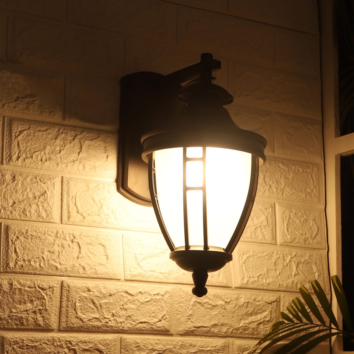 Vertical, heavy, premium, aluminium die cast, traditional down facing outdoor wall light in brown finish. It is maintenance free, comes with an E27 holder, only the change of lamp is required, which is available locally everywhere You can of course swap out the bulb for one that is dimmable, has a higher light output or a different color temperature. IP54 rated providing protection from sprayed water in any direction and making this light perfect for use outdoors, Application areas include Stair case walls, passage to staircase, terrace walls, terrace gardens, outdoor walls, boundary walls, open parking, stilt parking, basement parking, balcony , can also be installed indoors, also suits theme restaurants and bars, premium farm houses and party venues. LAMP NOT INCLIDED.