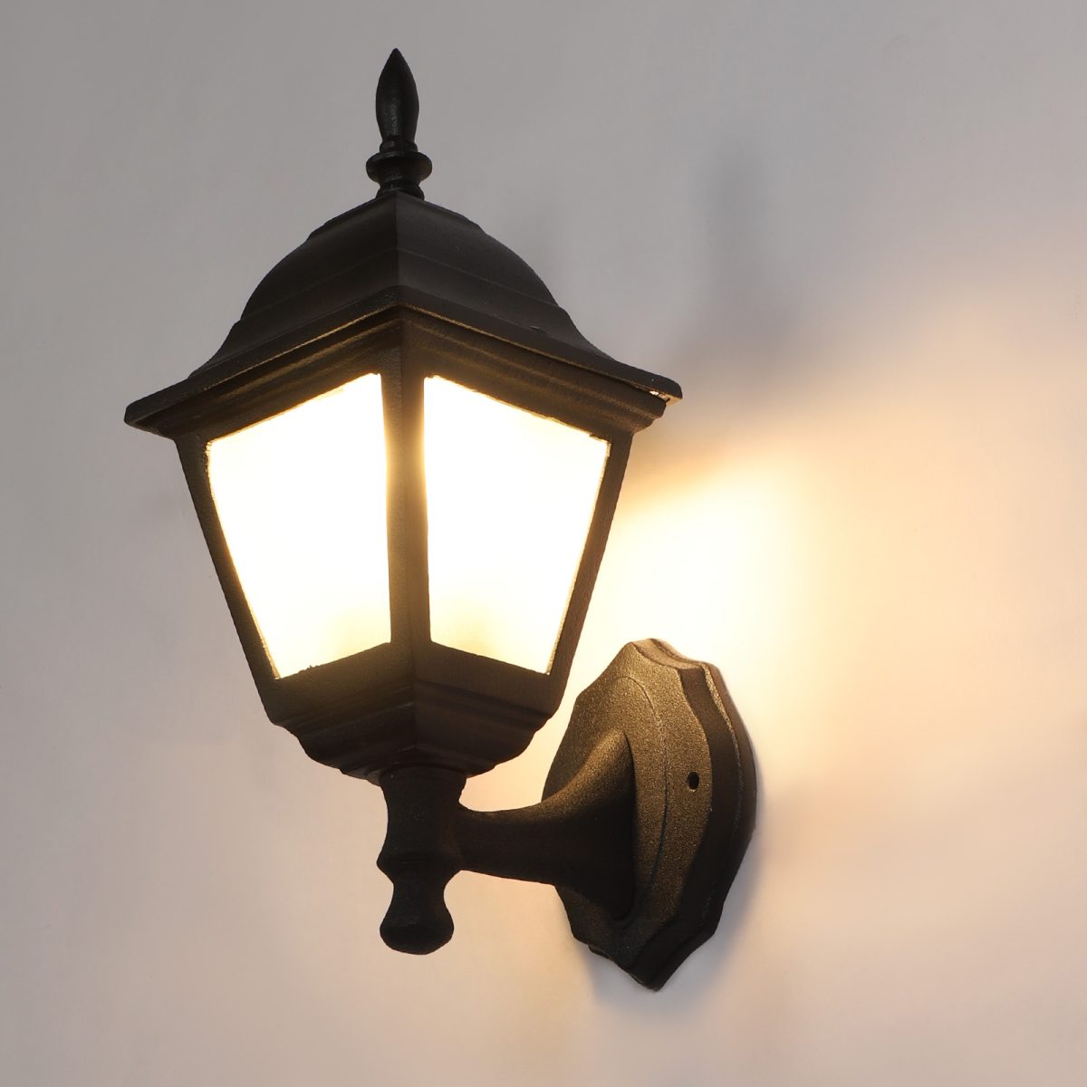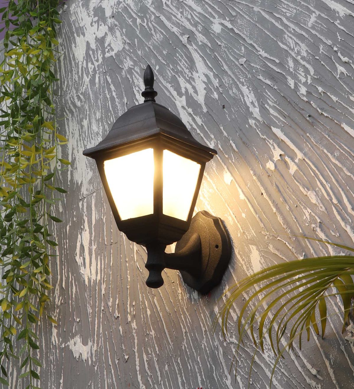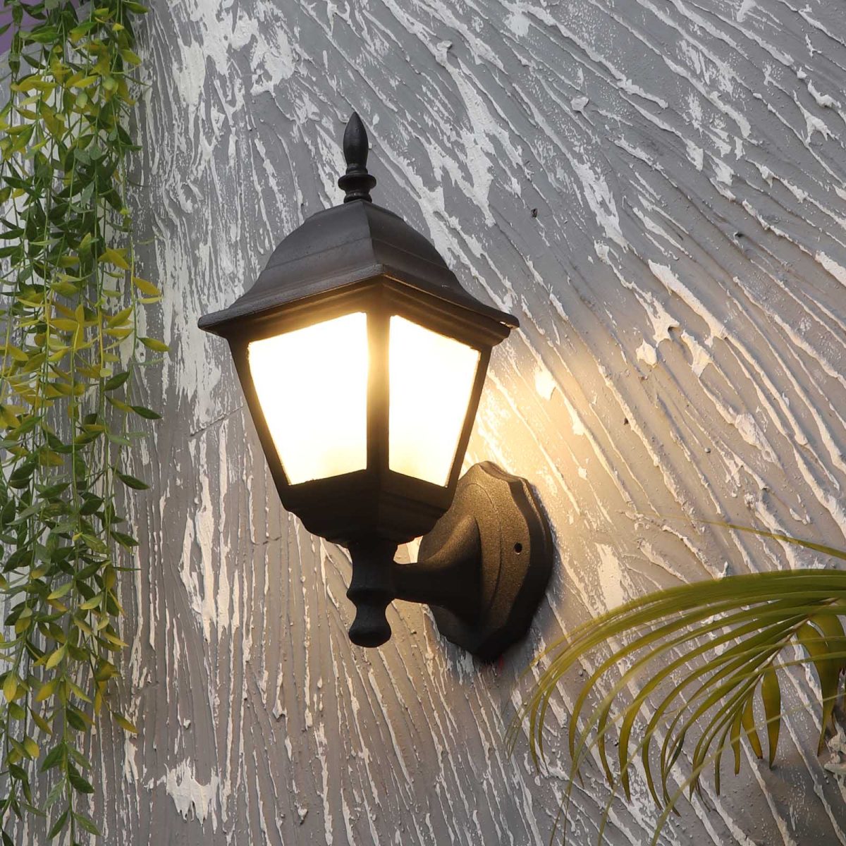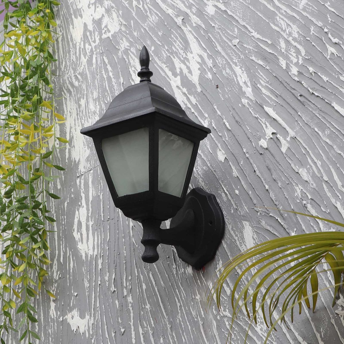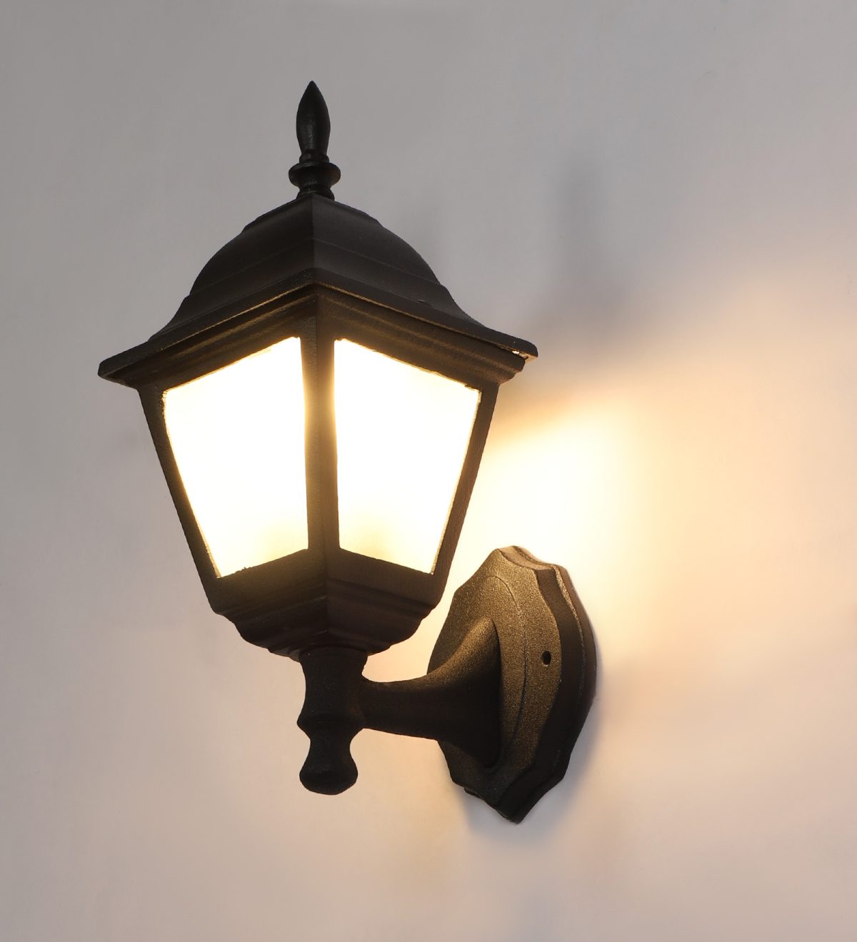 Solid, heavy, aluminium die cast, traditional outdoor wall light is available in black finish. It is maintenance free, comes with an B22 holder, only the change of lamp is required, which is available locally everywhere You can of course swap out the bulb for one that is dimmable, has a higher light output or a different color temperature. IP54 rated providing protection from sprayed water in any direction and making this light perfect for use outdoors. Application areas include Stair case walls, passage to staircase, terrace walls, terrace gardens outdoor walls, boundary walls, open parking, stilt parking, basement parking, balcony, theme restaurants and bars, farm houses and party venue. Can also be installed indoors it goes with the color theme.LAMPS NOT INCLUDED. Please scroll down to see matching products.