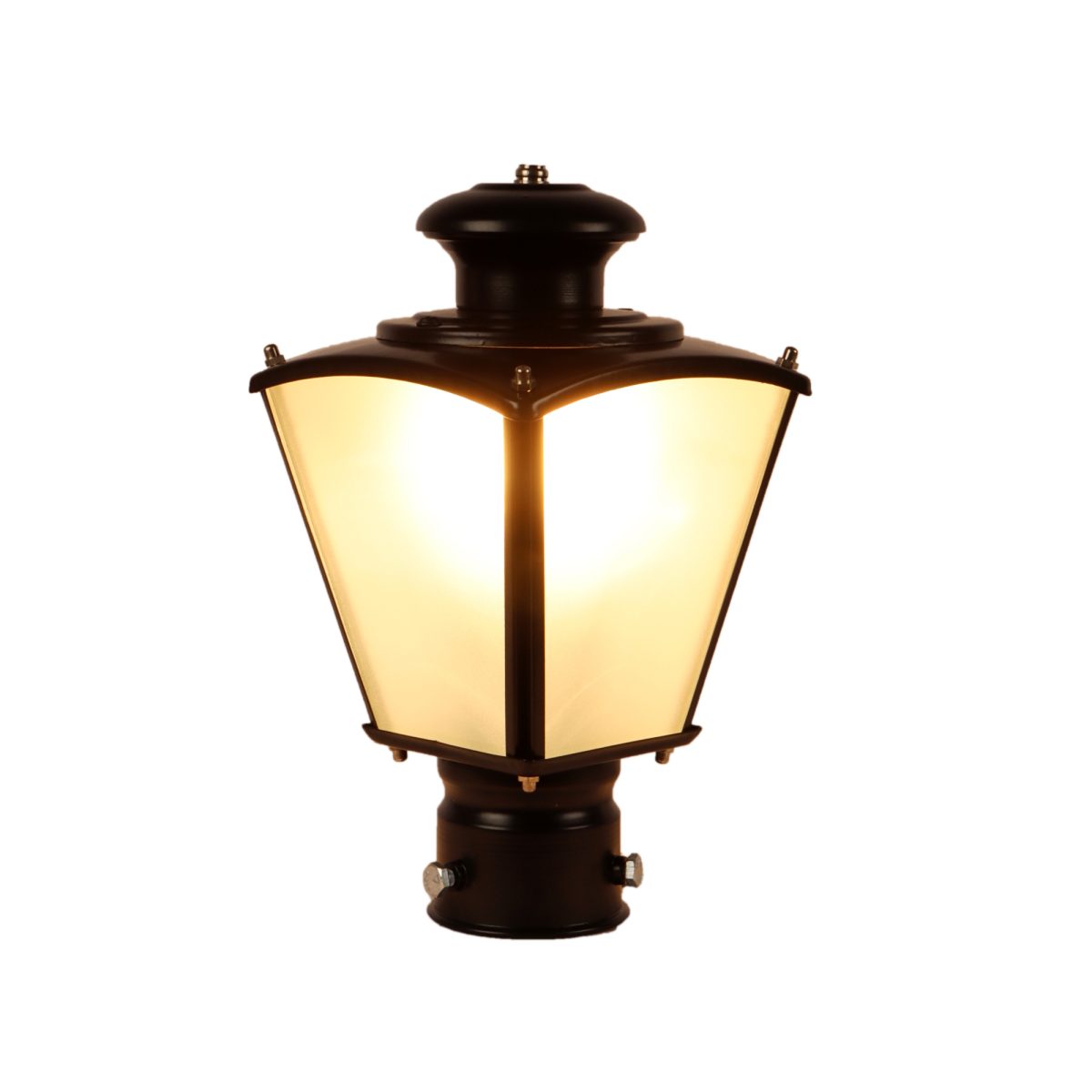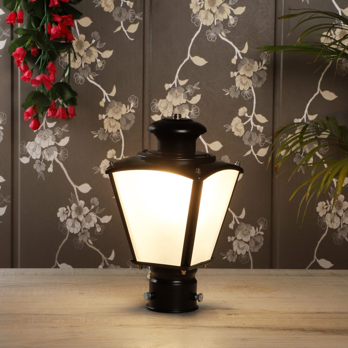 Traditional aluminium sheet, export quality gate pillar post light in black finish. It is maintenance free, comes with an B22 holder, only the change of lamp is required, which is available locally everywhere You can of course swap out the bulb for one that is dimmable, has a higher light output or a different color temperature. IP 54 rated, providing protection from sprayed water in any direction and making this light perfect for use outdoors. Application areas include building entrance, on top of terrace walls, terrace gardens, boundary walls, open parking, stilt parking. Matching wall light – WL1408.