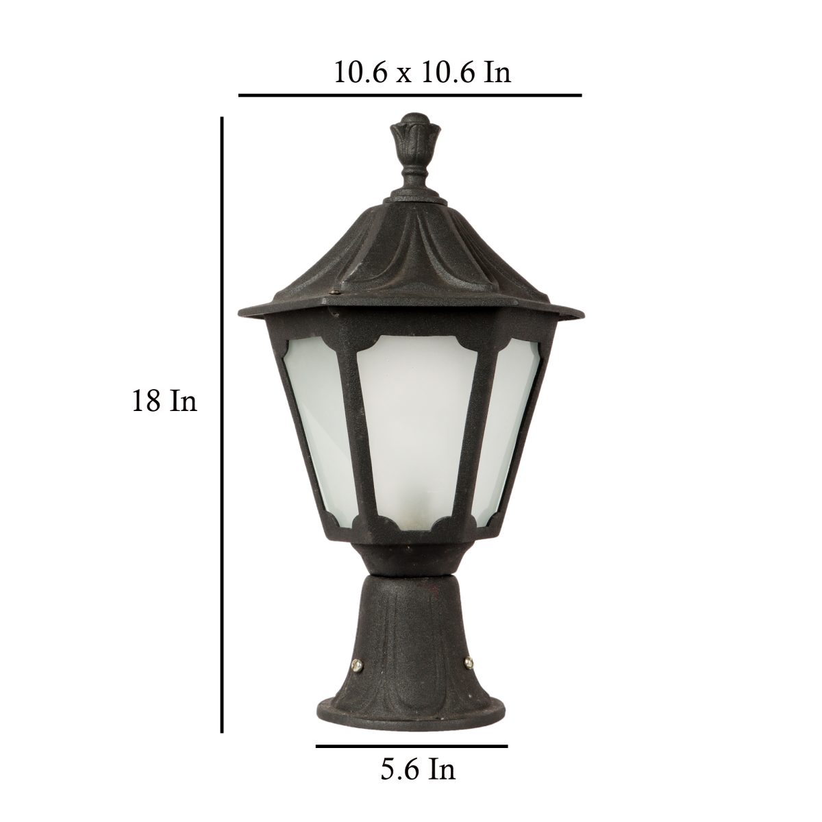 Traditional heavy duty aluminium die cast, gate pillar post light in black finish. It is maintenance free, comes with an B22 holder, only the change of lamp is required, which is available locally everywhere You can of course swap out the bulb for one that is dimmable, has a higher light output or a different color temperature. IP54 rated, providing protection from sprayed water in any direction and making this light perfect for use outdoors. Application areas include building entrance, on top of terrace walls, terrace gardens, boundary walls, open parking, stilt parking. Available in three sizes with code GL4754-S, GL4754-L. Matching wall light – WL1970, WL1971.