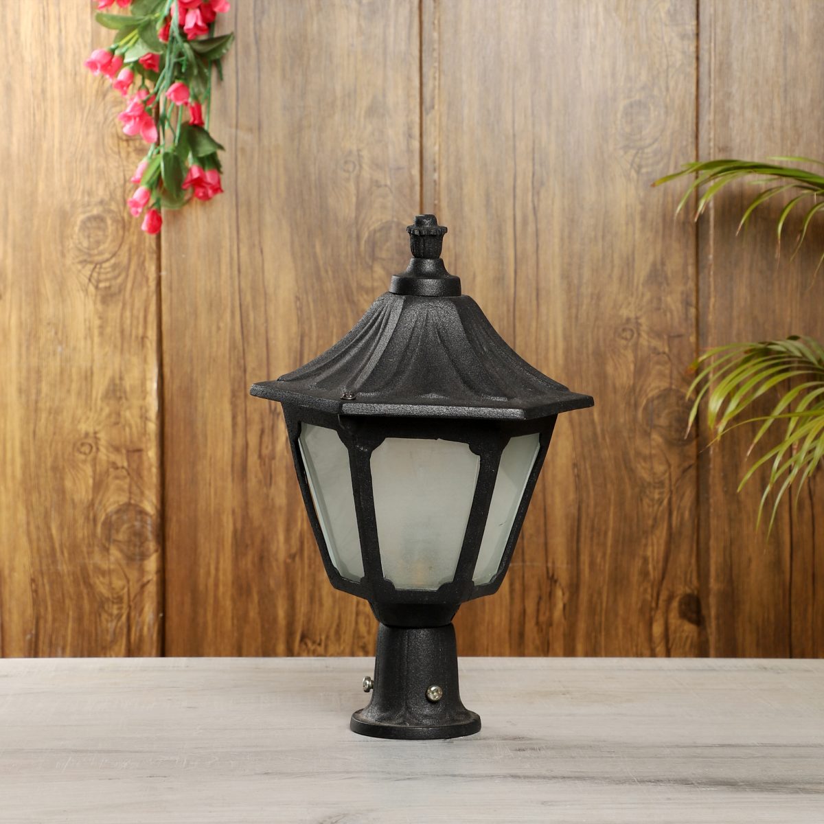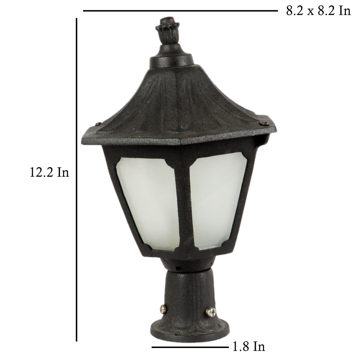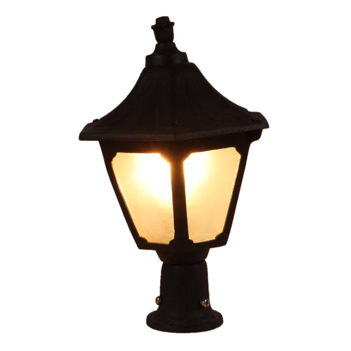Traditional heavy duty aluminium die cast, gate pillar post light in black finish. It is maintenance free, comes with an B22 holder, only the change of lamp is required, which is available locally everywhere You can of course swap out the bulb for one that is dimmable, has a higher light output or a different color temperature. IP54 rated, providing protection from sprayed water in any direction and making this light perfect for use outdoors. Application areas include building entrance, on top of terrace walls, terrace gardens, boundary walls, open parking, stilt parking. Available in three sizes with code GL4754-M, GL4754-L. Matching wall light – WL1970, WL1971.