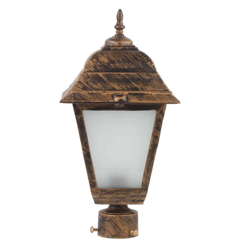 Traditional heavy duty aluminium die cast, premium one of top selling export quality gate pillar post light in antique gold finish. It is maintenance free, comes with an B22 holder, only the change of lamp is required, which is available locally everywhere You can of course swap out the bulb for one that is dimmable, has a higher light output or a different color temperature. IP54 rated, providing protection from sprayed water in any direction and making this light perfect for use outdoors. Application areas include building entrance, on top of terrace walls, terrace gardens, boundary walls, open parking, stilt parking. It is available in black finish also.