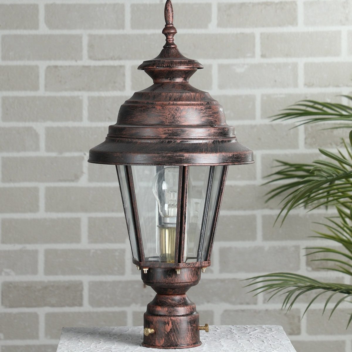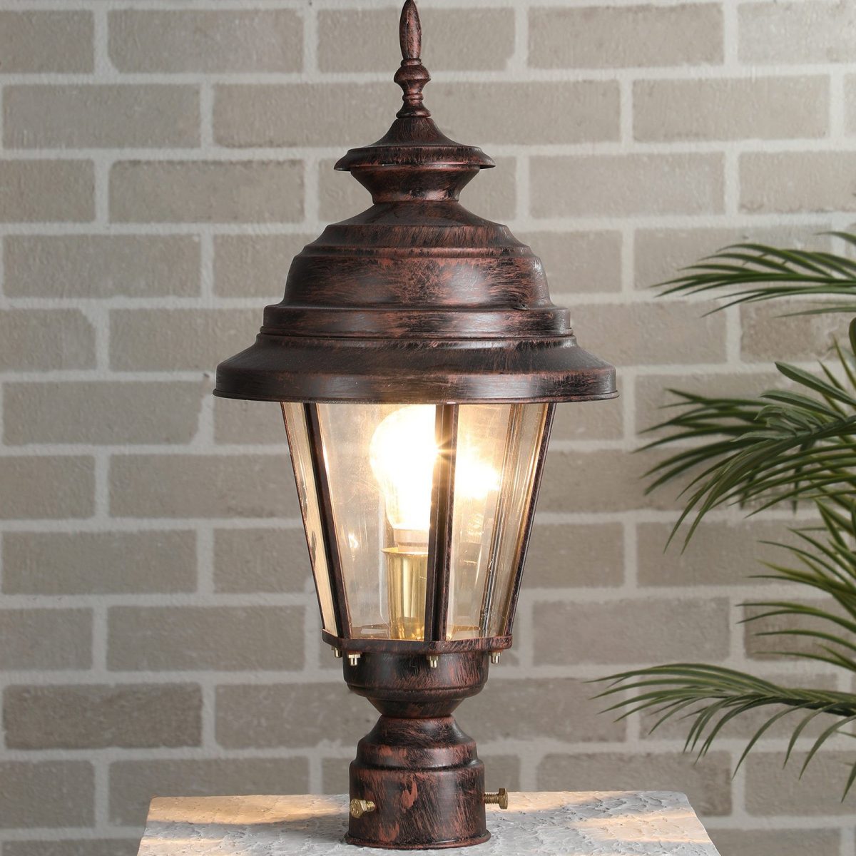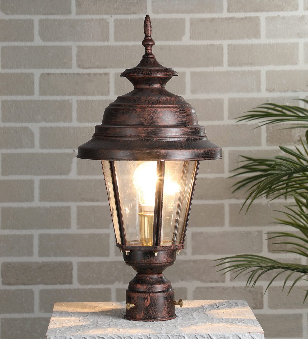 Traditional aluminium sheet, export quality gate pillar post light in attractive copper finish. It is maintenance free, comes with an B22 holder, only the change of lamp is required, which is available locally everywhere You can of course swap out the bulb for one that is dimmable, has a higher light output or a different color temperature. IP 54 rated, providing protection from sprayed water in any direction and making this light perfect for use outdoors. Application areas include building entrance, on top of terrace walls, terrace gardens, boundary walls, open parking, stilt parking. Available in two sizes with code of smaller size as GL4761.