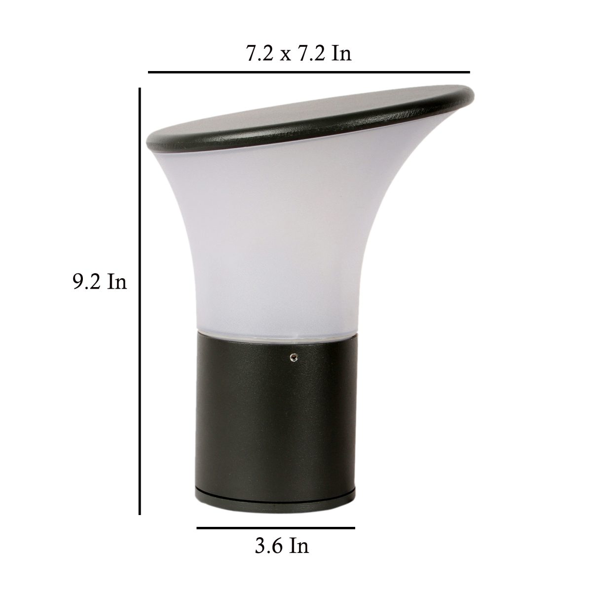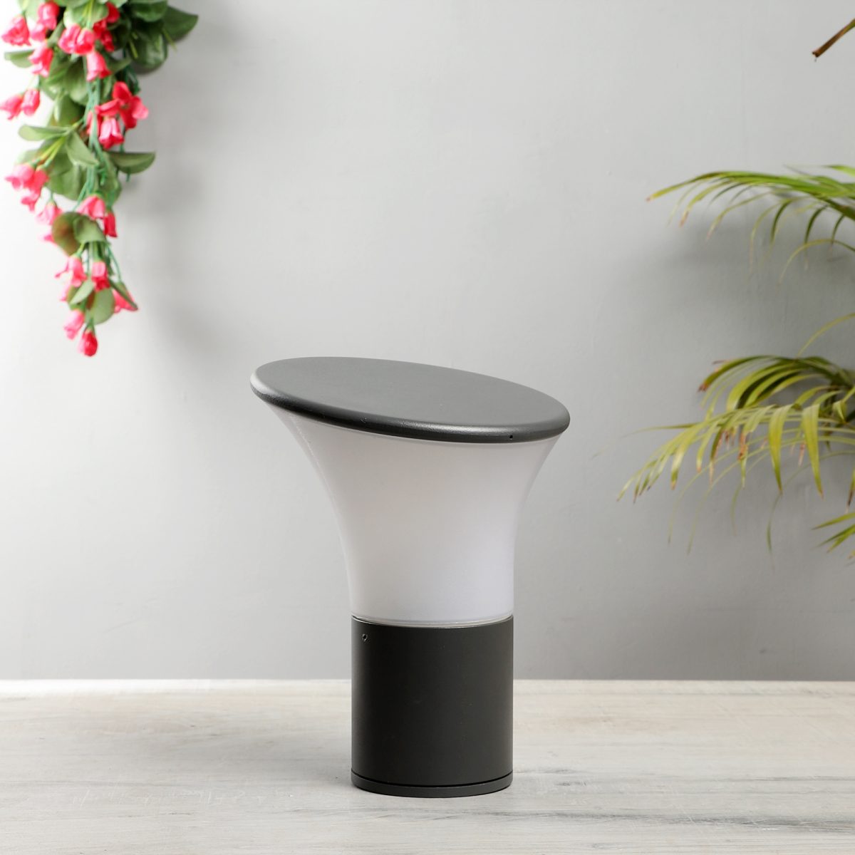 Modern aluminium die cast, one of top selling export quality mushroom shaped gate pillar post light in grey finish. It is maintenance free, comes with an E27 holder, only the change of lamp is required, which is available locally everywhere You can of course swap out the bulb for one that is dimmable, has a higher light output or a different color temperature. High quality acrylic is used to withstand tough weather conditions. IP 54 rated, providing protection from sprayed water in any direction and making this light perfect for use outdoors. Application areas include building entrance, on top of terrace walls, terrace gardens, boundary walls, open parking, stilt parking. Matching wall light code – WL1332. Matching bollard code – K1034-M, W1034-L.