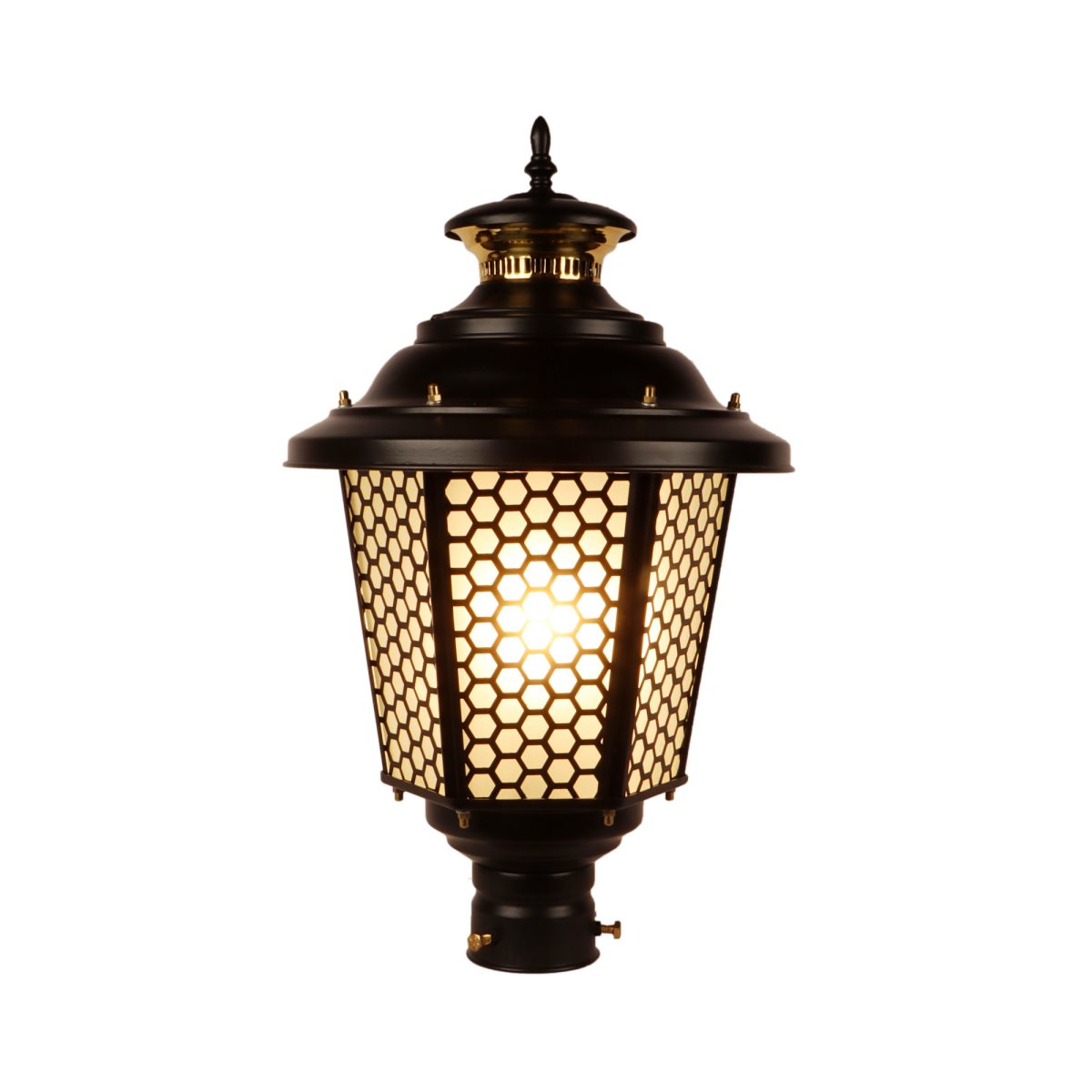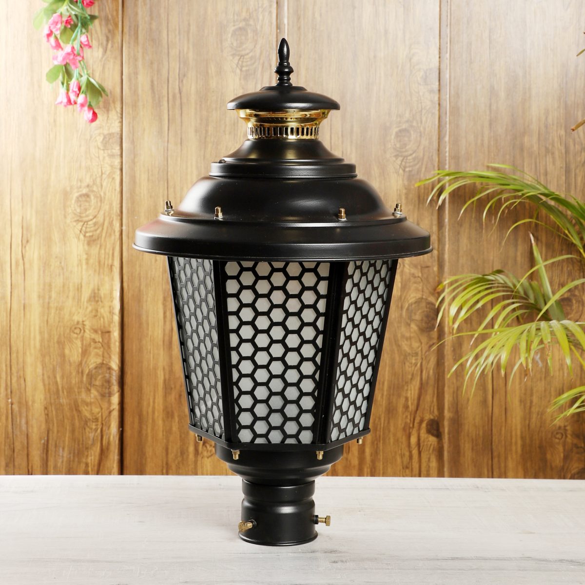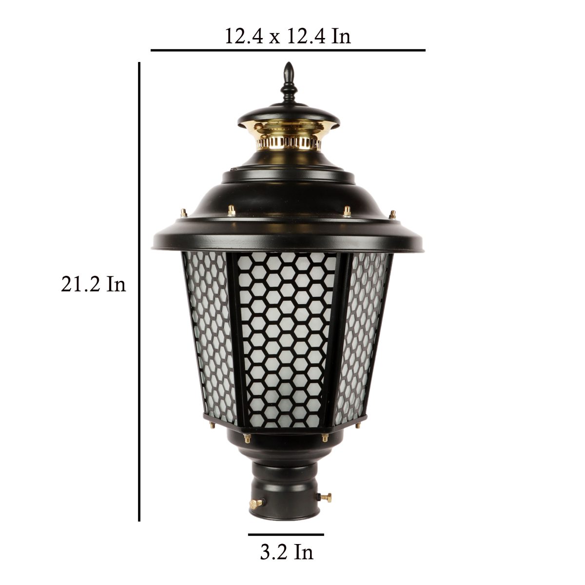 Traditional aluminium sheet, export quality gate pillar post light in black finish. It is maintenance free, comes with an B22 holder, only the change of lamp is required, which is available locally everywhere You can of course swap out the bulb for one that is dimmable, has a higher light output or a different color temperature. IP 54 rated, providing protection from sprayed water in any direction and making this light perfect for use outdoors. Application areas include building entrance, on top of terrace walls, terrace gardens, boundary walls, open parking, stilt parking.