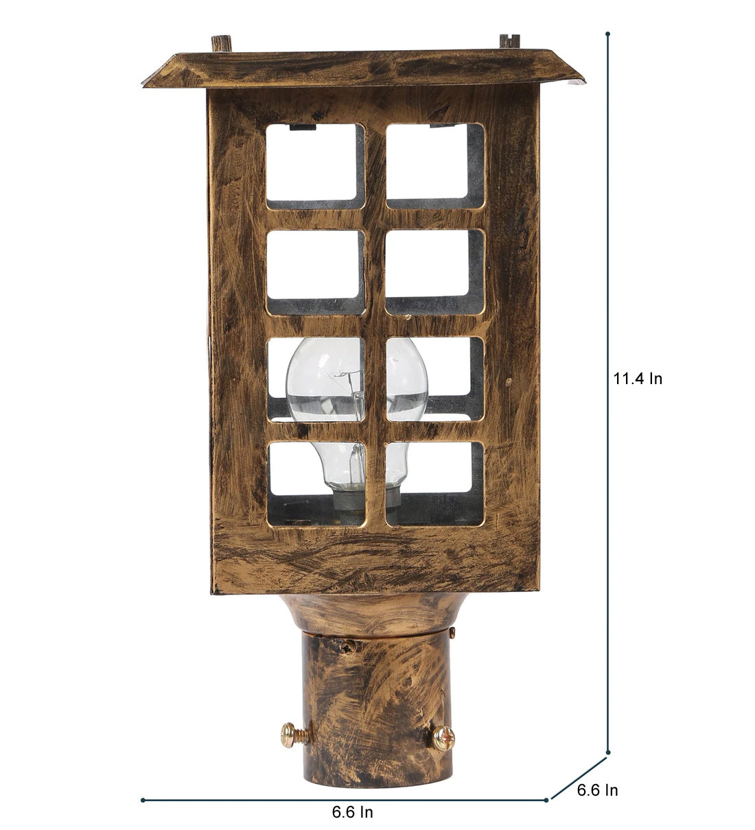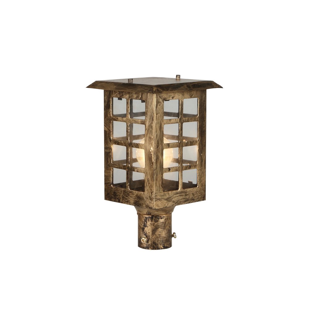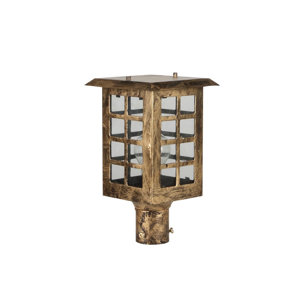 Traditional, mild steel economic gate pillar post light in antique gold finish. It is maintenance free, comes with an B22 holder, only the change of lamp is required, which is available locally everywhere You can of course swap out the bulb for one that is dimmable, has a higher light output or a different color temperature. IP 54 rated, providing protection from sprayed water in any direction and making this light perfect for use outdoors. Application areas include building entrance, on top of terrace walls, terrace gardens, boundary walls, open parking, stilt parking. Matching Hanging – HL4151.