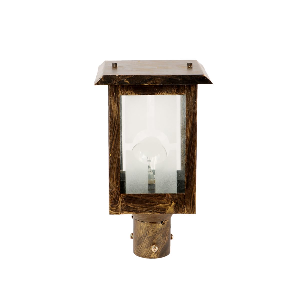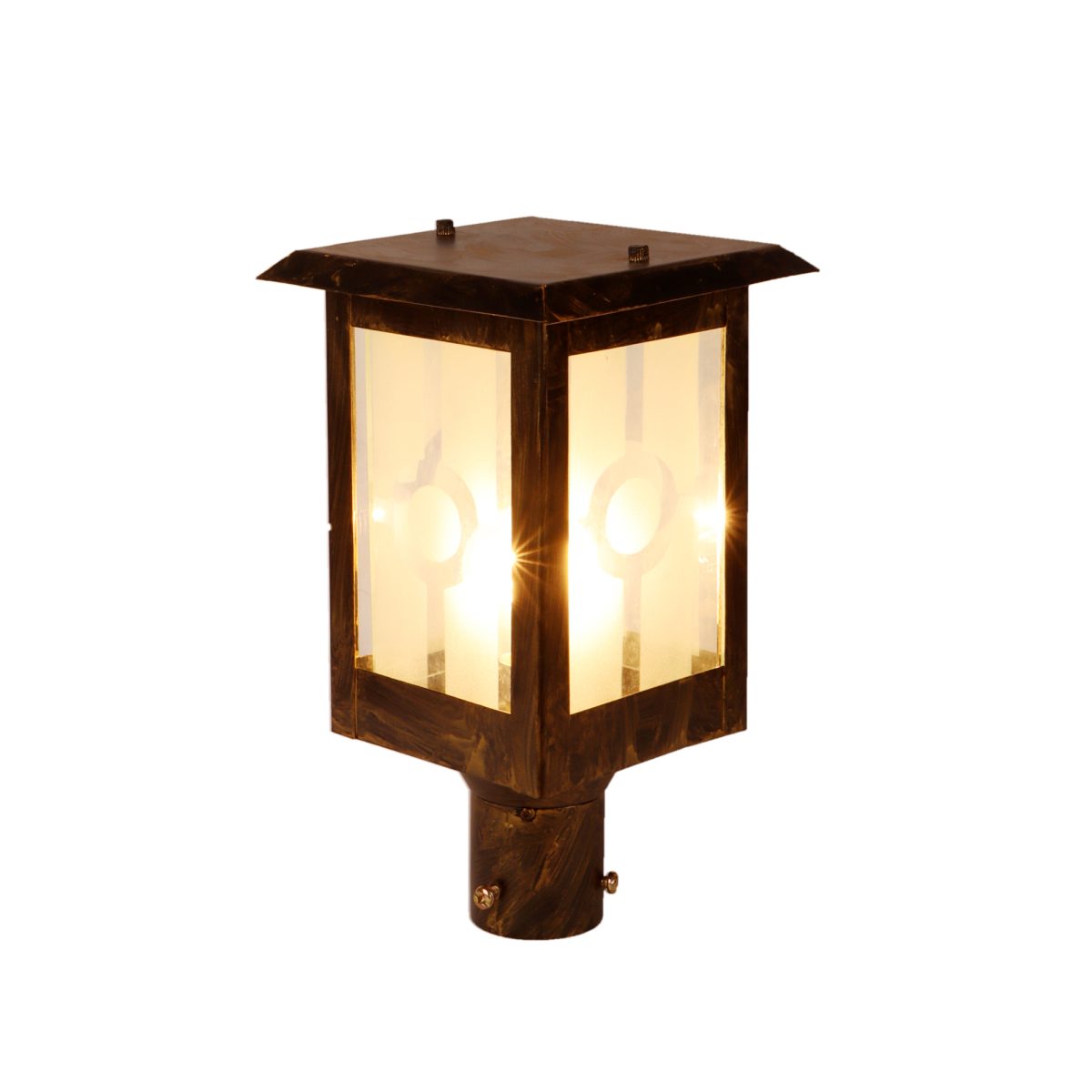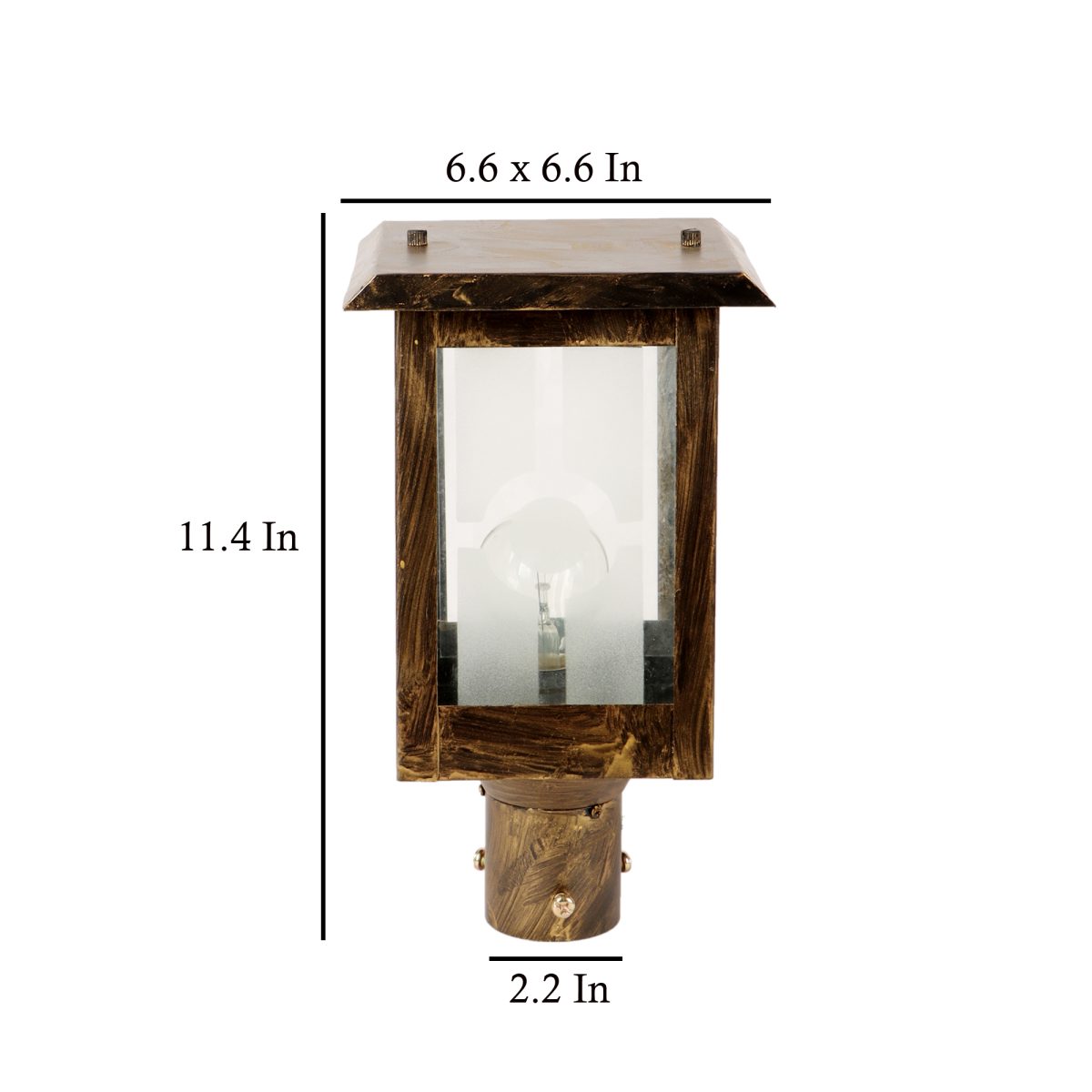 Traditional, mild steel economic gate pillar post light in antique gold finish. It is maintenance free, comes with an B22 holder, only the change of lamp is required, which is available locally everywhere You can of course swap out the bulb for one that is dimmable, has a higher light output or a different color temperature.IP 54 rated, providing protection from sprayed water in any direction and making this light perfect for use outdoors. Application areas include building entrance, on top of terrace walls, terrace gardens, boundary walls, open parking, stilt parking.