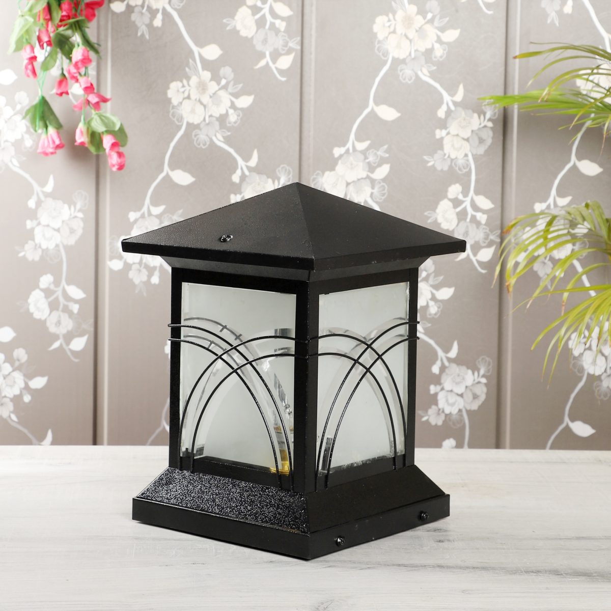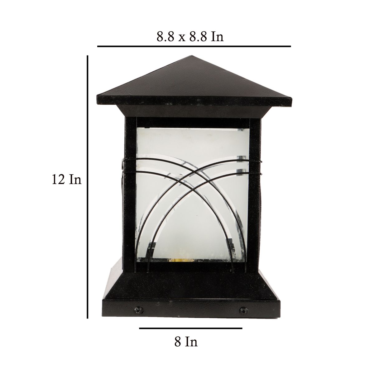 Traditional, mild steel economic gate pillar post light in black finish. It is maintenance free, comes with an B22 holder, only the change of lamp is required, which is available locally everywhere You can of course swap out the bulb for one that is dimmable, has a higher light output or a different color temperature. IP 54 rated, providing protection from sprayed water in any direction and making this light perfect for use outdoors. Application areas include building entrance, on top of terrace walls, terrace gardens, boundary walls, open parking, stilt parking. Available in two sizes. Big size gate light code – GL4804-S.