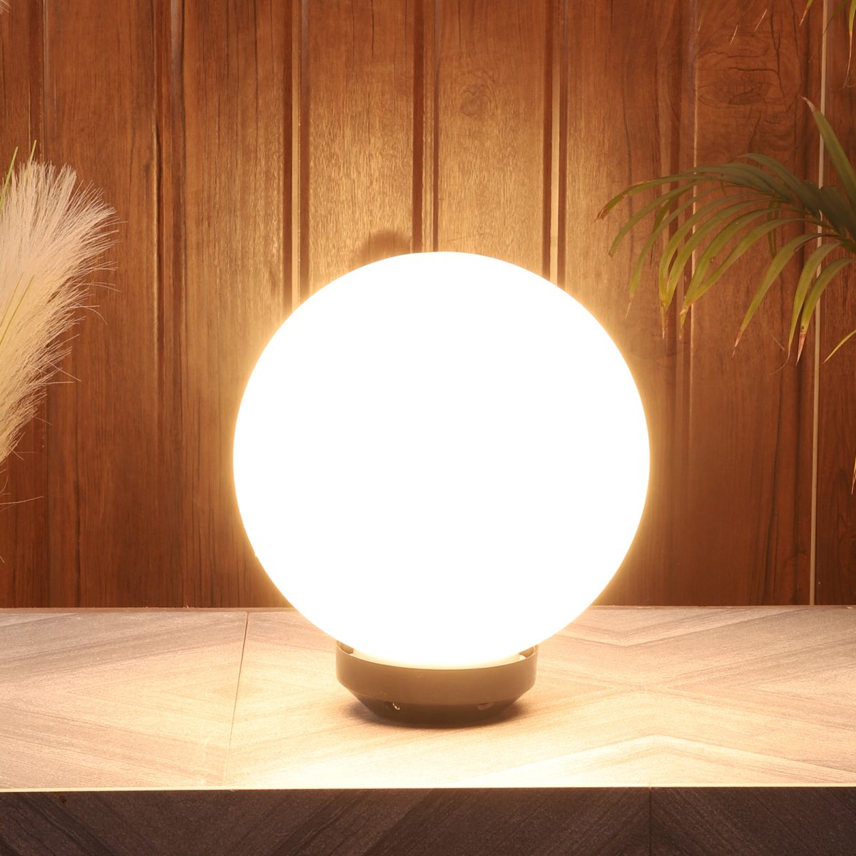 It is an eight inch high quality polycarbonate doom with a pvc base having long life , capable of withstanding tough weather conditions. It is maintenance free, comes with an B22 holder, only the change of lamp is required, which is available locally everywhere You can of course swap out the bulb for one that is dimmable, has a higher light output or a different color temperature. IP54 rated, providing protection from sprayed water in any direction and making this light perfect for use outdoors. Application areas include building entrance, on top of terrace walls, terrace gardens, boundary walls, open parking, stilt parking. Also available in various sizes with codes GL4825-S, GL4825-L, GL4825-XL. Can be installed on a two inch pipe for using it as a bollard or pillar light.
