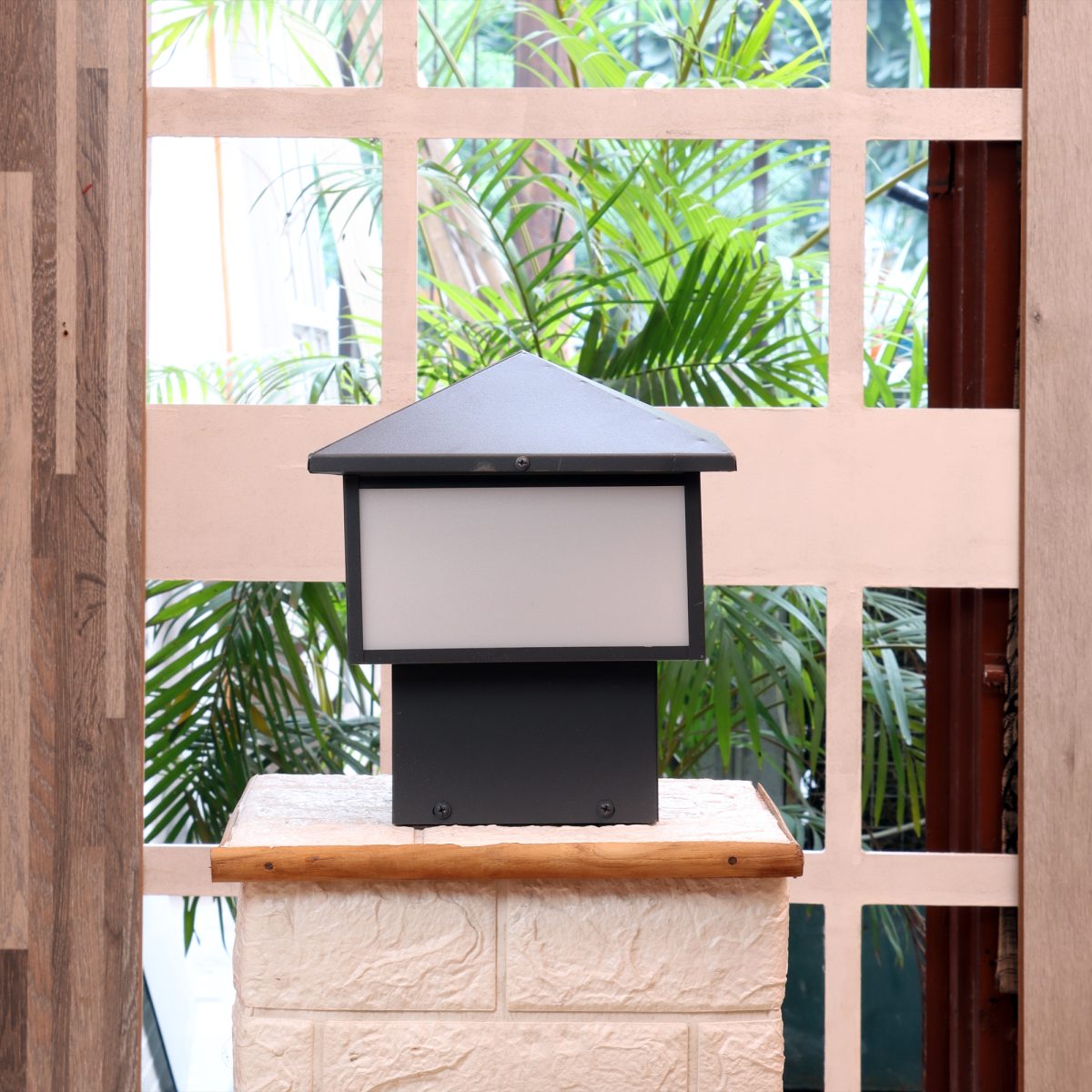 Modern mild steel, gate pillar post light in grey finish. It is maintenance free, comes with an E27 holder, only the change of lamp is required, which is available locally everywhere You can of course swap out the bulb for one that is dimmable, has a higher light output or a different color temperature. High quality acrylic is used to withstand tough weather conditions. IP54 rated, providing protection from sprayed water in any direction and making this light perfect for use outdoors. Application areas include building entrance, on top of terrace walls, terrace gardens, boundary walls, open parking, stilt parking. LAMP NOT INCLUDED.