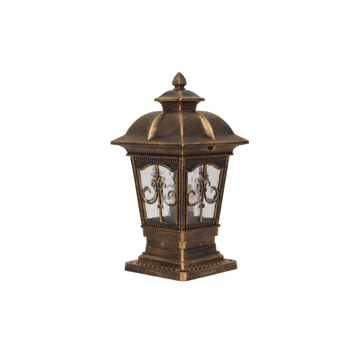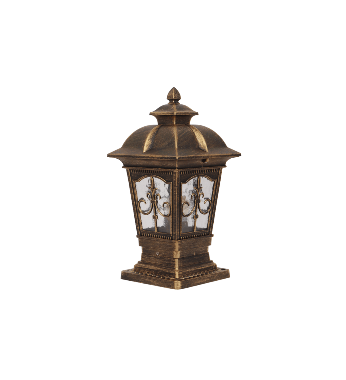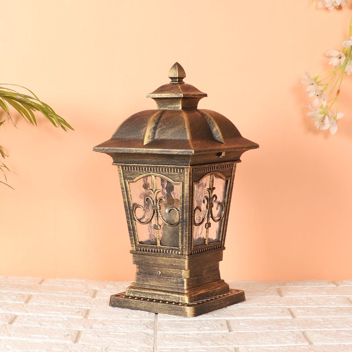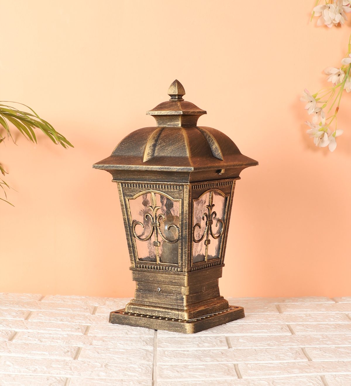 Traditional aluminium die cast, premium one of top selling gate pillar post light in antique brown finish. It is maintenance free, comes with an E27 holder, only the change of lamp is required, which is available locally everywhere You can of course swap out the bulb for one that is dimmable, has a higher light output or a different color temperature. IP54 rated, providing protection from sprayed water in any direction and making this light perfect for use outdoors. Application areas include building entrance, on top of terrace walls, terrace gardens, boundary walls, open parking, stilt parking. Also available in big size with code GL4847-L. Matching wall light – WL2647, WL2648. LAMP NOT INCLUDED.