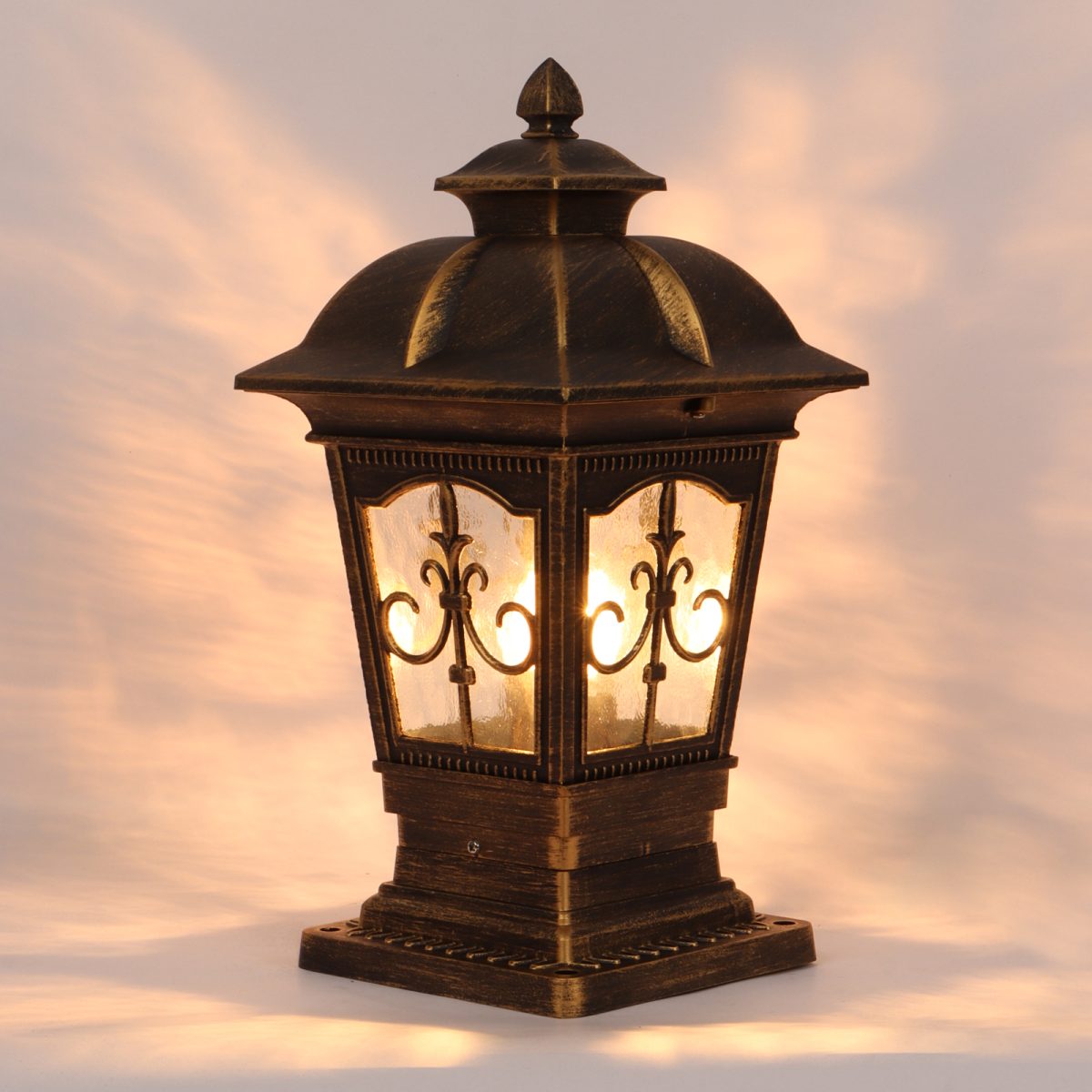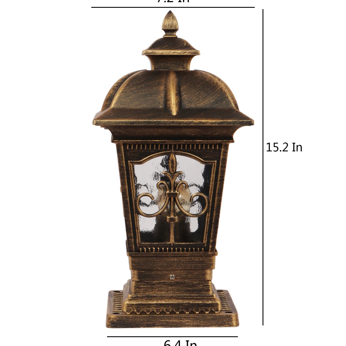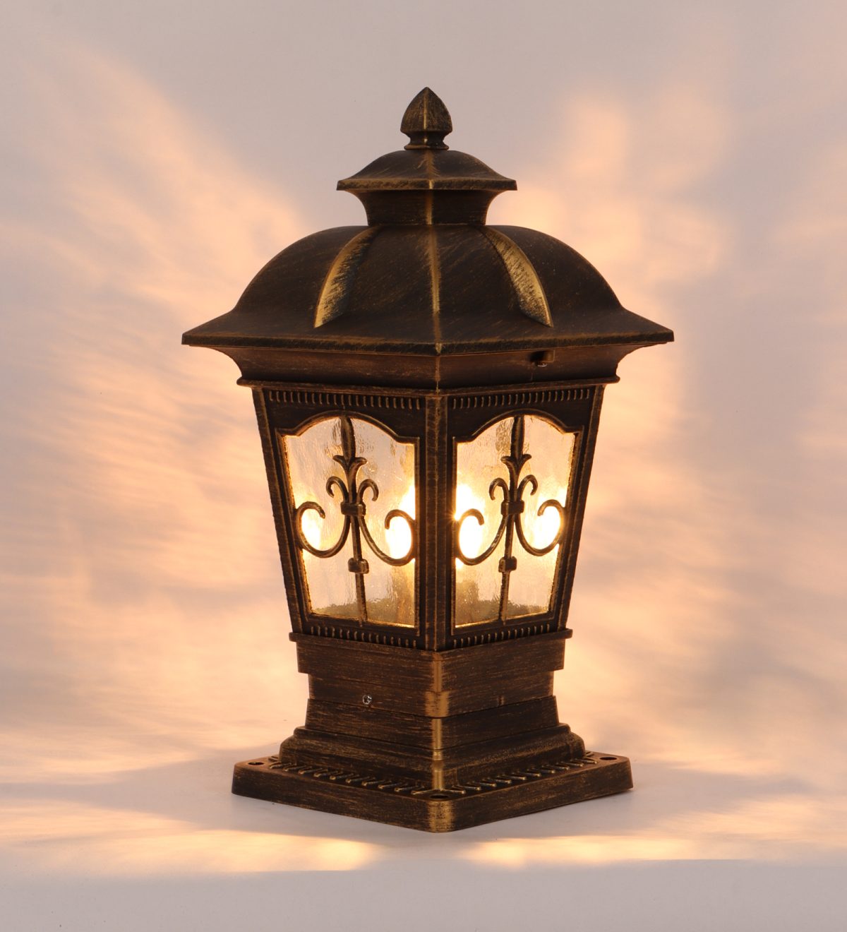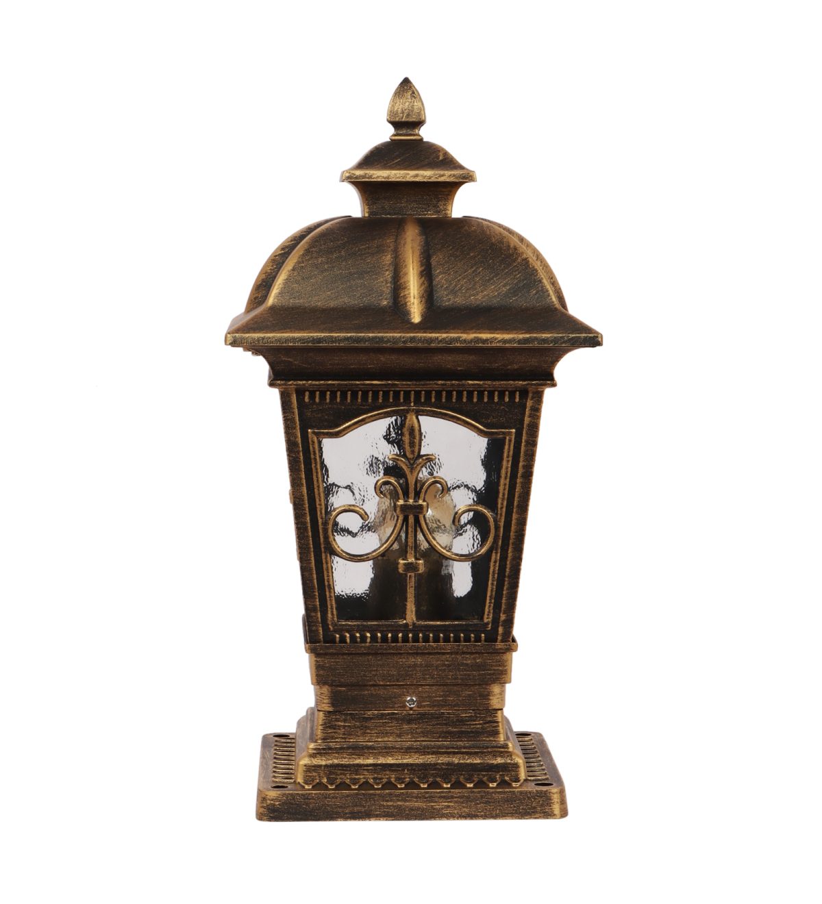 Traditional aluminium die cast, premium one of top selling gate pillar post light in antique brown finish. It is maintenance free, comes with an E27 holder, only the change of lamp is required, which is available locally everywhere You can of course swap out the bulb for one that is dimmable, has a higher light output or a different color temperature. IP54 rated, providing protection from sprayed water in any direction and making this light perfect for use outdoors. Application areas include building entrance, on top of terrace walls, terrace gardens, boundary walls, open parking, stilt parking. Also available in big size with code GL4847-L. Matching wall light – WL2647, WL2648. LAMP NOT INCLUDED.