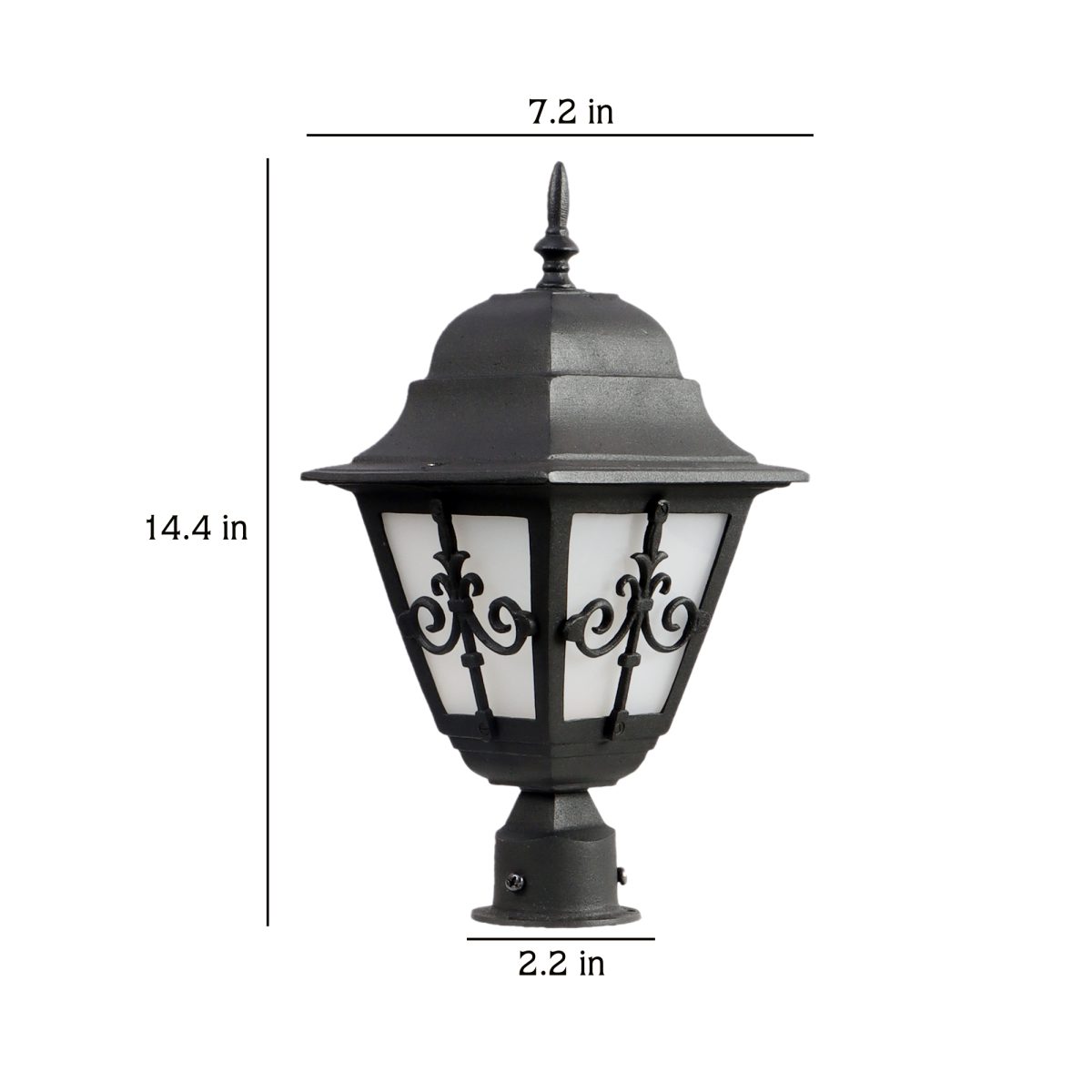 Traditional aluminium die cast, gate pillar post light in black finish. It is maintenance free, comes with an B22 holder, only the change of lamp is required, which is available locally everywhere You can of course swap out the bulb for one that is dimmable, has a higher light output or a different color temperature. IP54 rated, providing protection from sprayed water in any direction and making this light perfect for use outdoors. Application areas include building entrance, on top of terrace walls, terrace gardens, boundary walls, open parking, stilt parking. LAMP NOT INCLUDED. Please scroll down to see matching products.