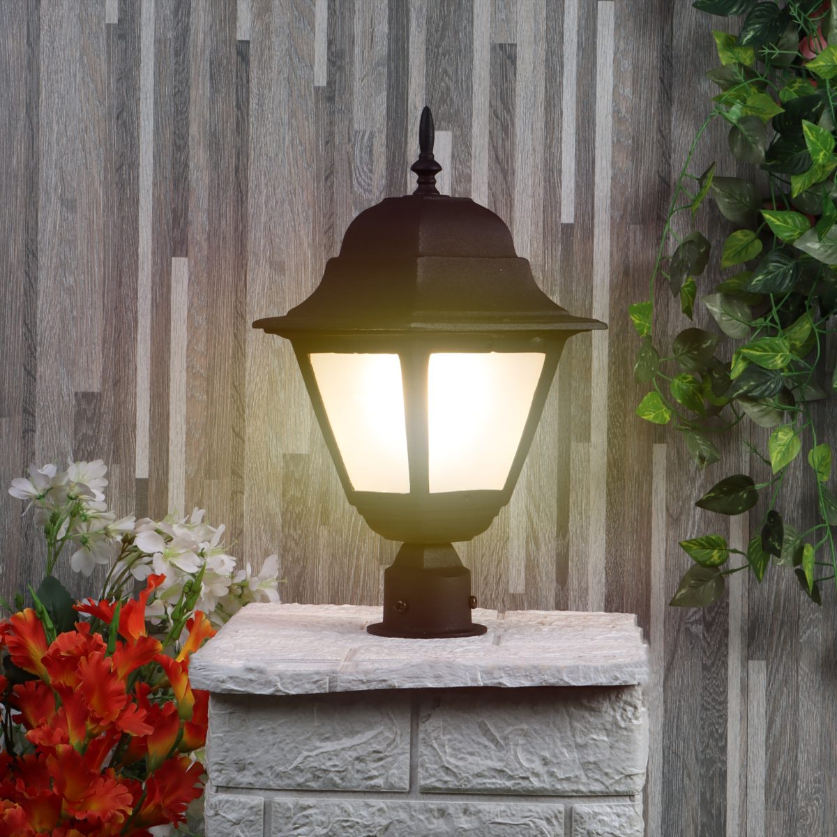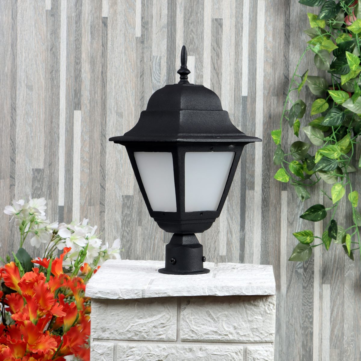Traditional aluminium die cast, gate pillar post light in black finish. It is maintenance free, comes with an B22 holder, only the change of lamp is required, which is available locally everywhere You can of course swap out the bulb for one that is dimmable, has a higher light output or a different color temperature. IP54 rated, providing protection from sprayed water in any direction and making this light perfect for use outdoors. Application areas include building entrance, on top of terrace walls, terrace gardens, boundary walls, open parking, stilt parking. LAMP NOT INCLUDED. Please scroll down to see matching products.