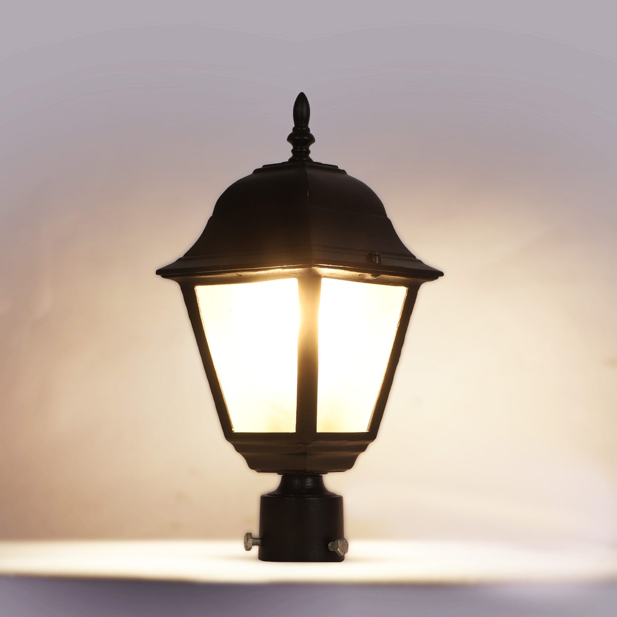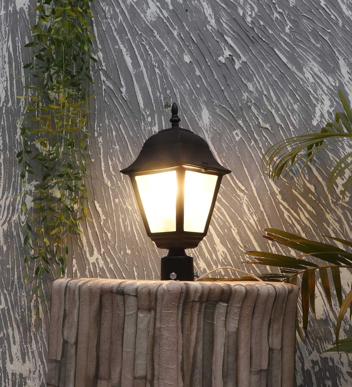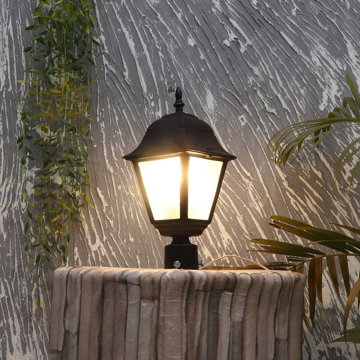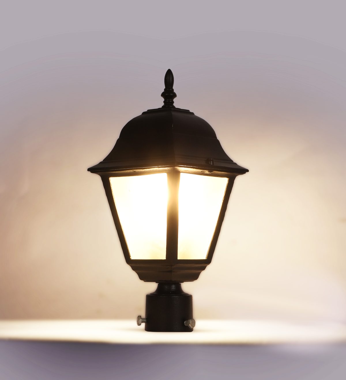 Traditional aluminium die cast, gate pillar post light in black finish. It is maintenance free, comes with an B22 holder, only the change of lamp is required, which is available locally everywhere You can of course swap out the bulb for one that is dimmable, has a higher light output or a different color temperature. IP65 rated, providing protection from sprayed water in any direction and making this light perfect for use outdoors. Application areas include building entrance, on top of terrace walls, terrace gardens, boundary walls, open parking, stilt parking. LAMP NOT INCLUDED. Please scroll down to see matching products.