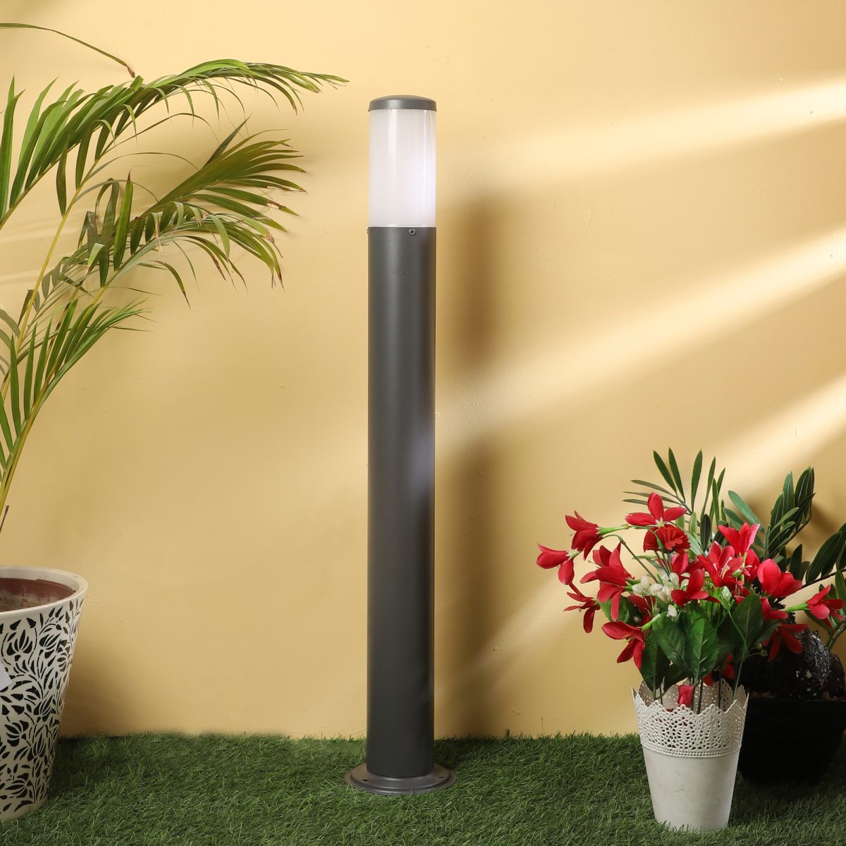 This tall, sleek, economical, slender maintainence free bollard is used to illuminate exterior garden and pathway and lead visitors to your door. This contemporary bollard light is also available in steel finish. It has E27 holder. You can of course swap out the bulb for one that is dimmable, has a higher light output or a different colour temperature.