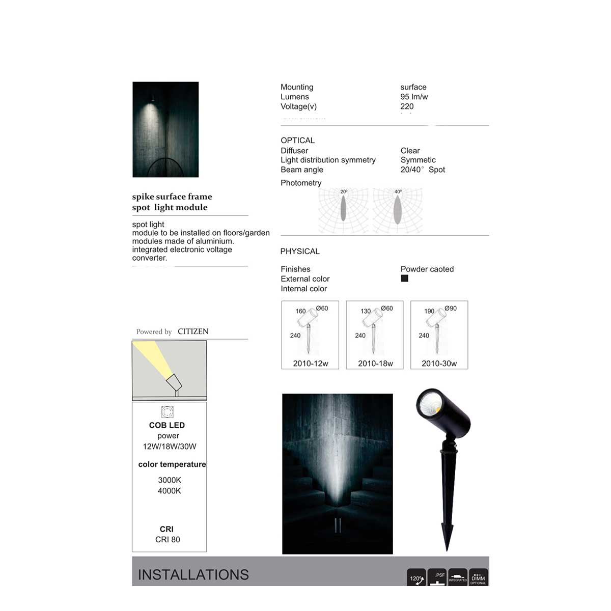 Premium Spike light. Different beam angle option available ie 15, 24 36 and 60 degree. Default is 36 degrees.