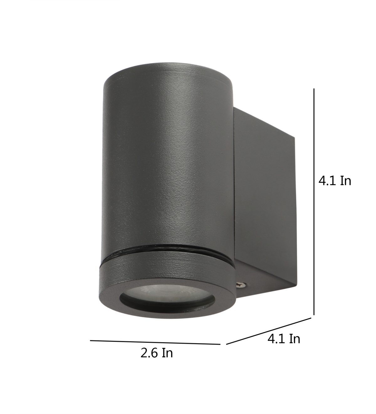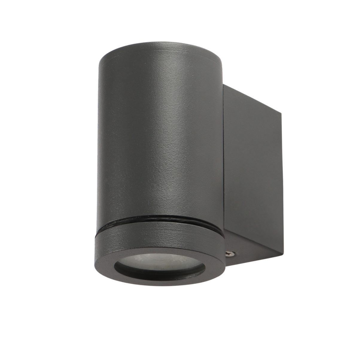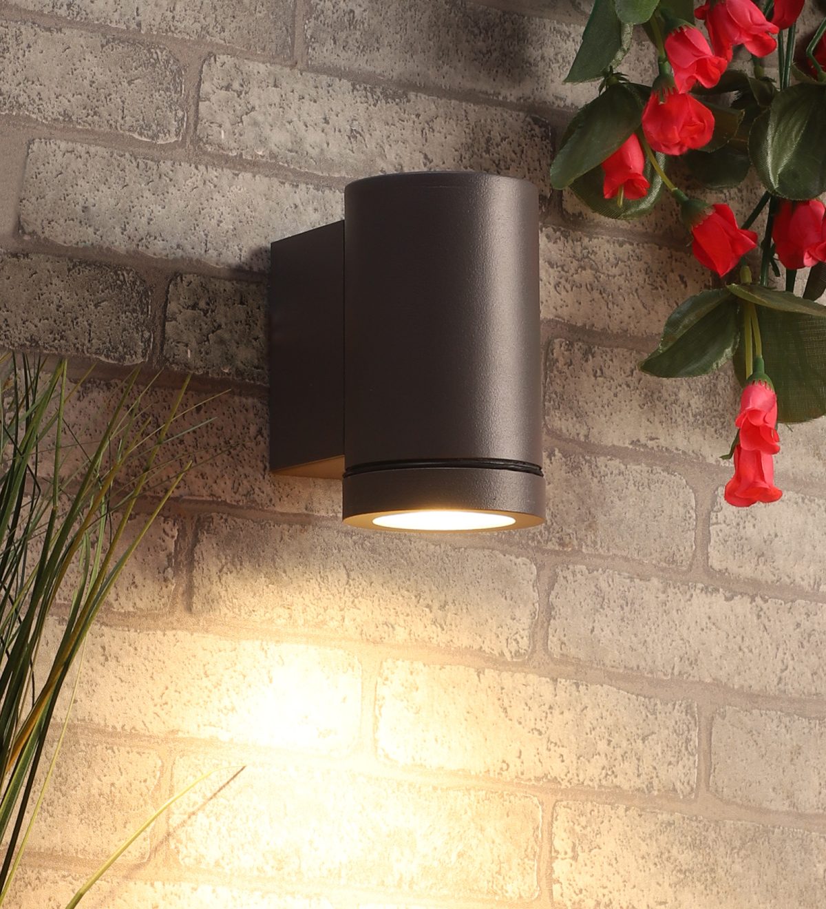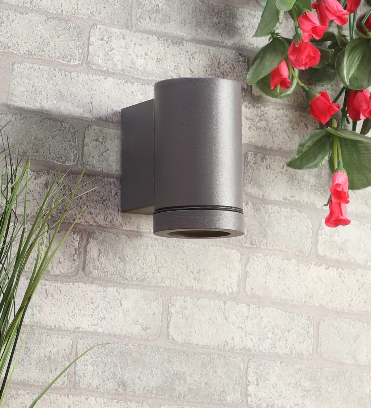 Aluminium die cast one of the top selling export quality cylindrical wall light available in a sophisticated grey finish, perfect to use outdoors. It is maintenance free, only the change of lamp is required which is available locally everywhere. Suitable for use in wet areas like swimming pools and spas. But equally as stunning when installed indoor around the house. Ideal to high light the exterior of your property and placed either side of an entrance for instance. Can be dimmed if used with a dimmable lamp. Rated at IP 54 providing protection from water spray. Lamp not included.