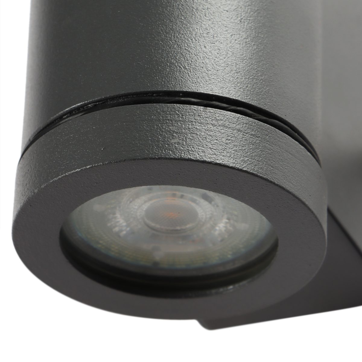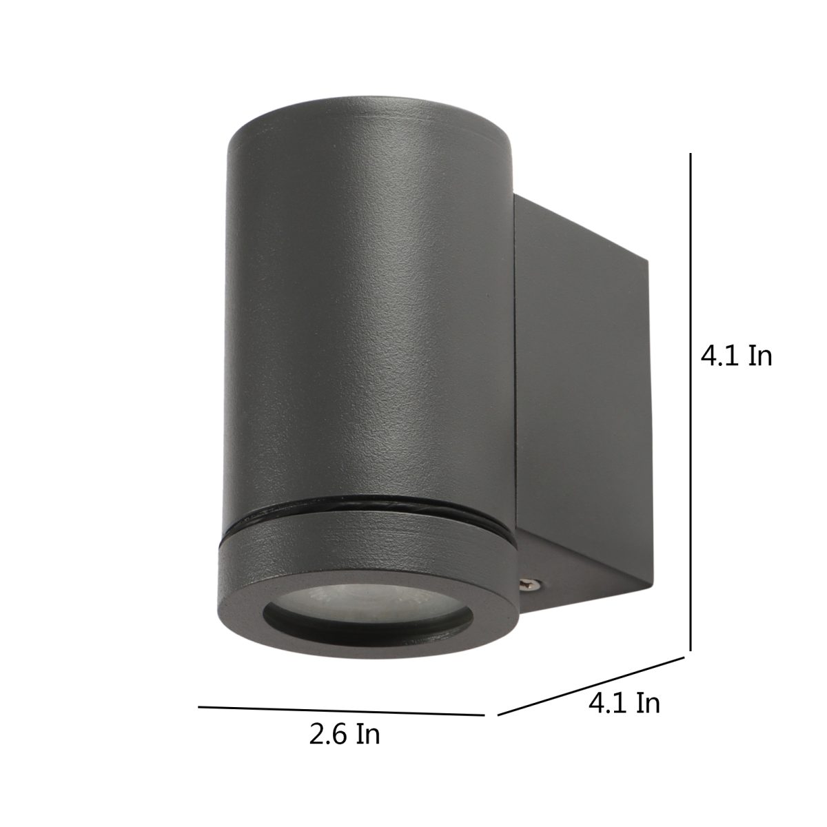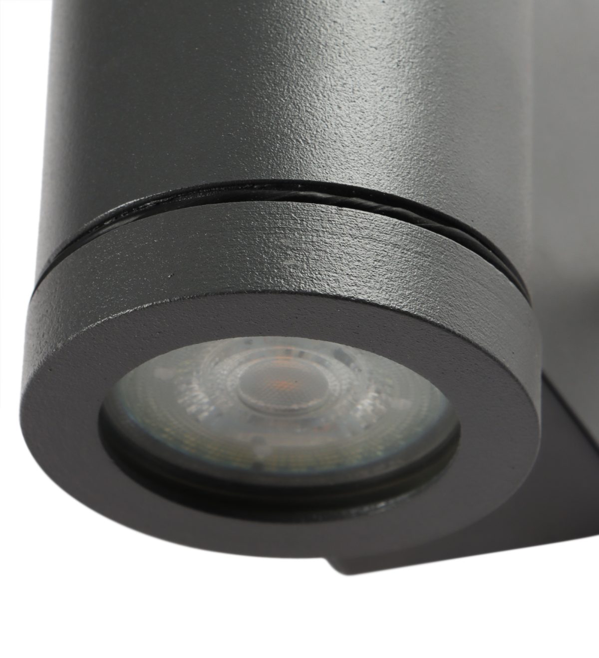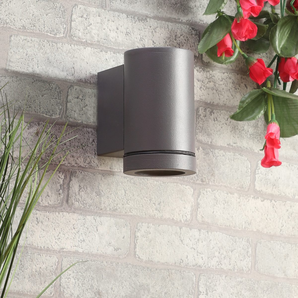 Aluminium die cast one of the top selling export quality cylindrical wall light available in a sophisticated grey finish, perfect to use outdoors. It is maintenance free, only the change of lamp is required which is available locally everywhere. Suitable for use in wet areas like swimming pools and spas. But equally as stunning when installed indoor around the house. Ideal to high light the exterior of your property and placed either side of an entrance for instance. Can be dimmed if used with a dimmable lamp. Rated at IP 54 providing protection from water spray. Lamp not included.