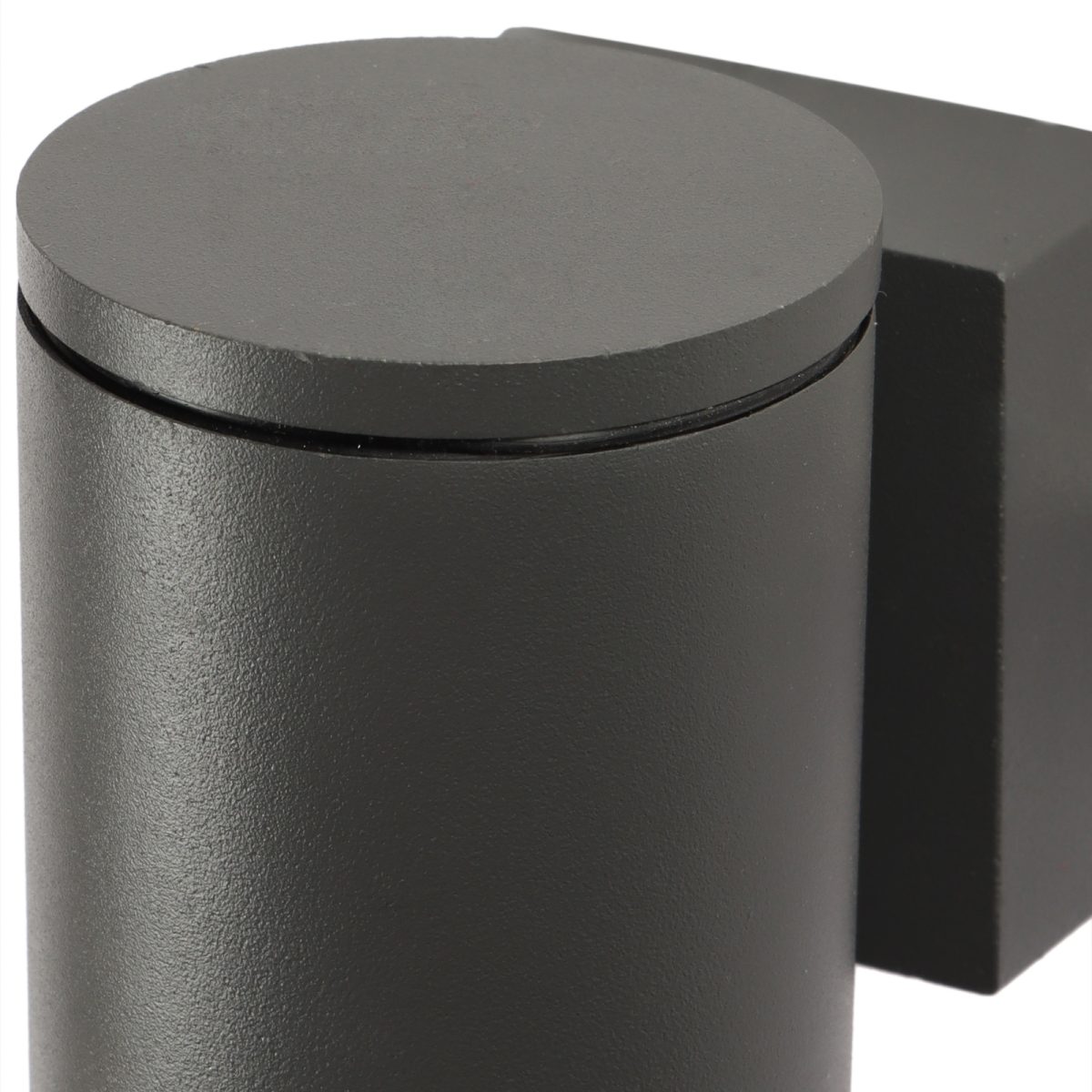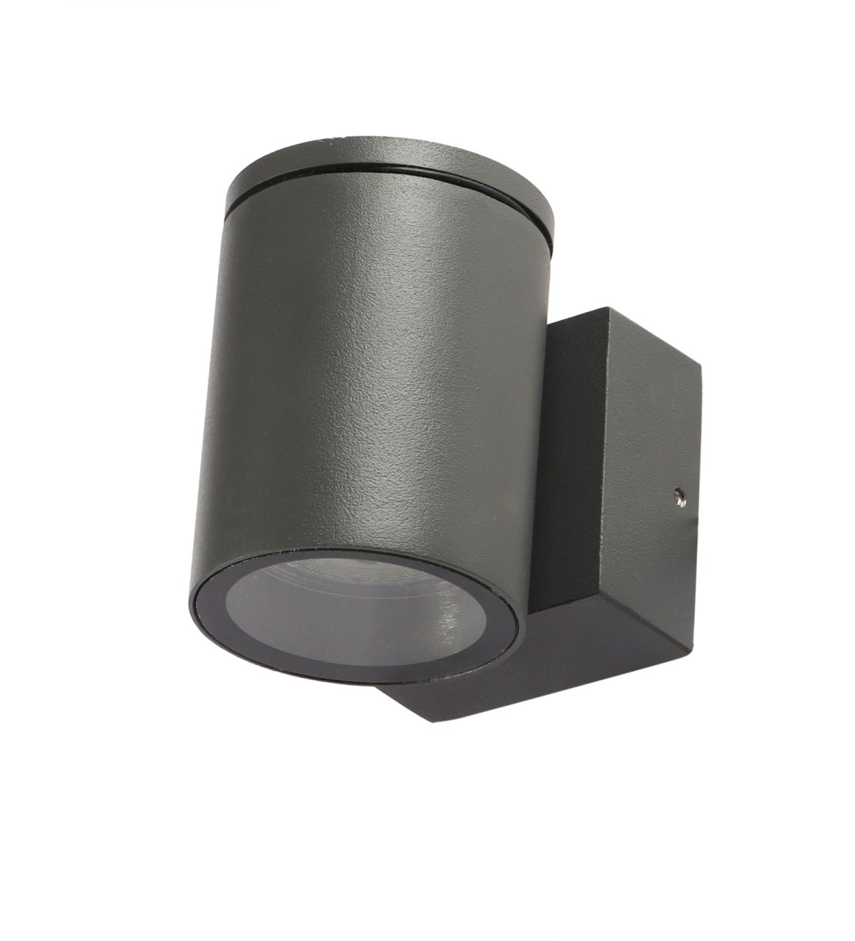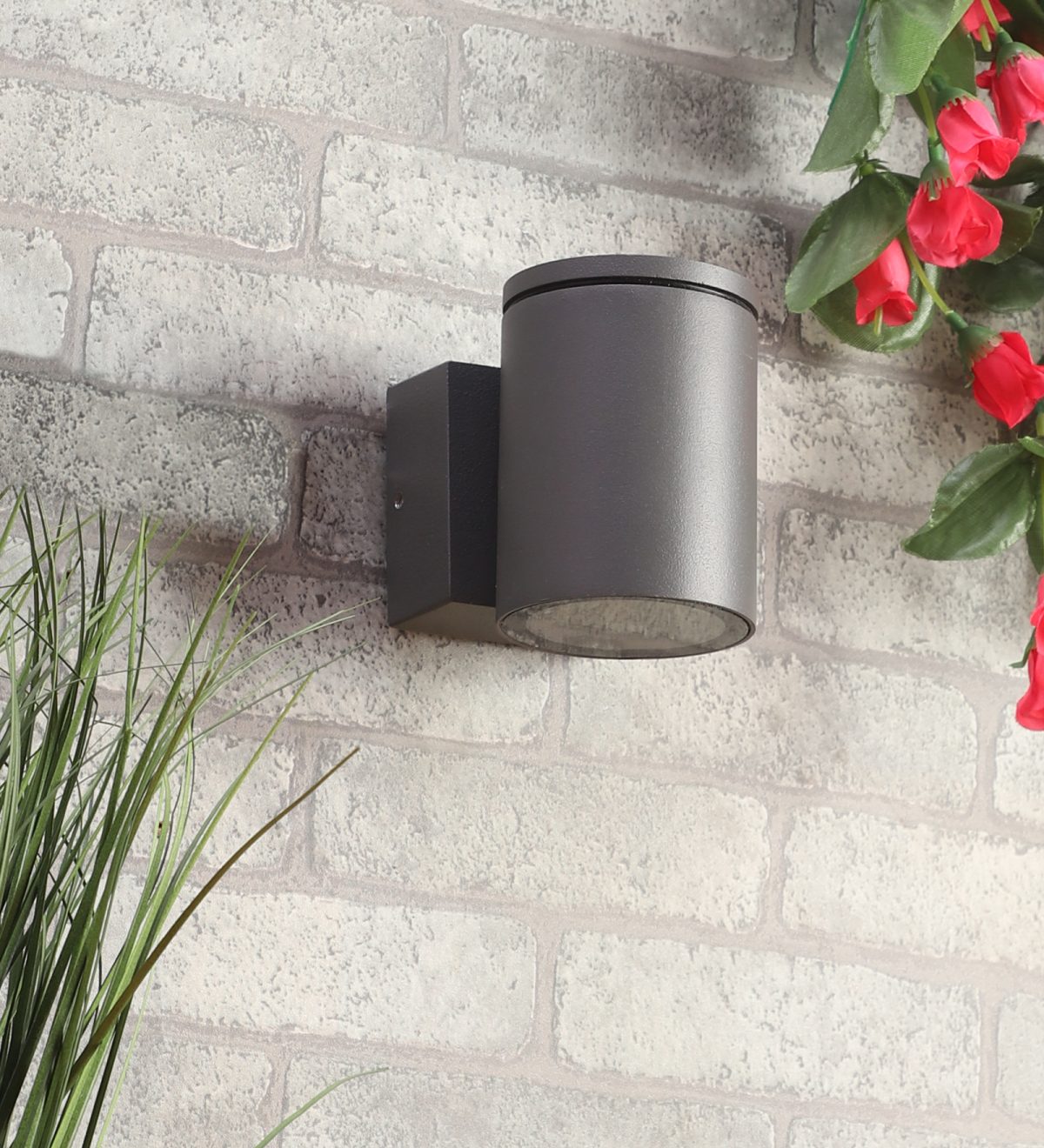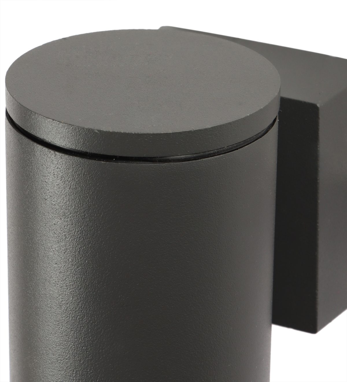 Aluminium die cast one of the top selling export quality cylindrical wall light available in a sophisticated grey finish, perfect to use outdoors. It is maintenance free, only the change of lamp is required which is available locally everywhere. Suitable for use in wet areas like swimming pools and spas. But equally as stunning when installed indoor around the house. Ideal to high light the exterior of your property and placed either side of an entrance for instance. Can be dimmed if used with a dimmable lamp. Rated at IP 54 providing protection from water spray. Lamp not included.